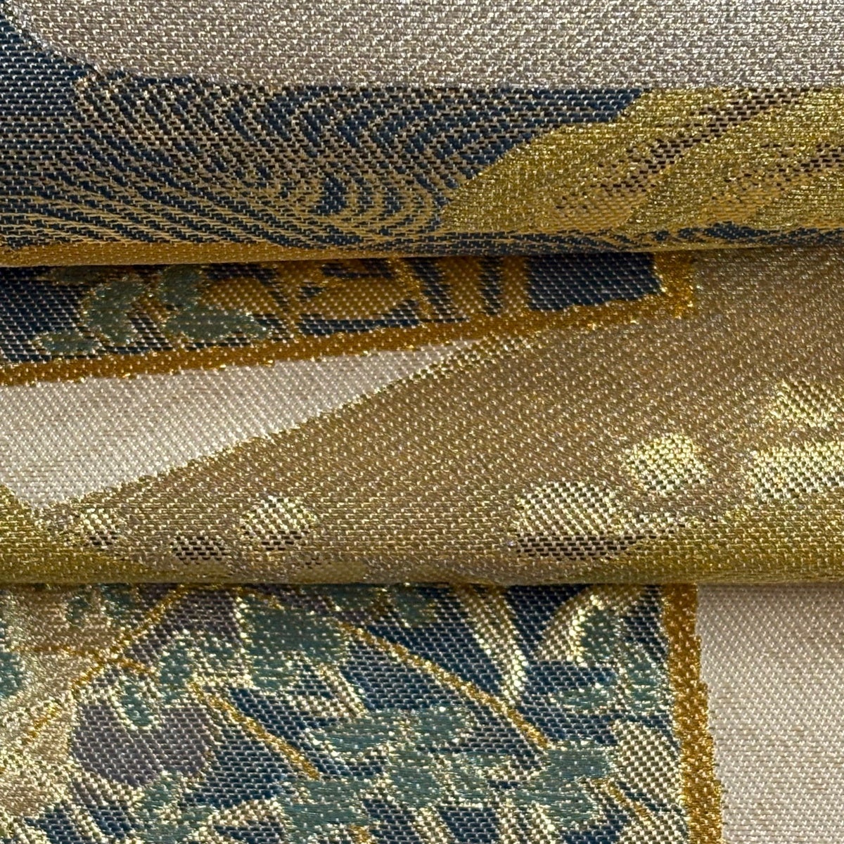 袋帯 秀品 鴛鴦 草花 金銀糸 箔 金色 六通 正絹