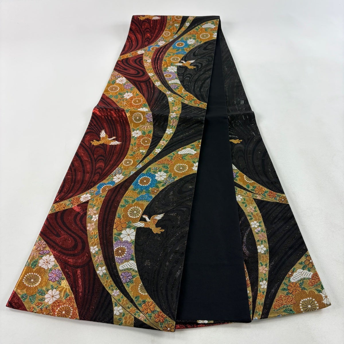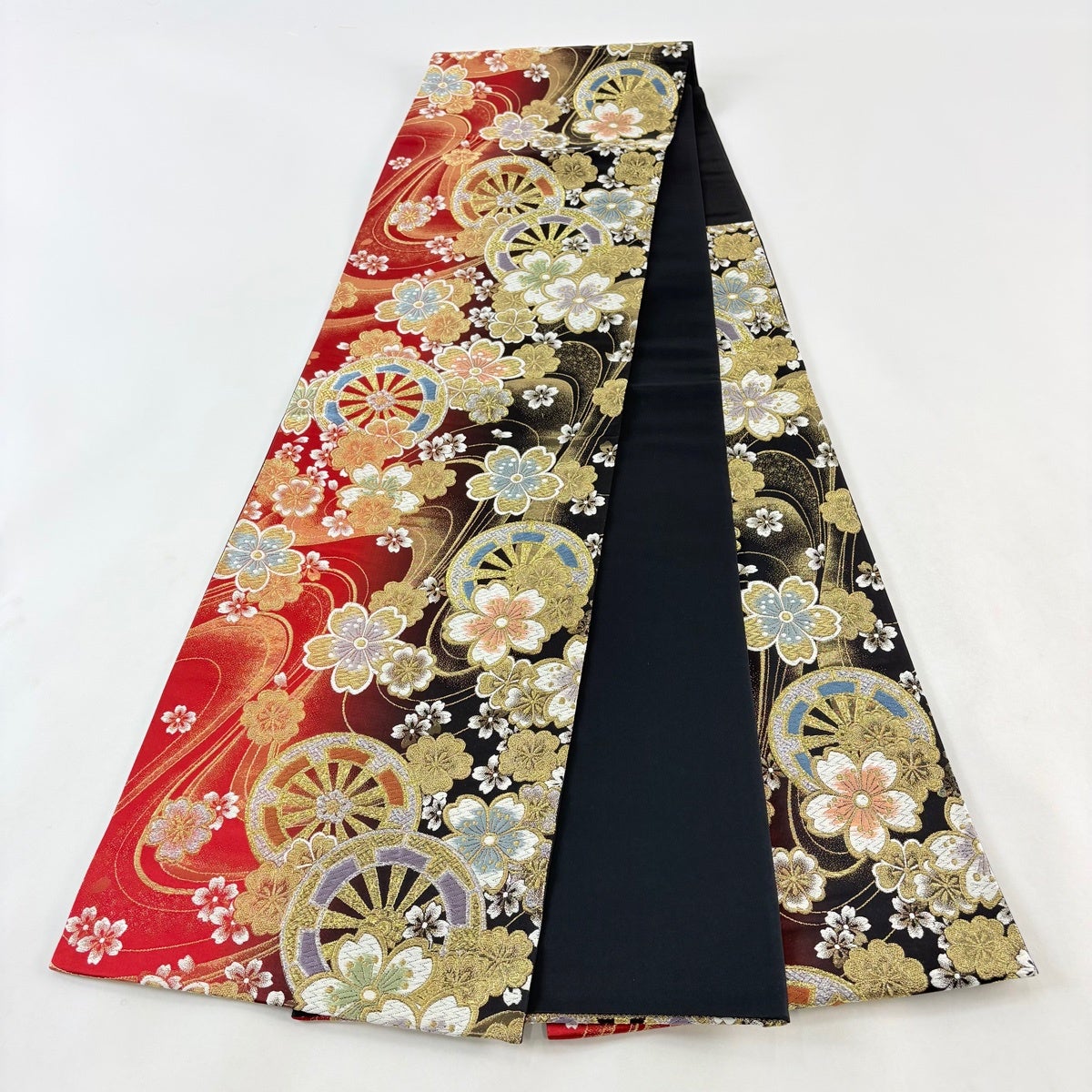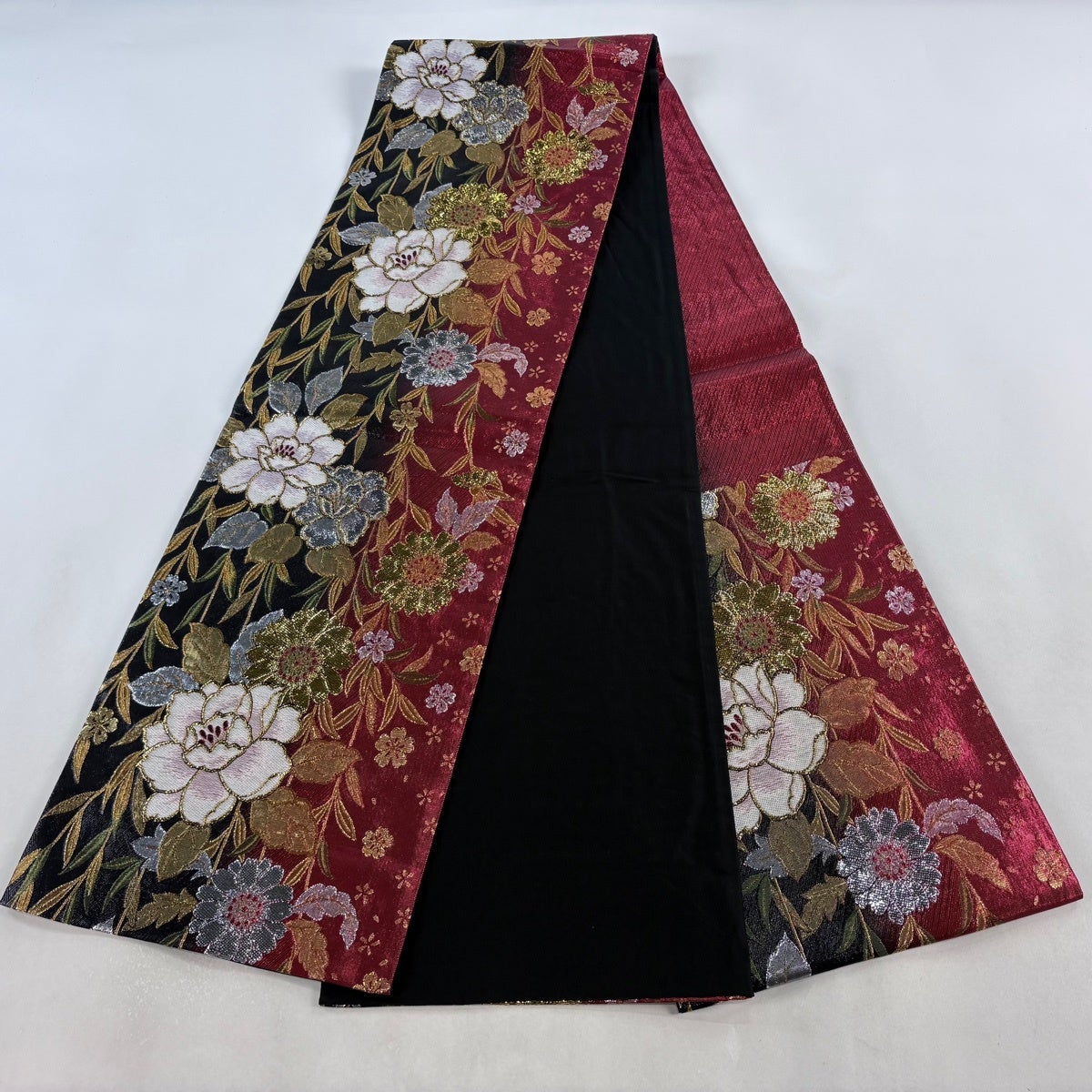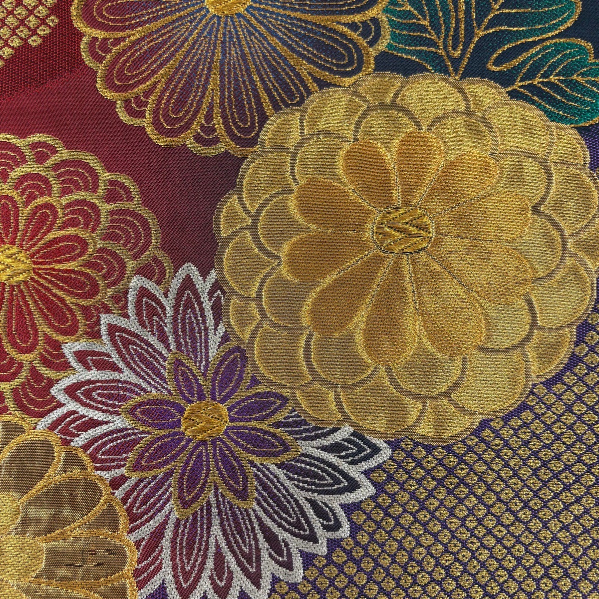 30%OFF 名古屋帯 秀品 団扇 草花 箔 唐織 赤 正絹 K30