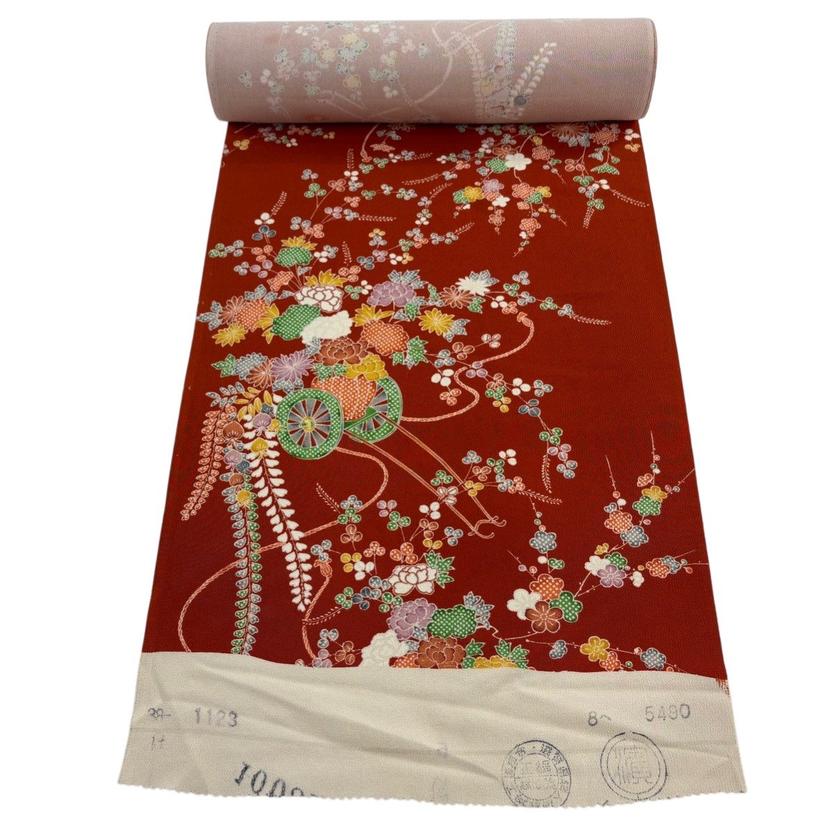 50%OFF 反物 秀品 小紋 ヱ霞 草花 赤 正絹 K50