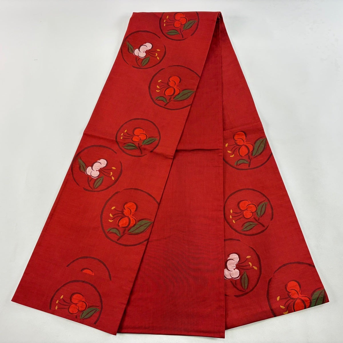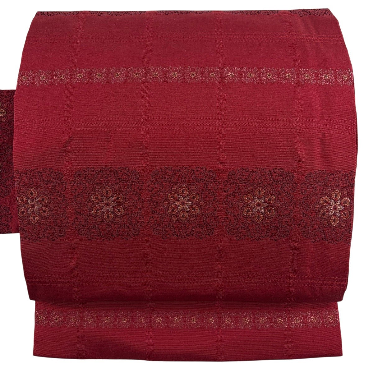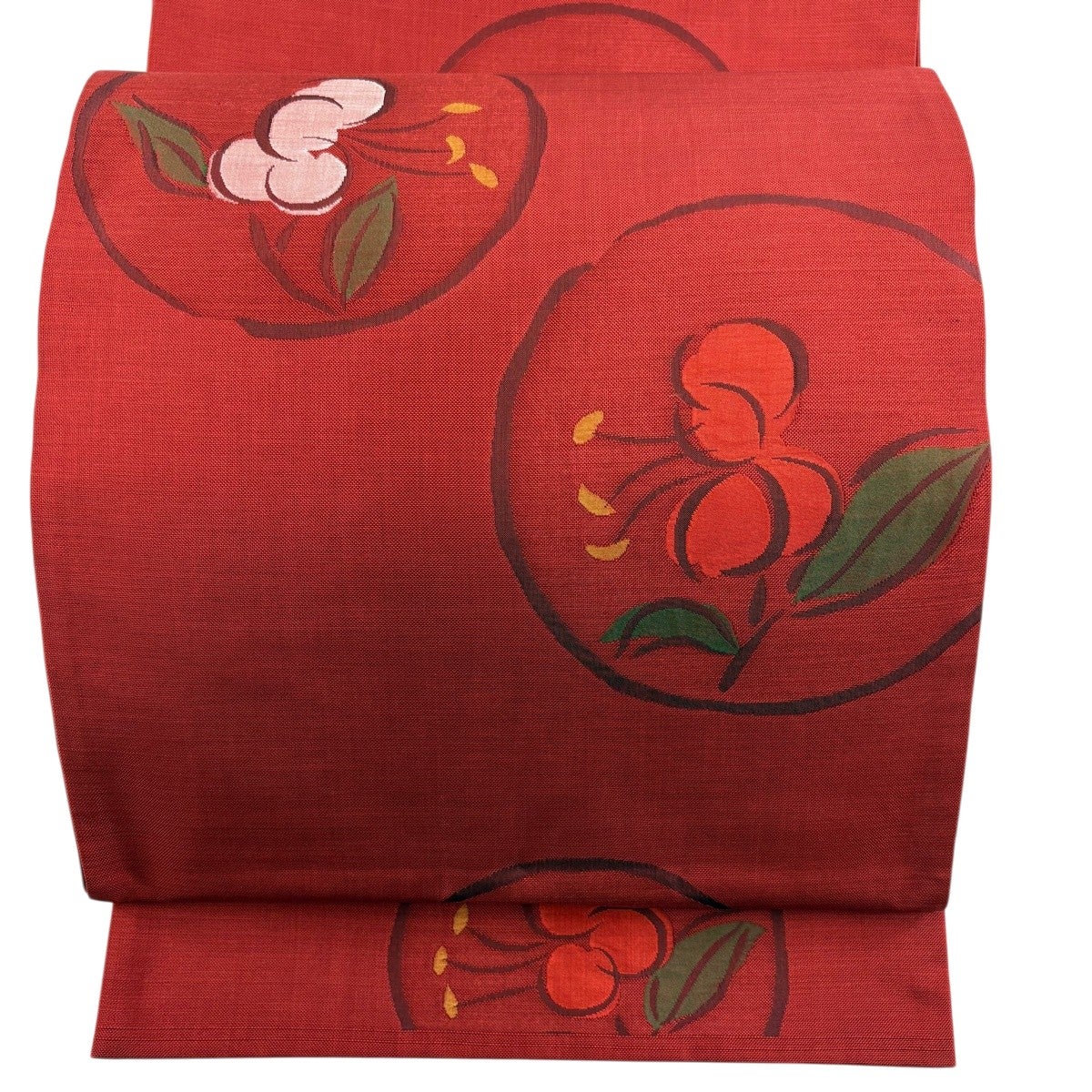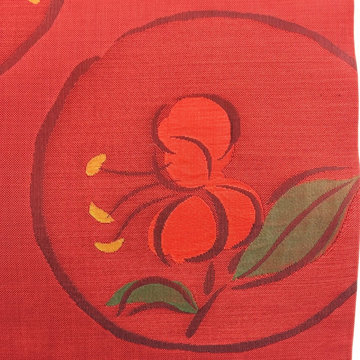 70%OFF 【美品】 名古屋帯 秀品 草花 赤 正絹 K70