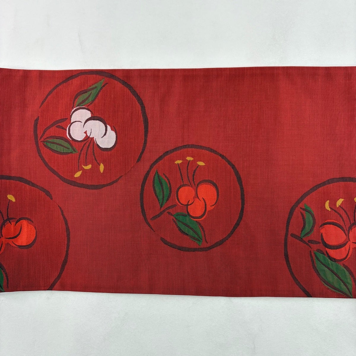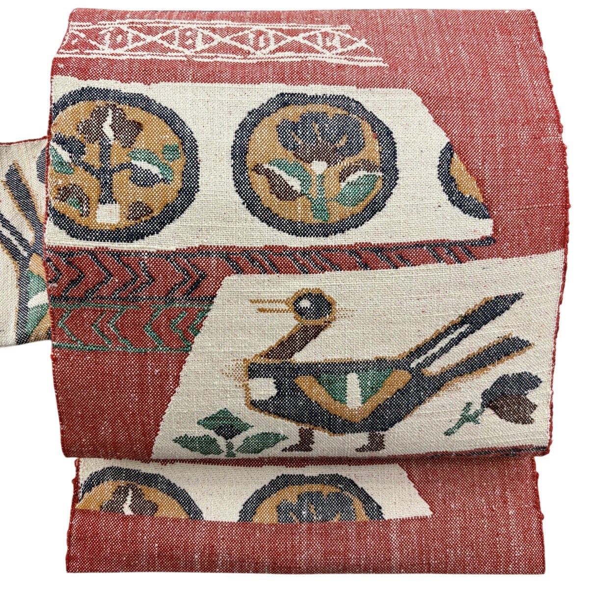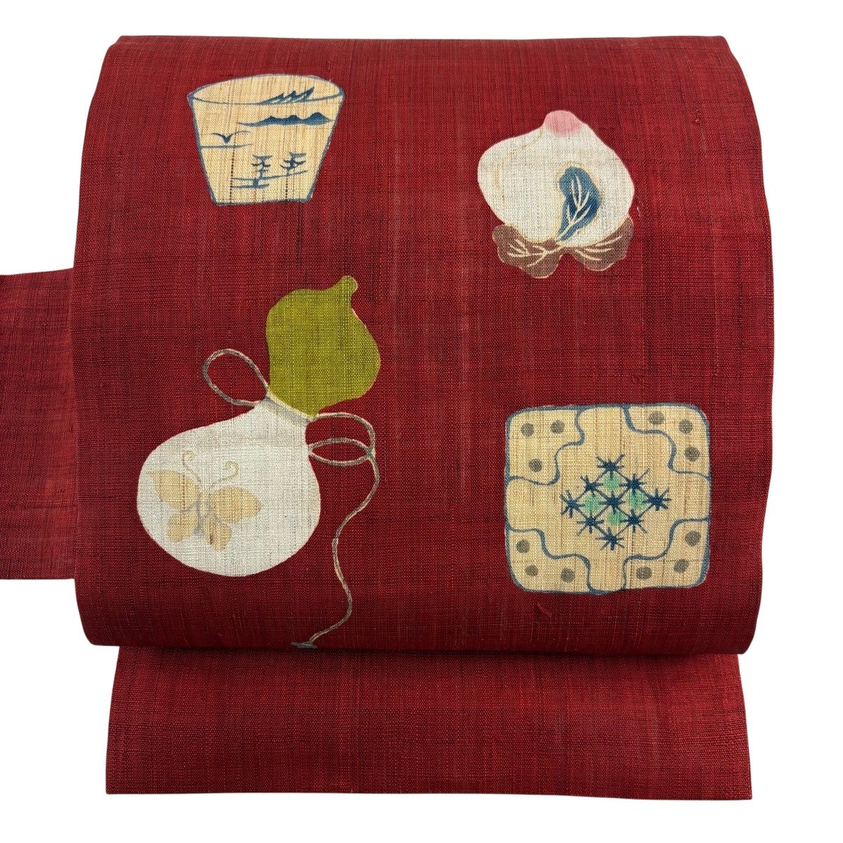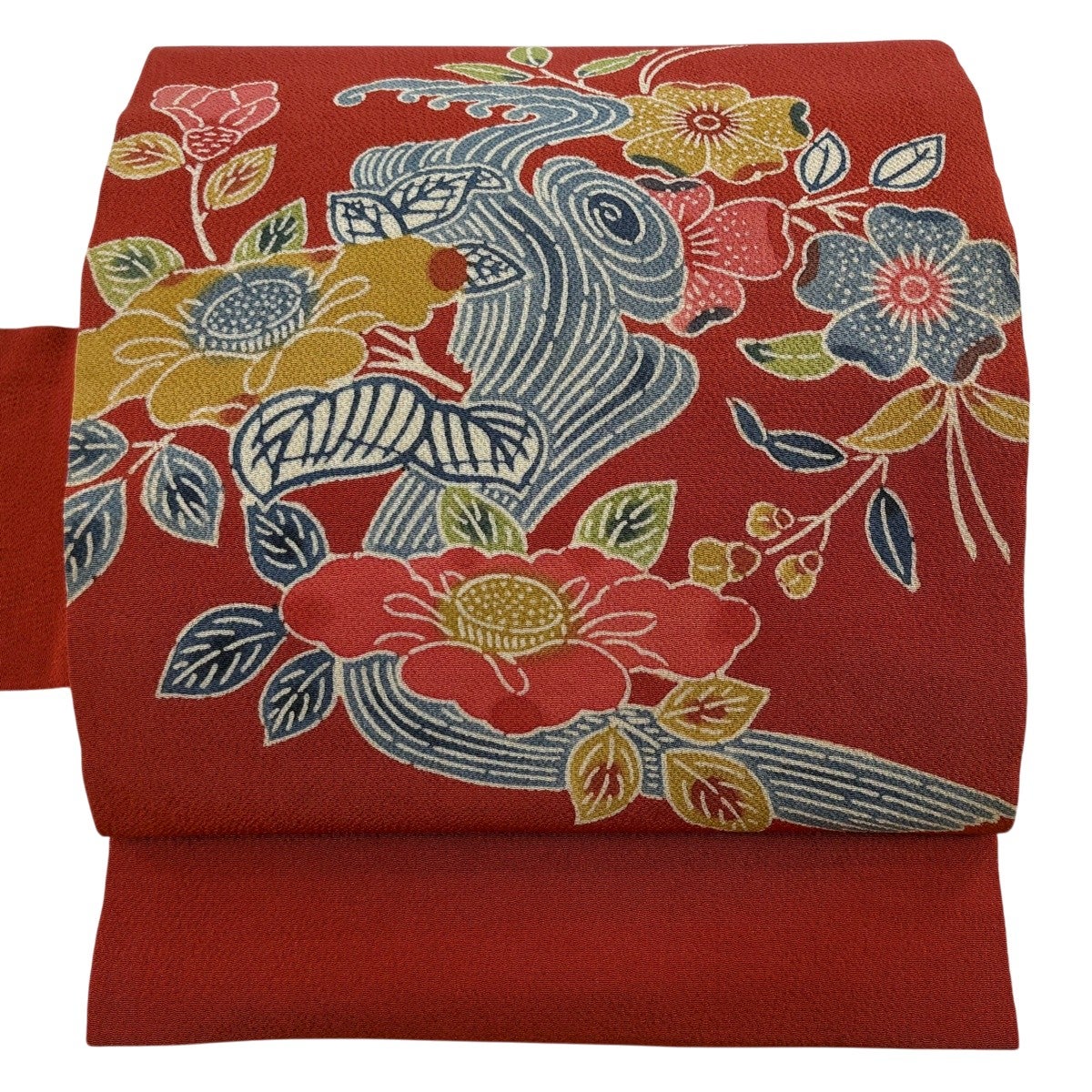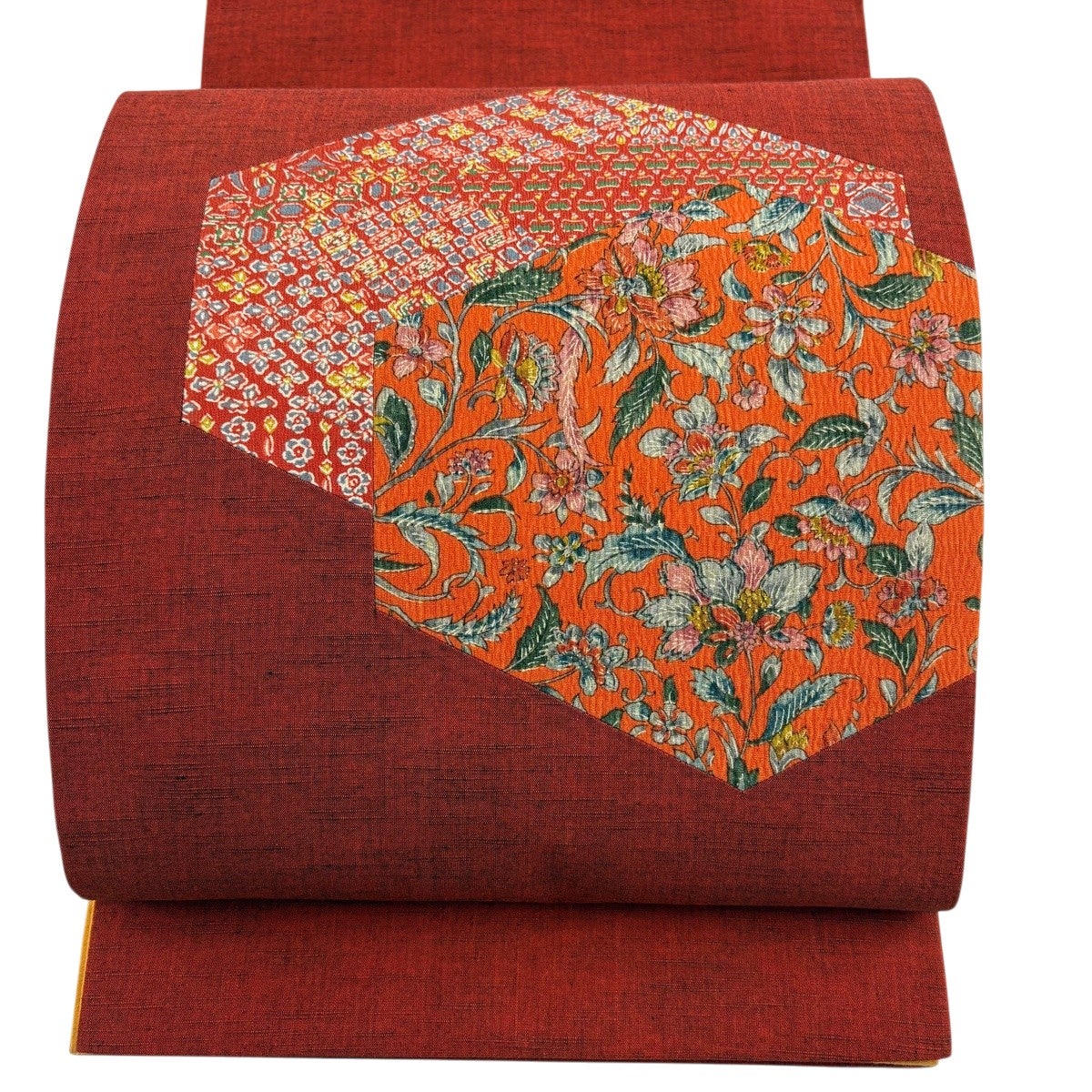 70%OFF 【美品】 名古屋帯 秀品 草花 赤 正絹 K70