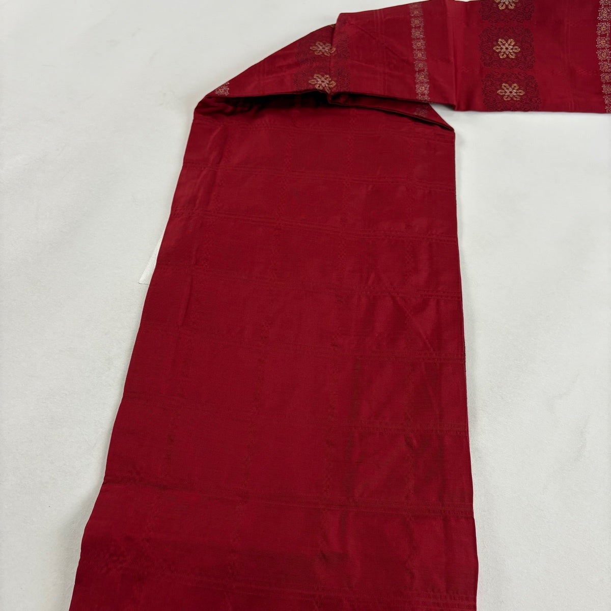 反物 優品 羽尺 羽織 和総コート 幾何学模様 地紋 赤 正絹