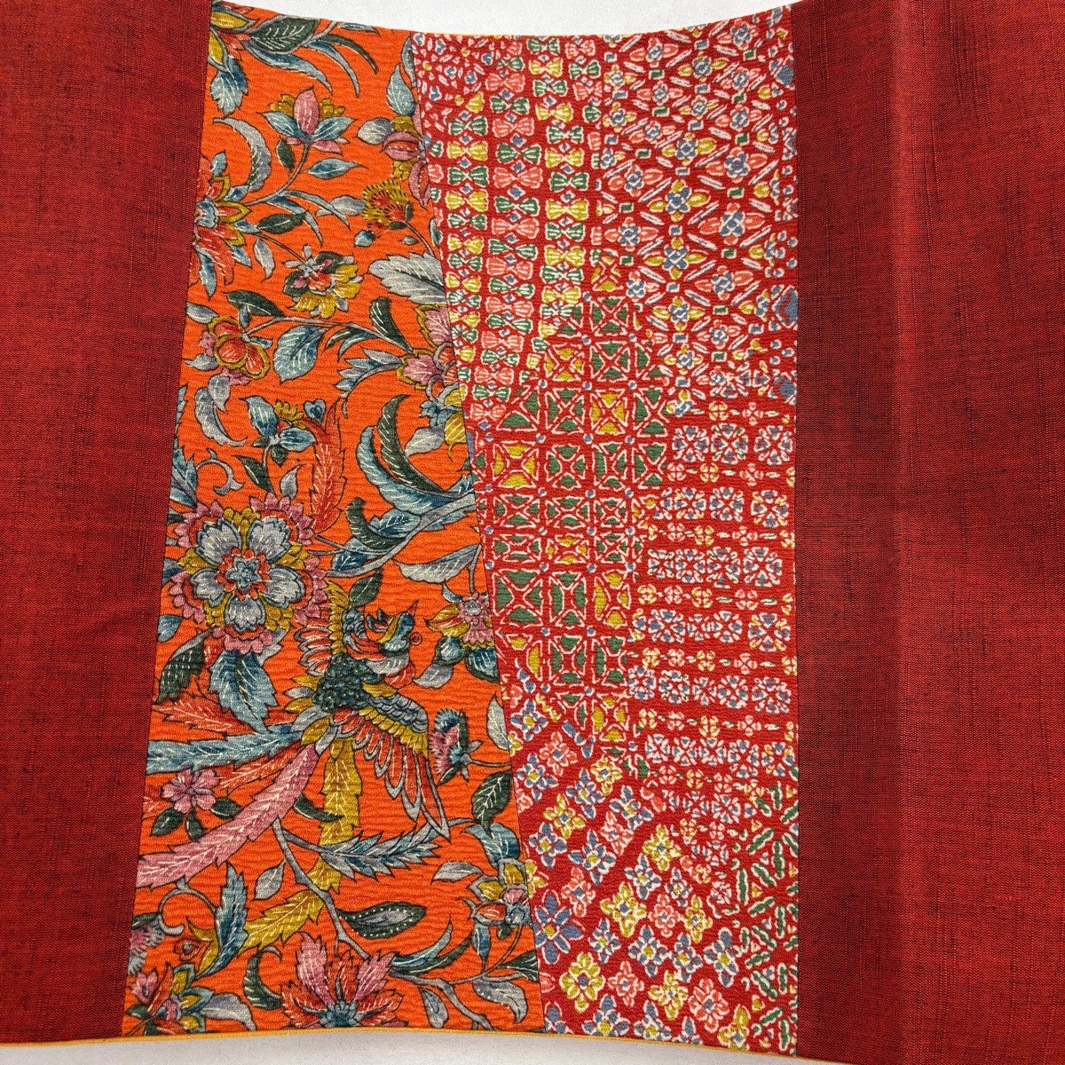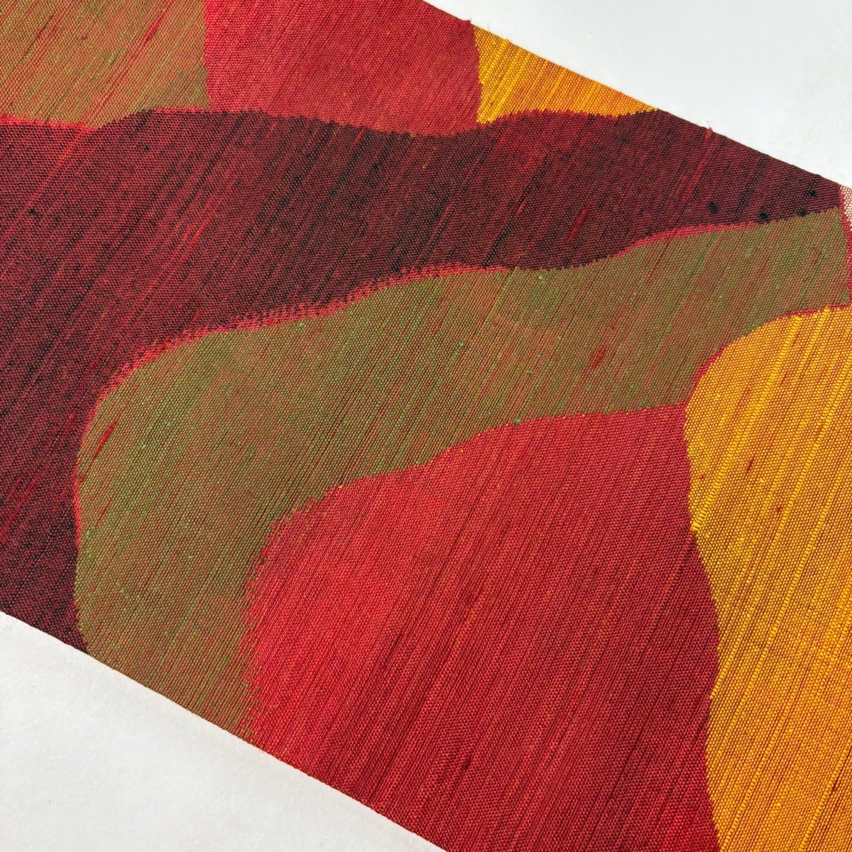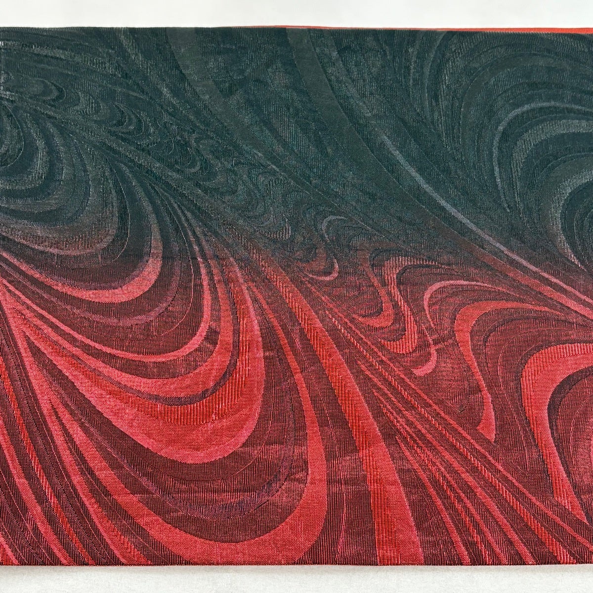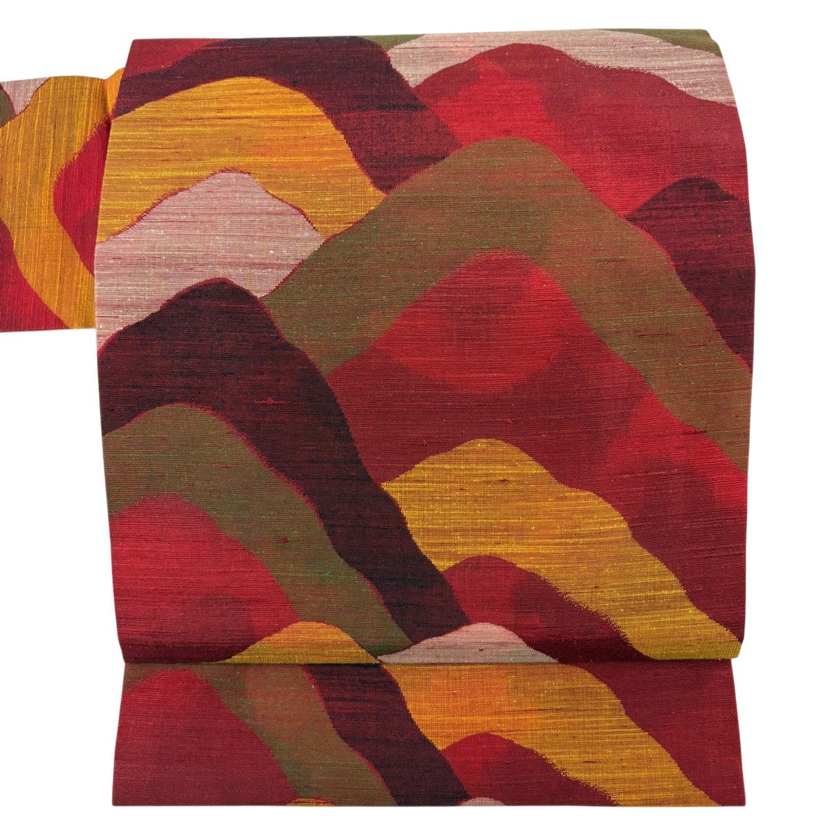 30%OFF 【美品】 名古屋帯 名品 夏帯 幾何学 赤 正絹 K30