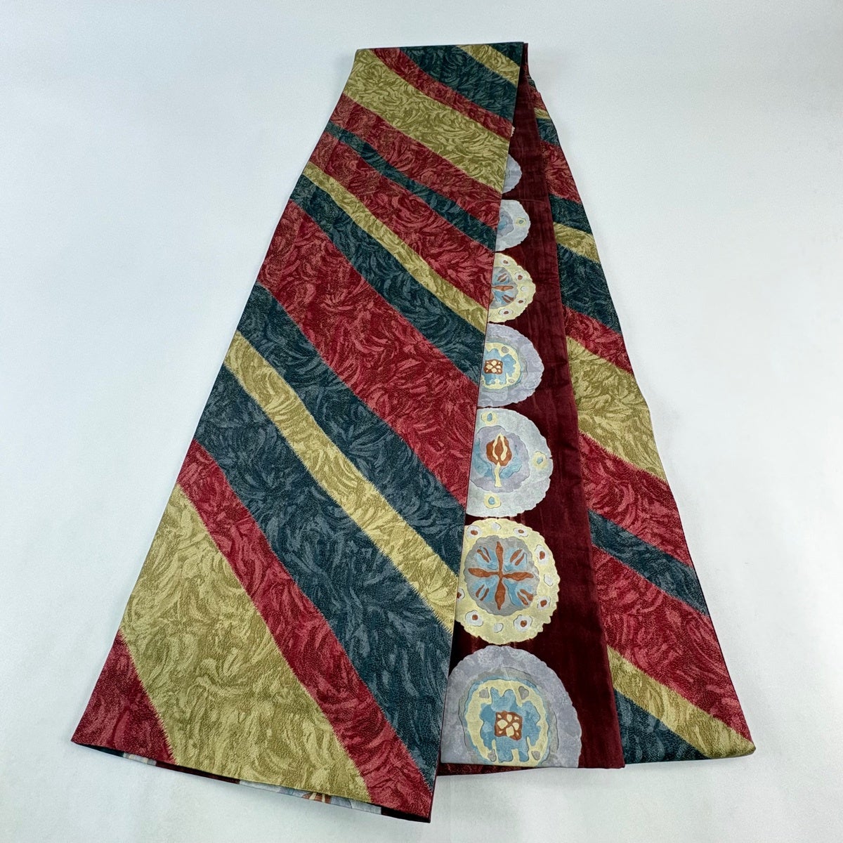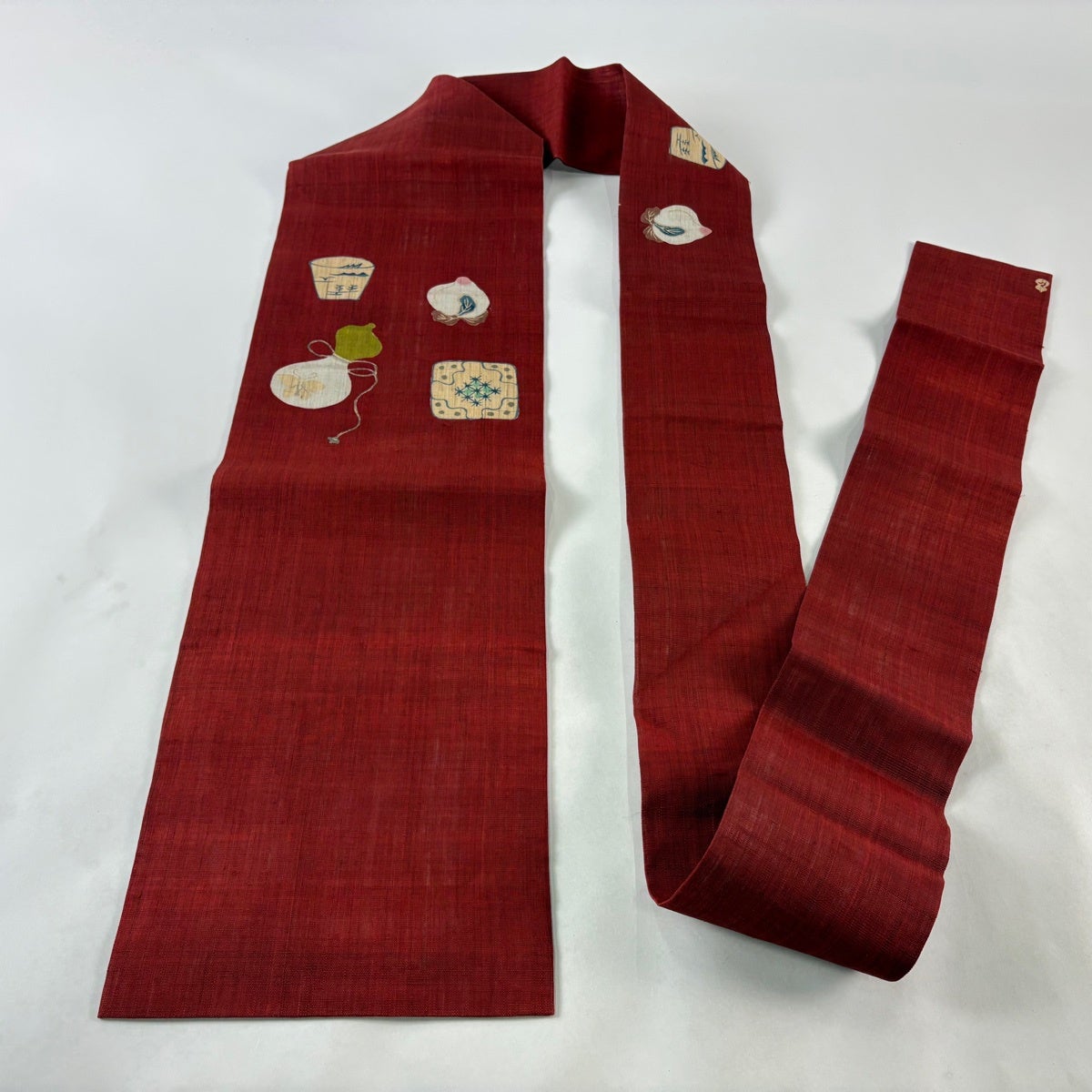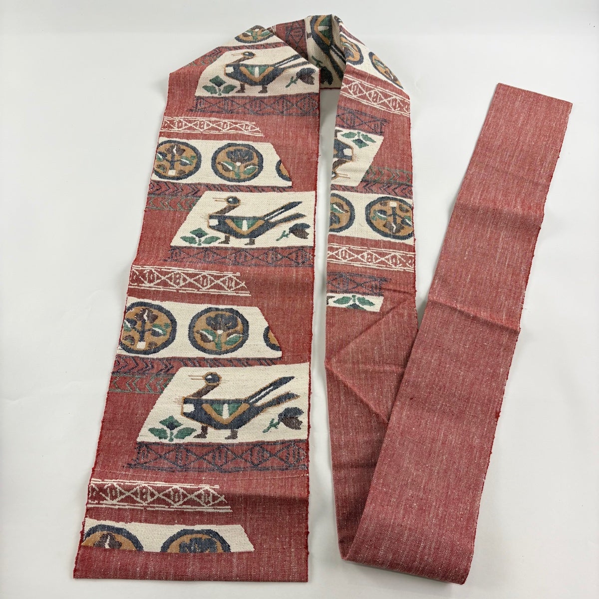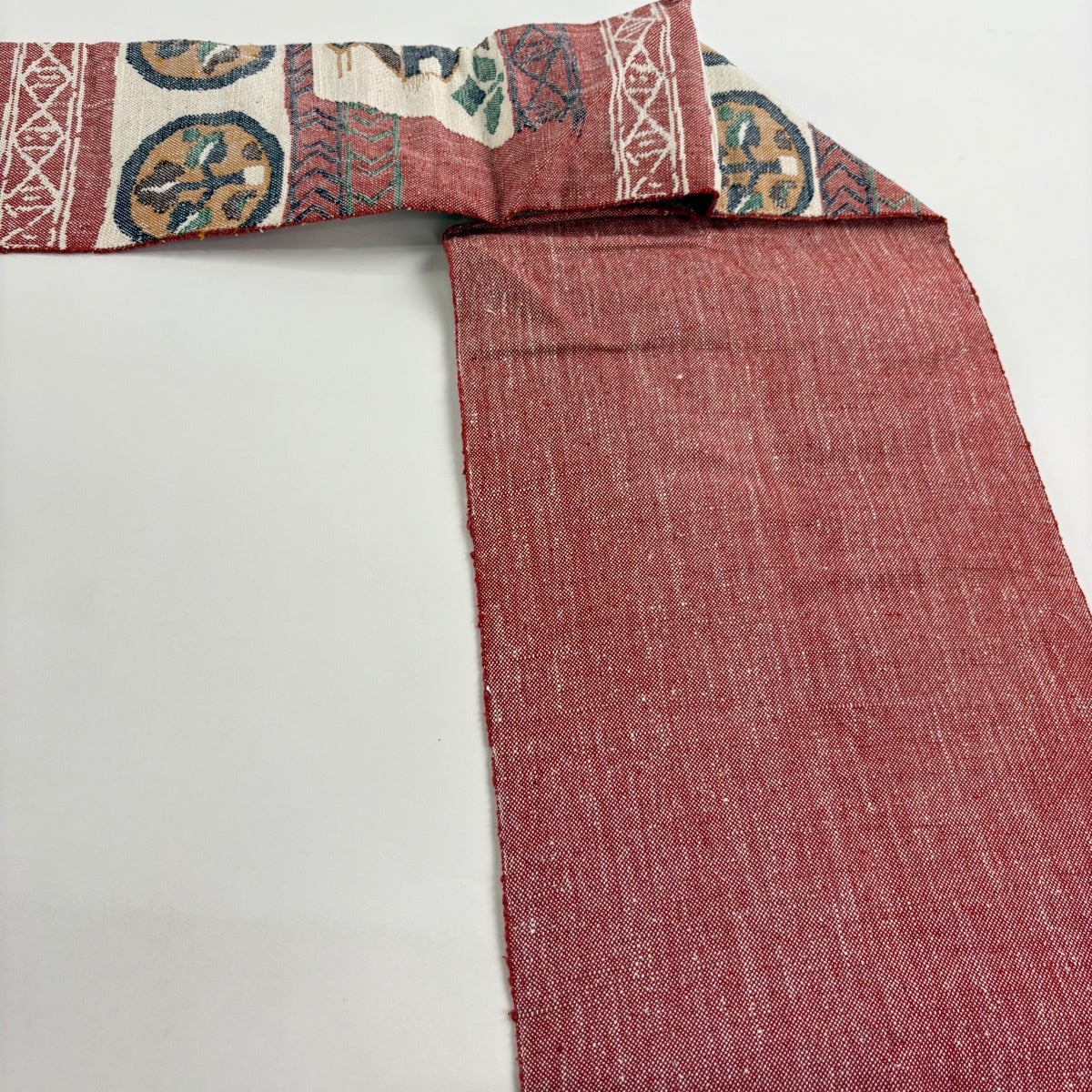 30%OFF 半幅帯 秀品 生り物 幾何学模様 赤 正絹 K30