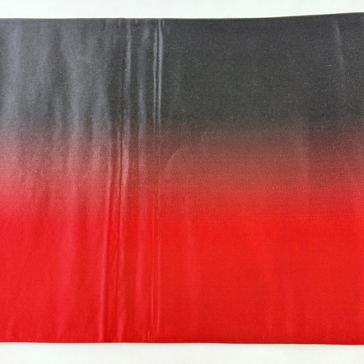 【美品】 名古屋帯 秀品 紬地 扇面 草花 刺繍 ぼかし 赤 正絹