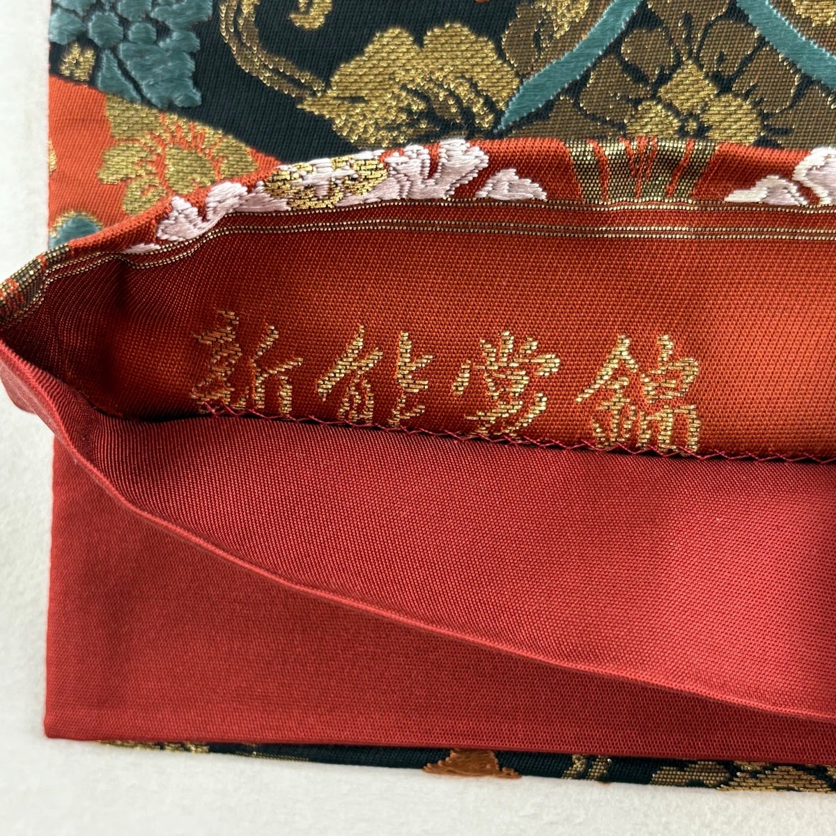 【美品】 袋帯 秀品 木屋太 落款あり 丸文 草花 赤 六通 正絹