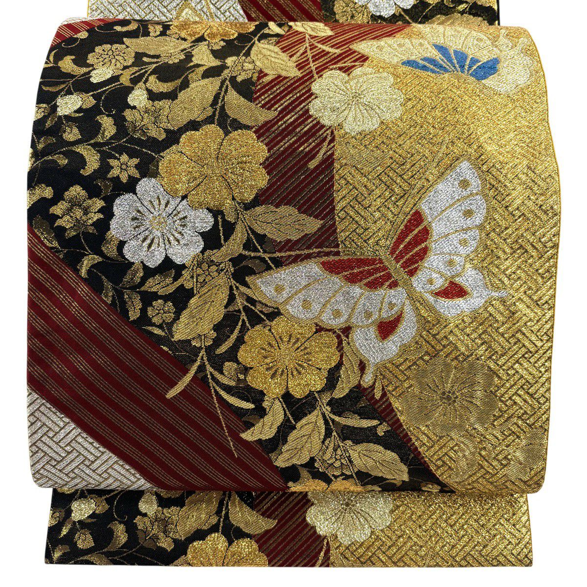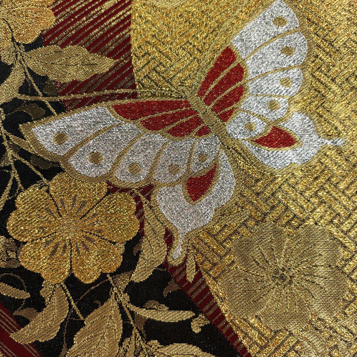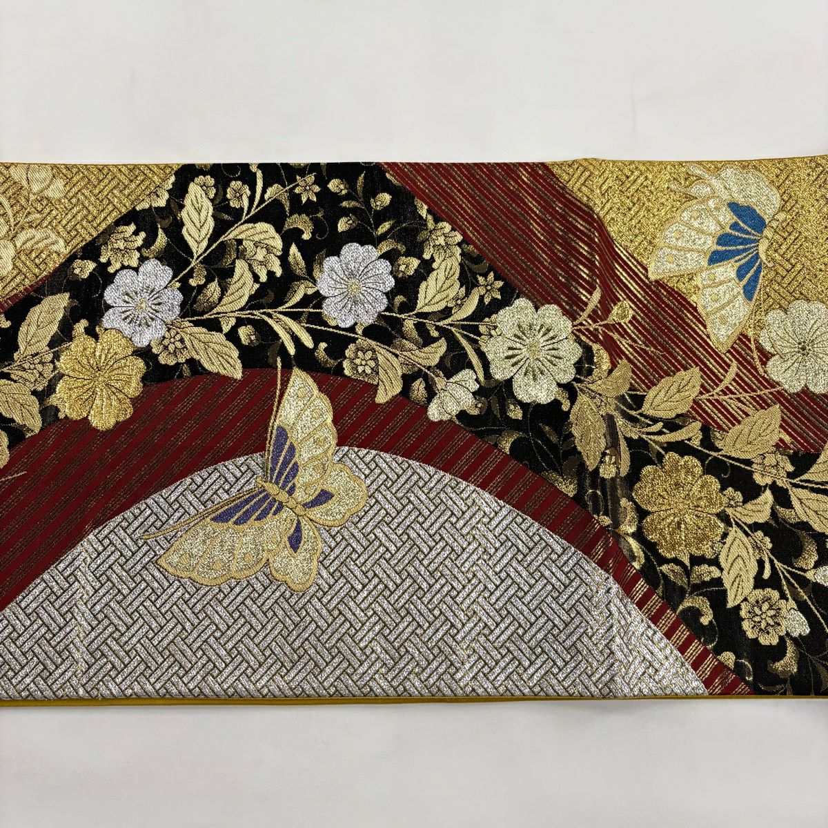 袋帯 秀品 珠金錦 蝶 桜 箔 金糸 赤 六通 正絹