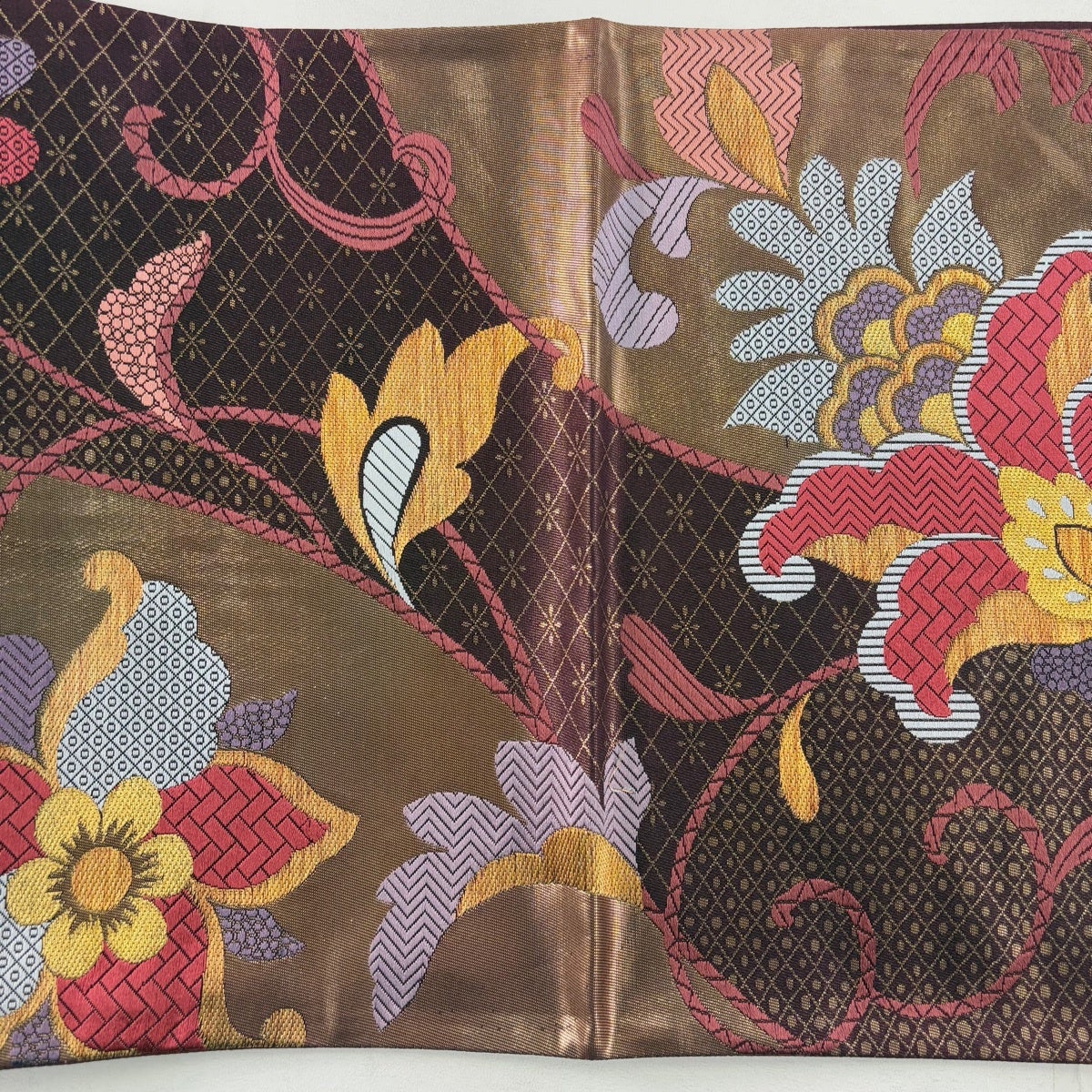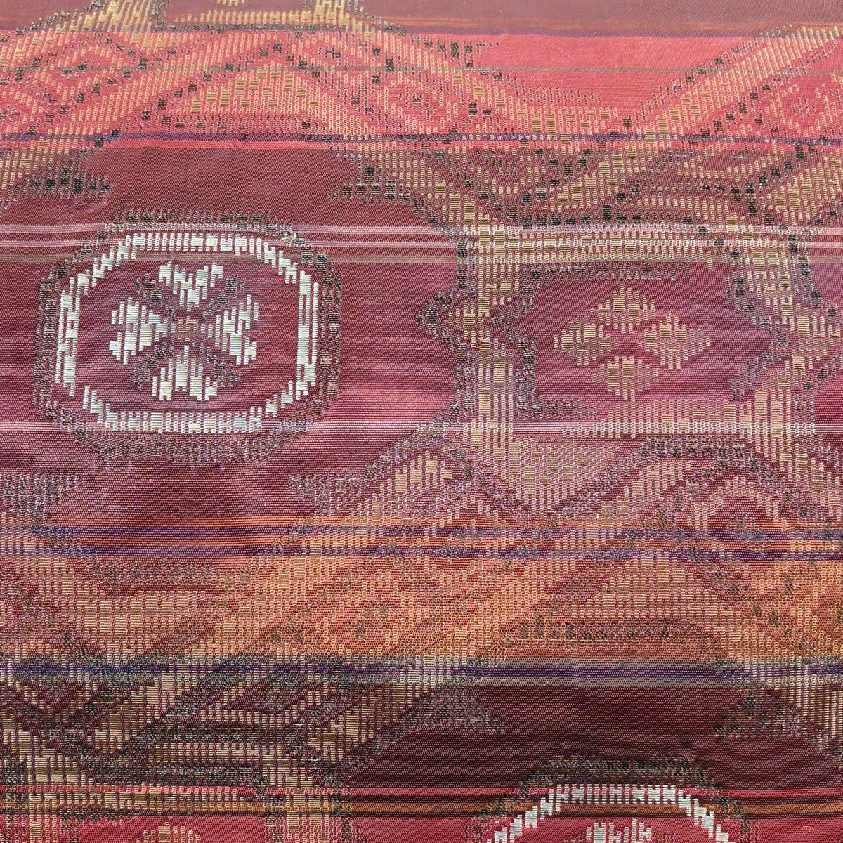 袋帯 秀品 菱 幾何学模様 金銀彩 赤紫 全通 正絹