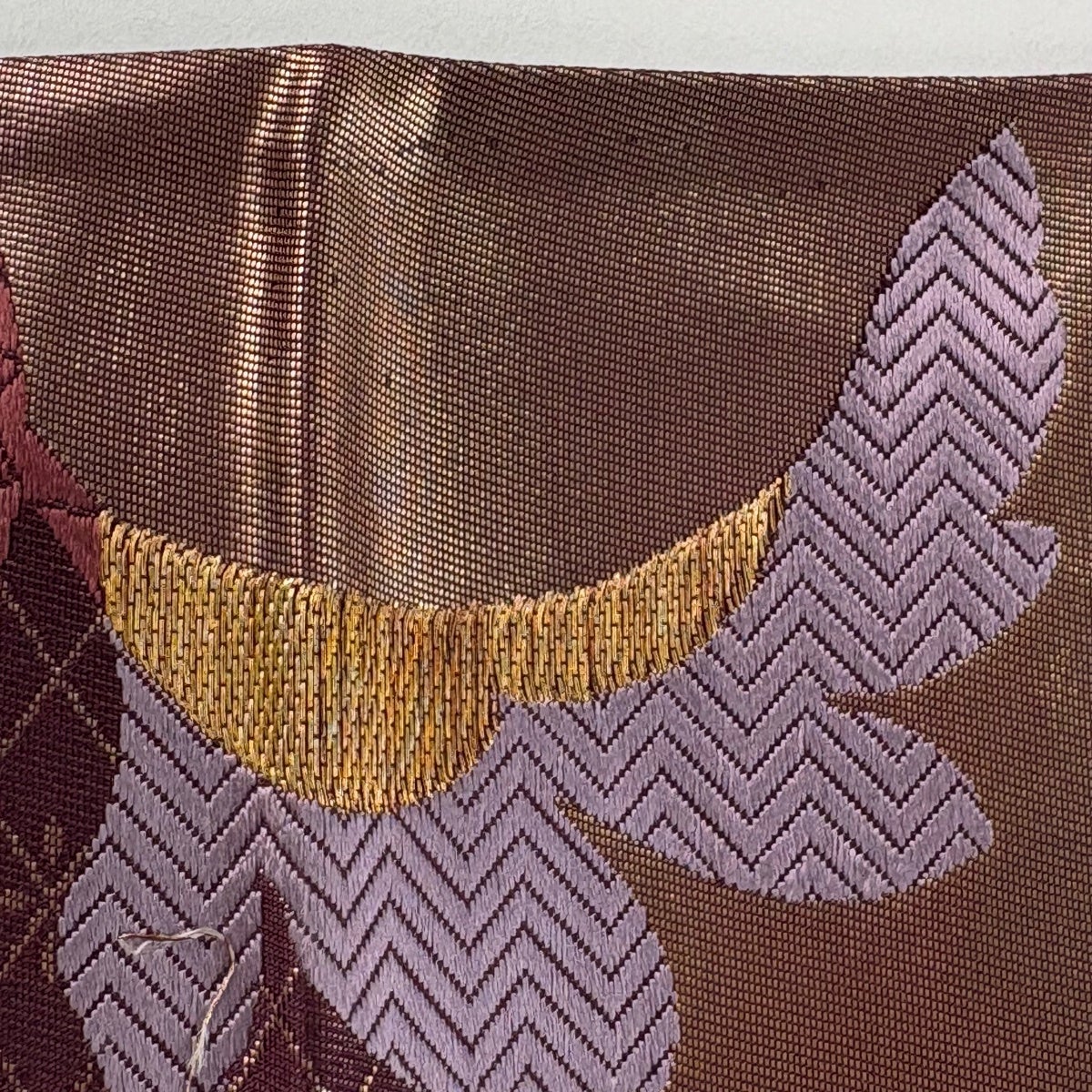 【美品】 袋帯 秀品 松皮照葉薫花 赤紫 六通 正絹