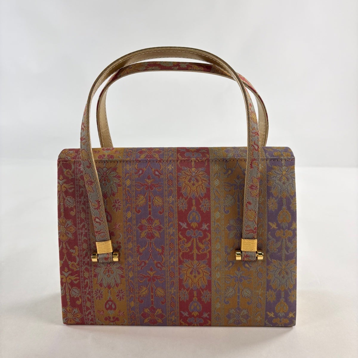 【美品】 袋帯 名品 縞 幾何学模様 金糸 赤紫 お太鼓柄 正絹