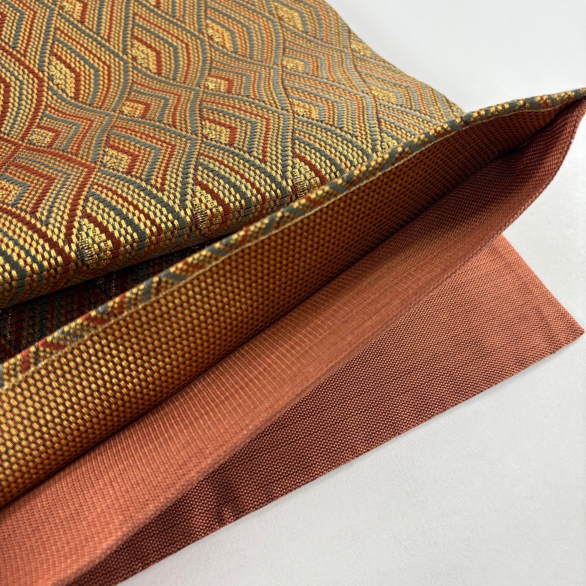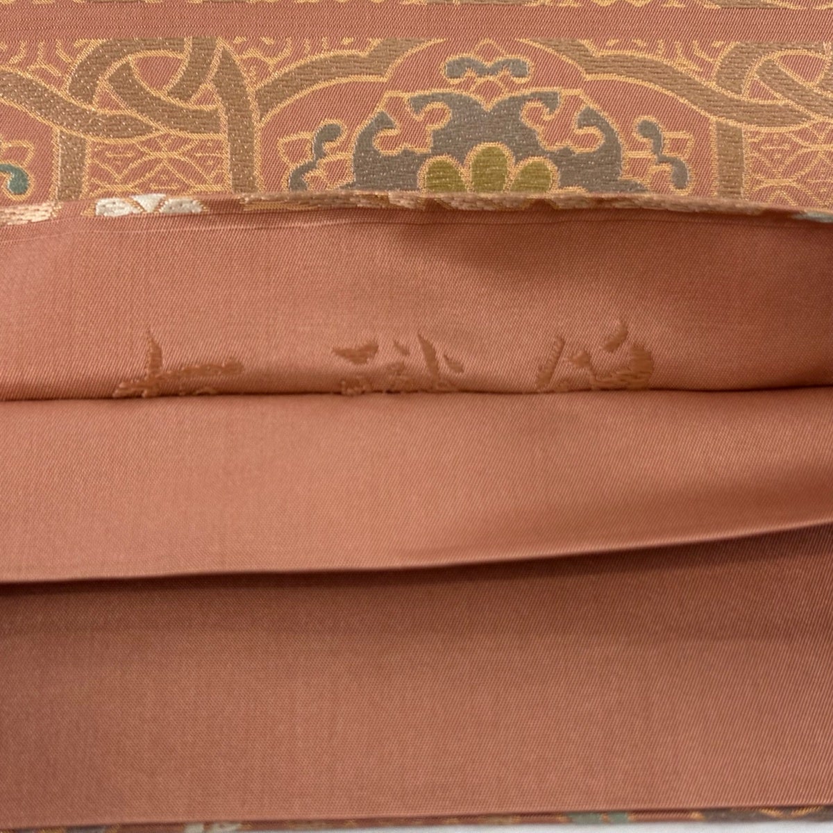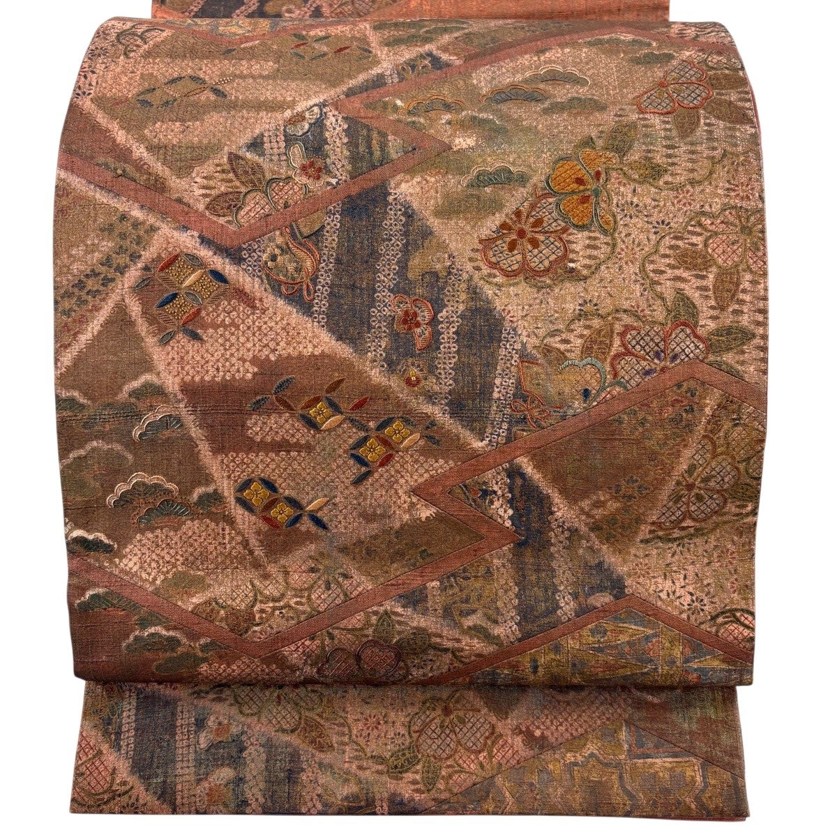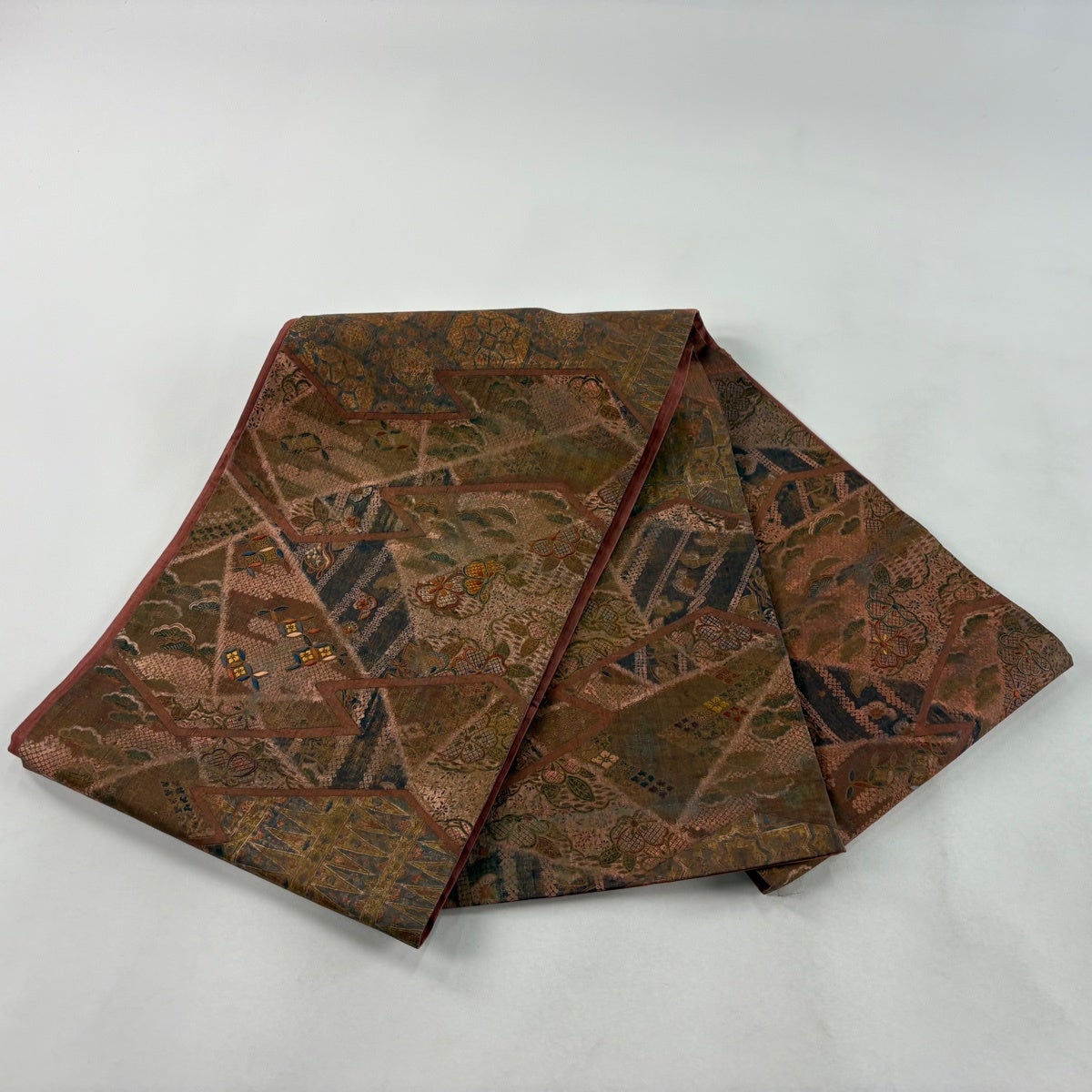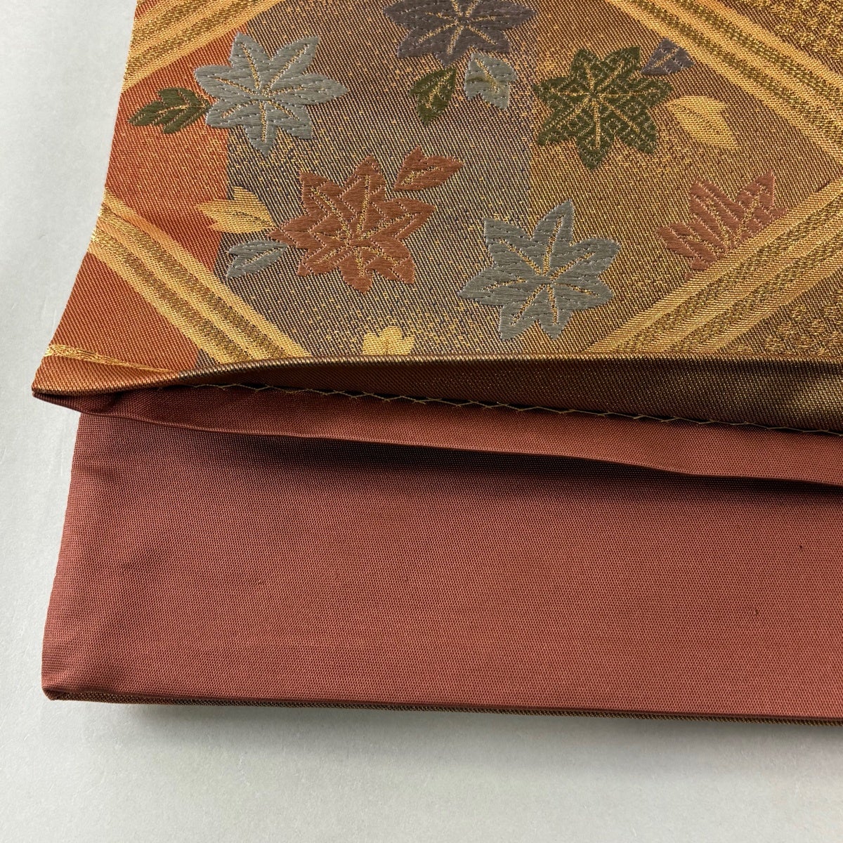 30%OFF 袋帯 秀品 幾何学 金糸 赤茶 お太鼓柄 正絹 K30