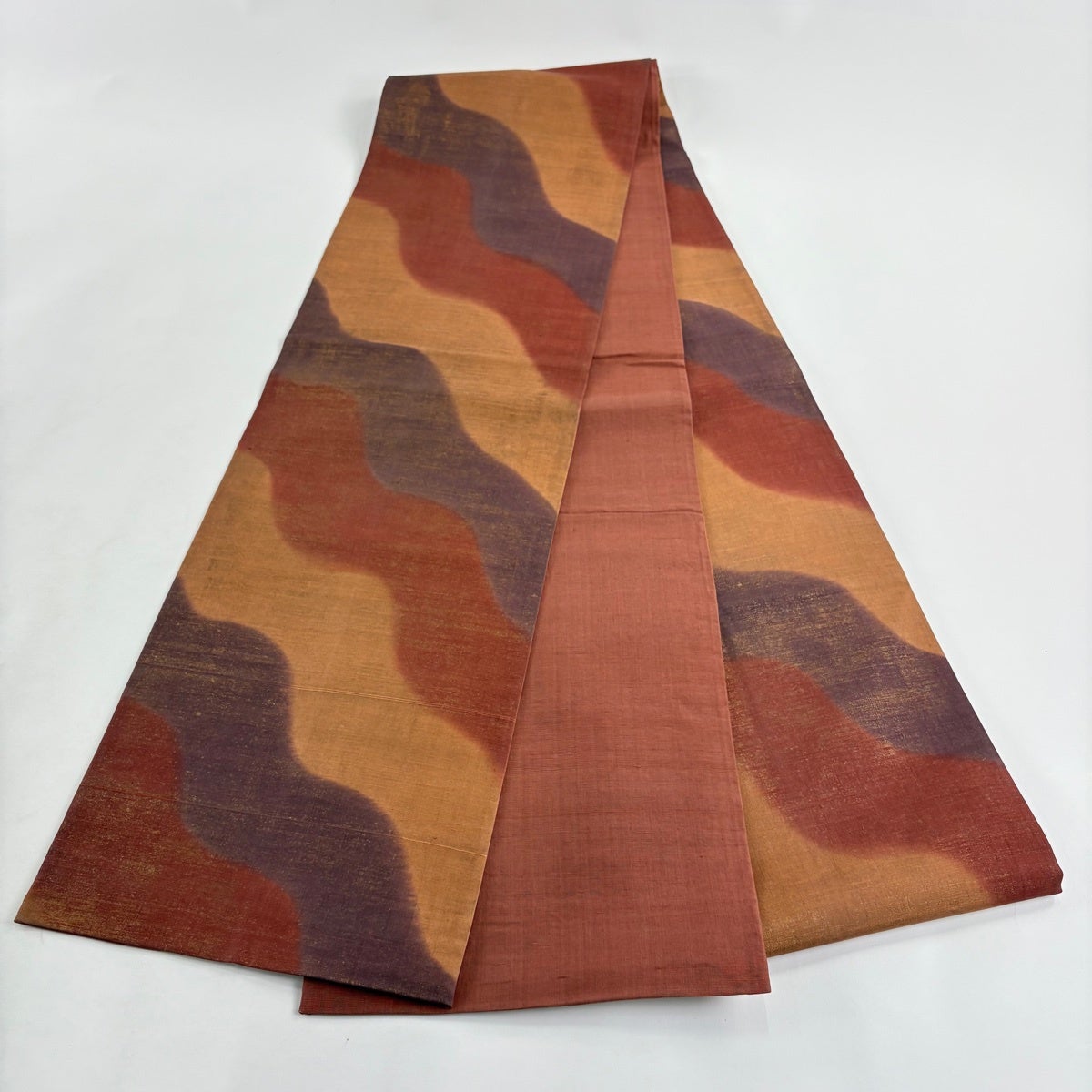 50%OFF 【美品】 名古屋帯 秀品 幾何学 赤茶 正絹 K50
