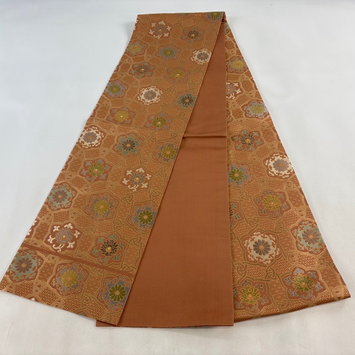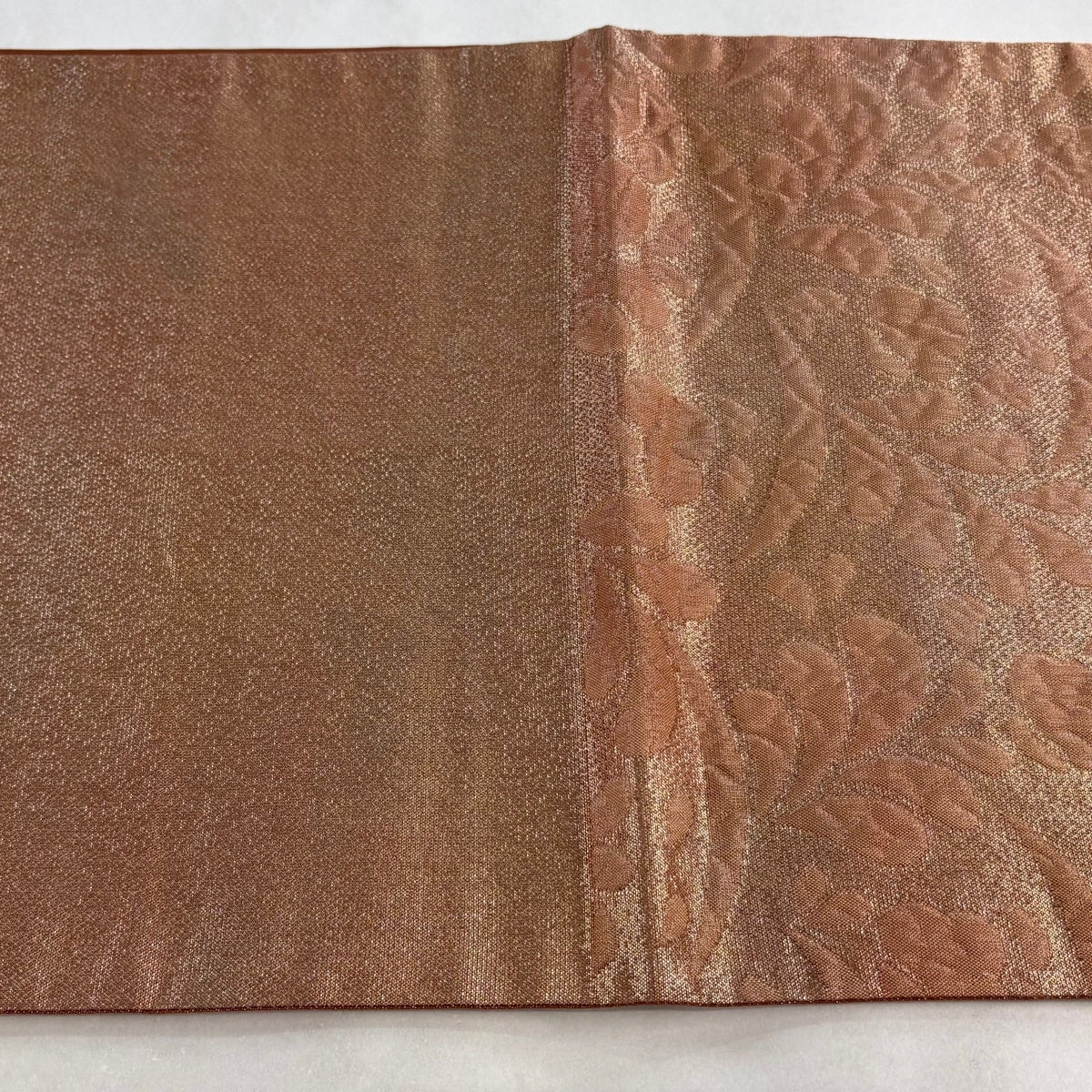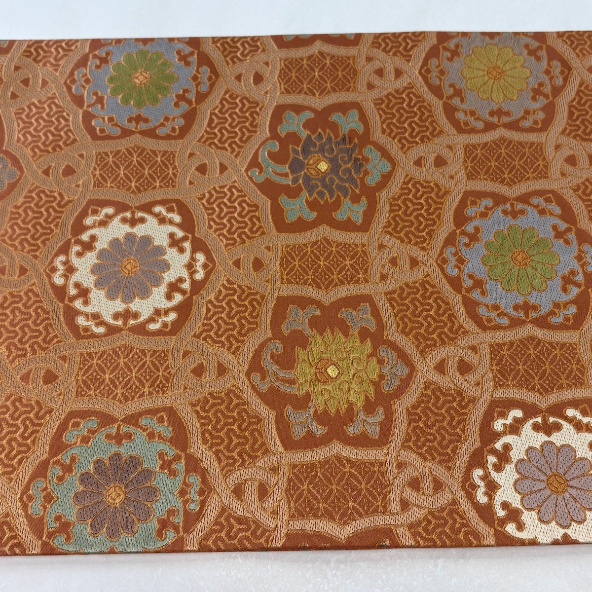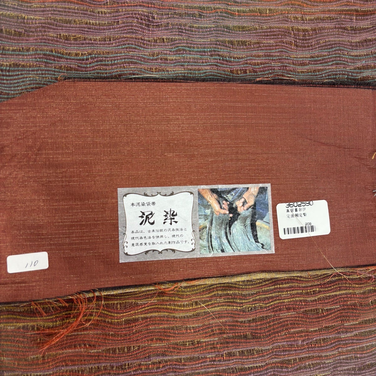50%OFF 反物 逸品 帯反物 草花 縞 金糸 赤茶 正絹 K50