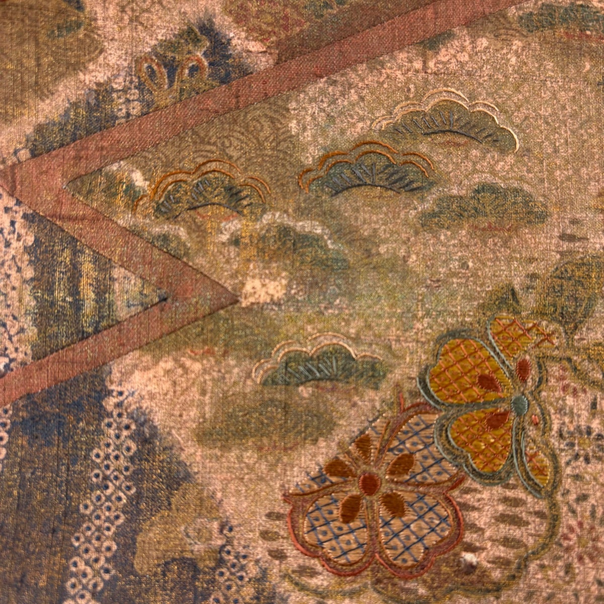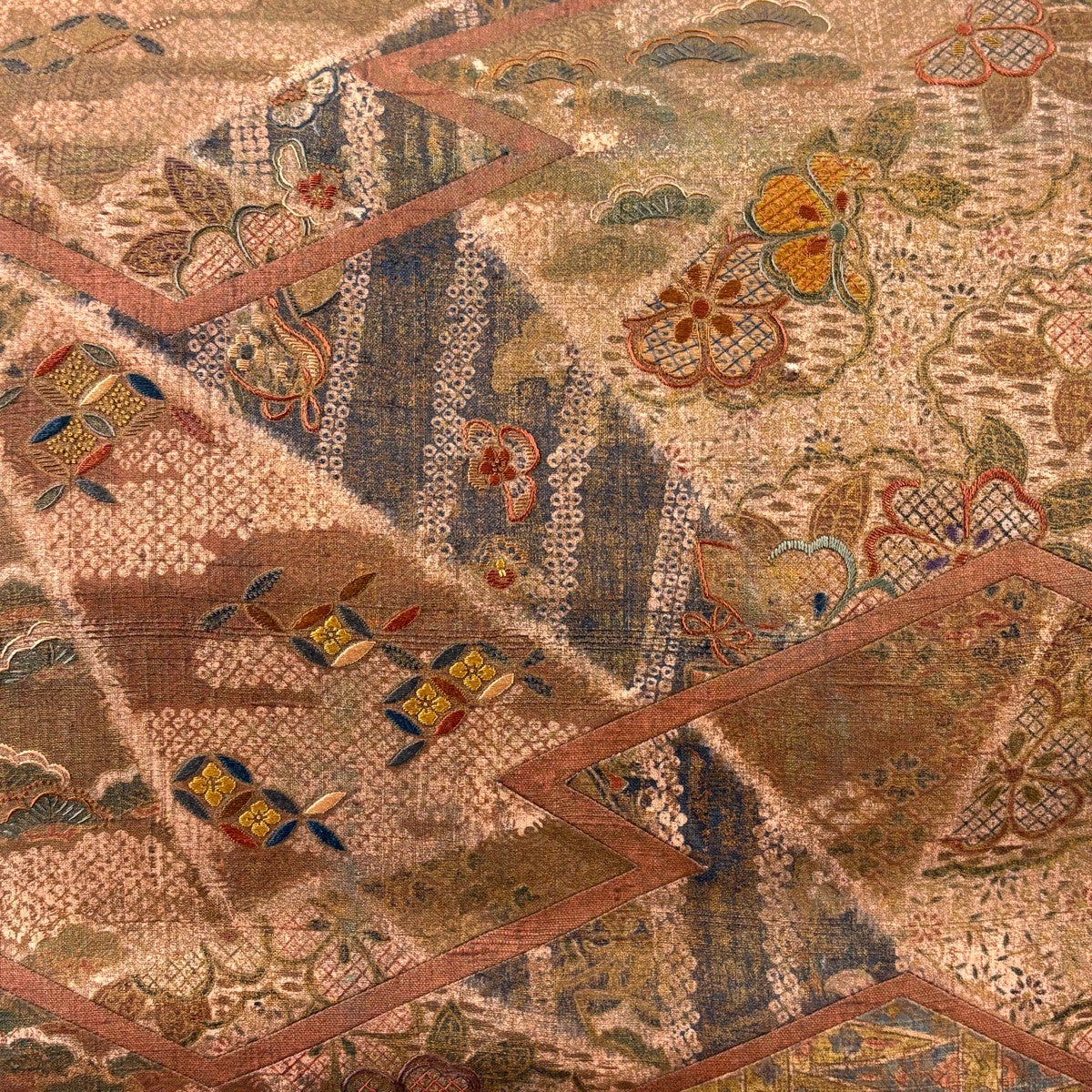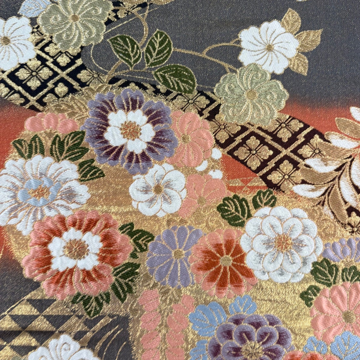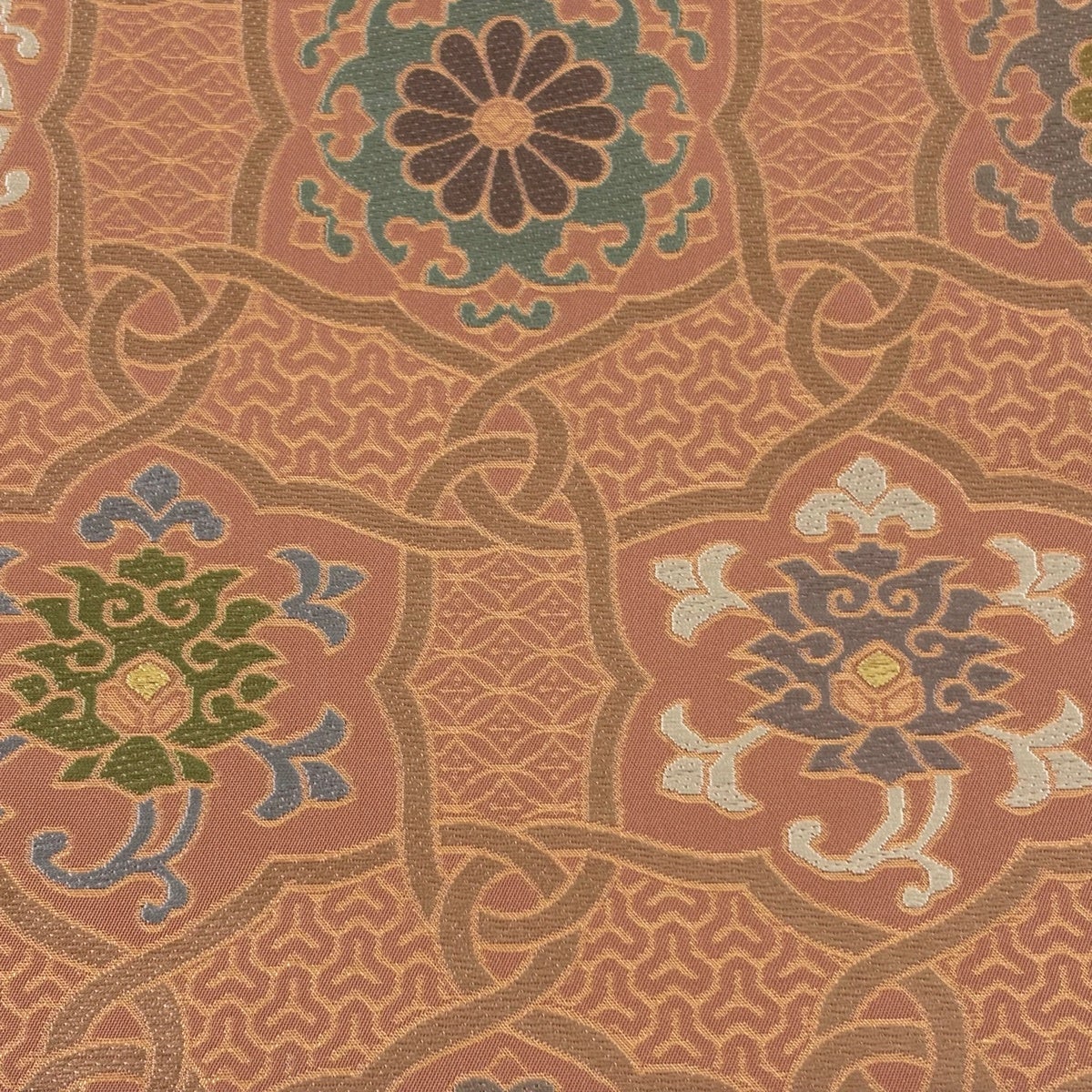 50%OFF 反物 逸品 帯反物 草花 縞 金糸 赤茶 正絹 K50