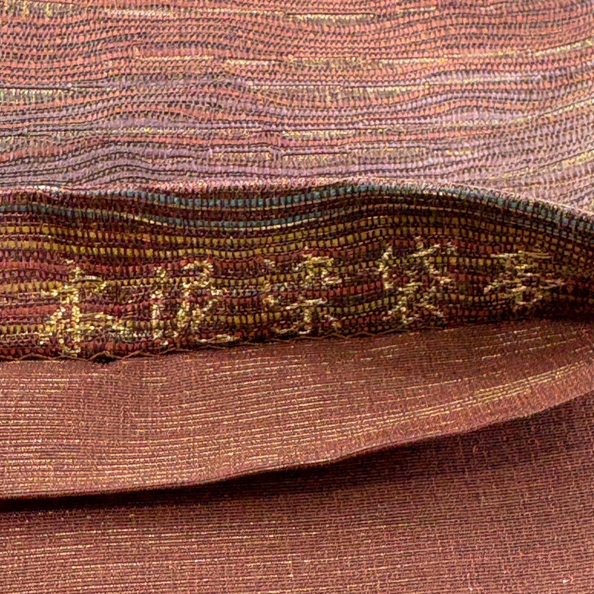 30%OFF 【美品】 袋帯 名品 鱗 箔 赤茶 六通 正絹 K30