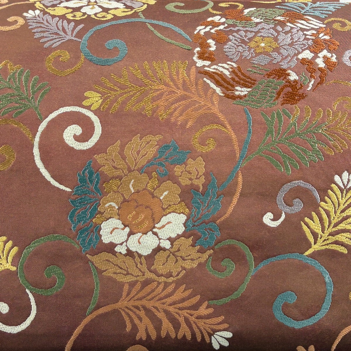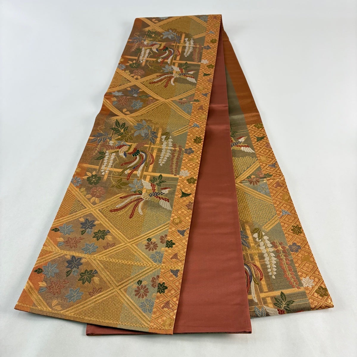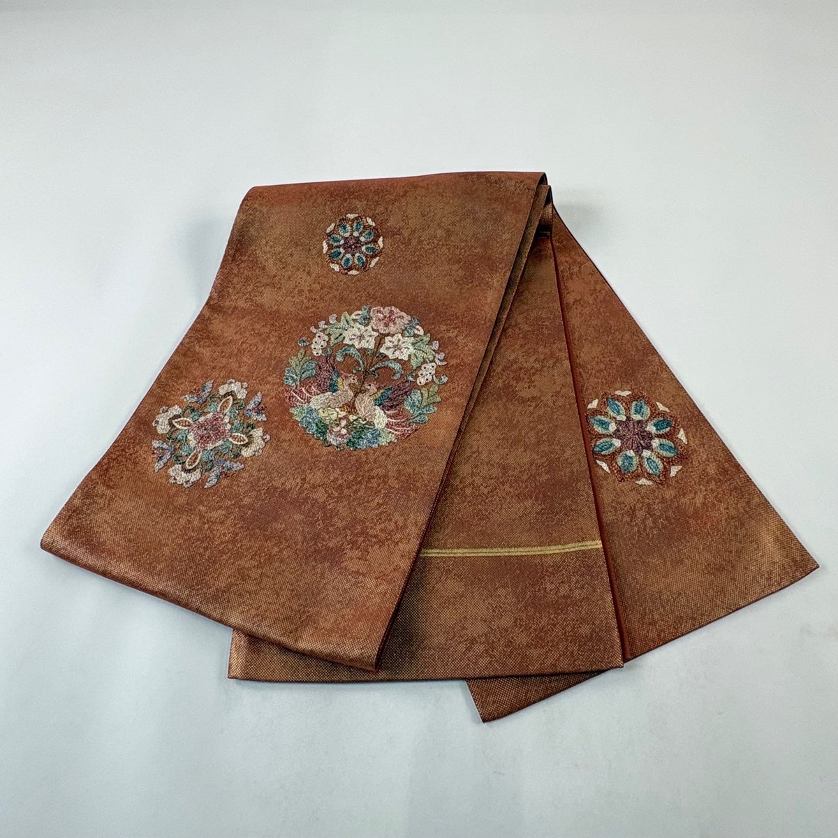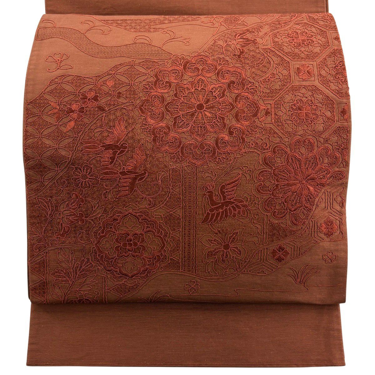 30%OFF 名古屋帯 優品 花喰い鳥 金糸 箔 赤茶 正絹 K30