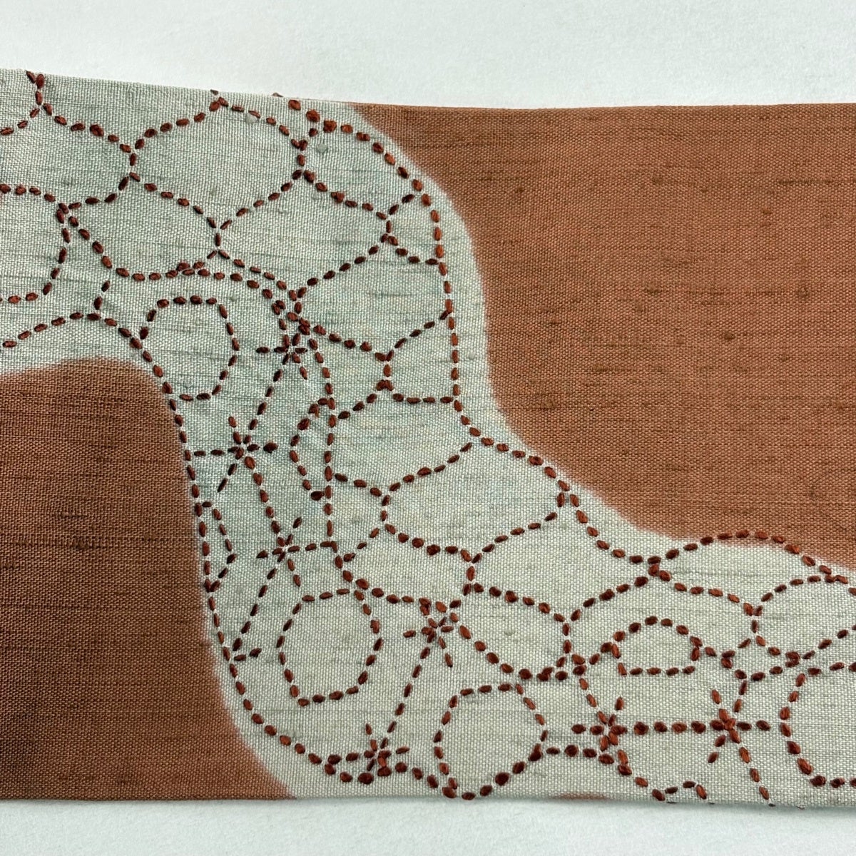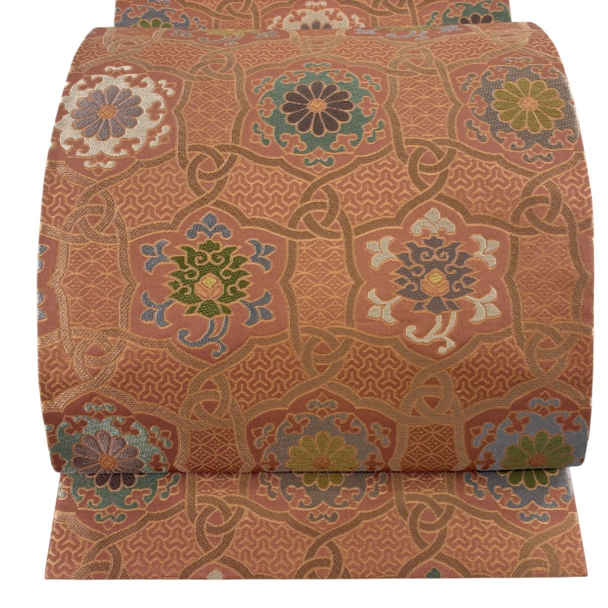 50%OFF 名古屋帯 秀品 紬地 花 幾何学 赤茶 正絹 K50