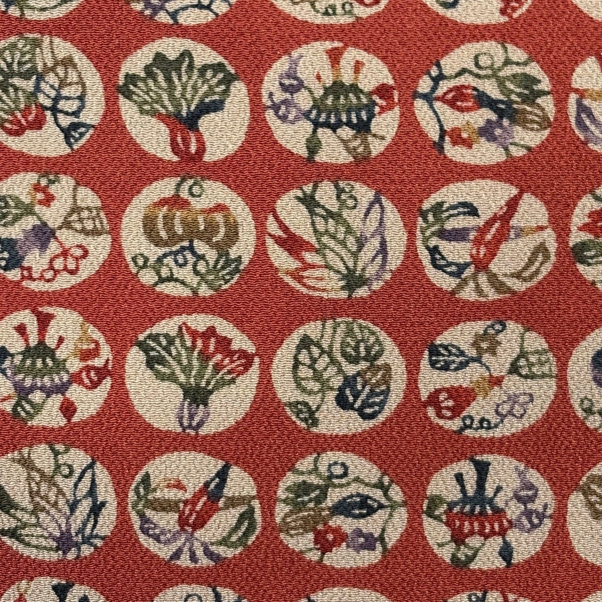 70%OFF 反物 秀品 小紋 草花 紗綾型 赤茶 正絹 K70