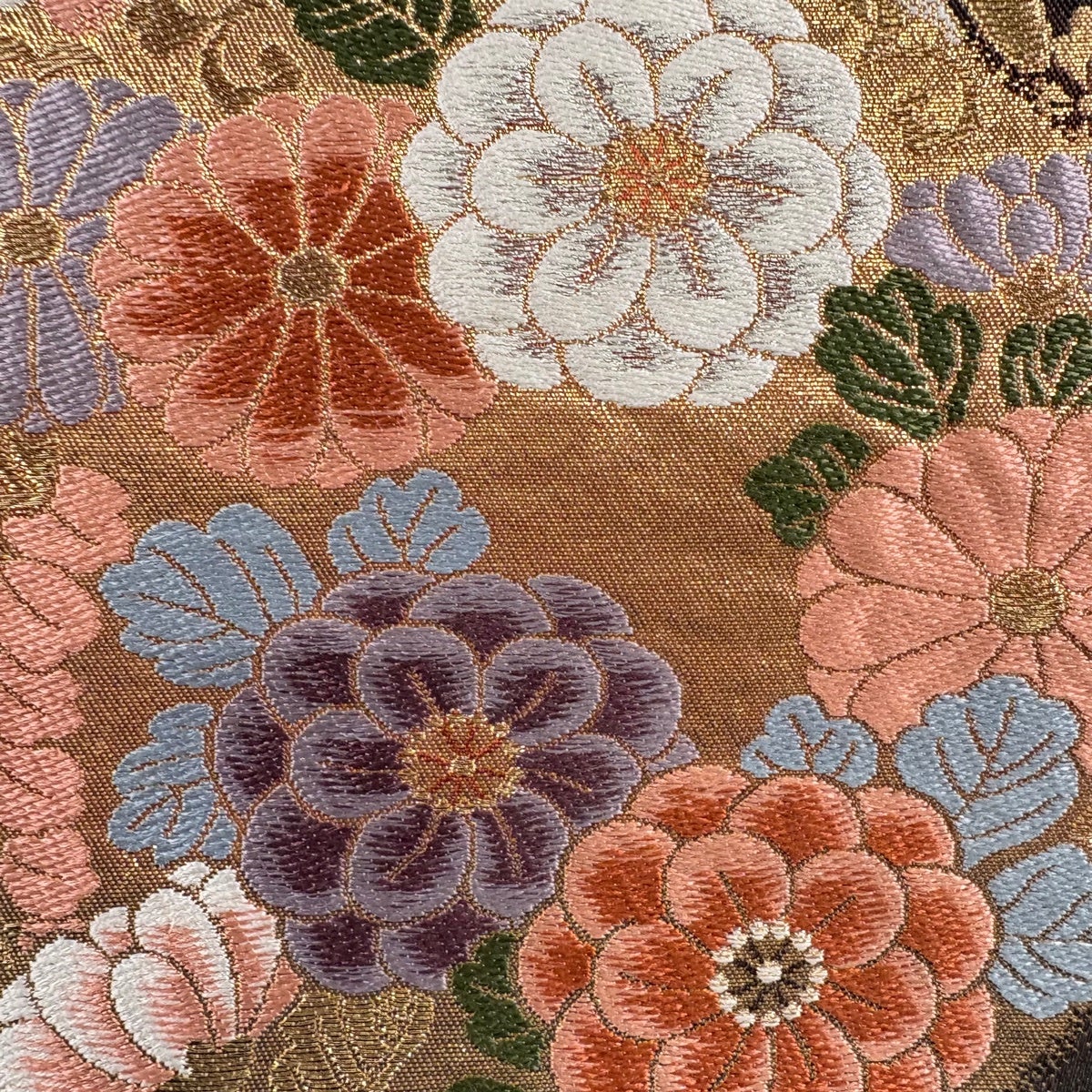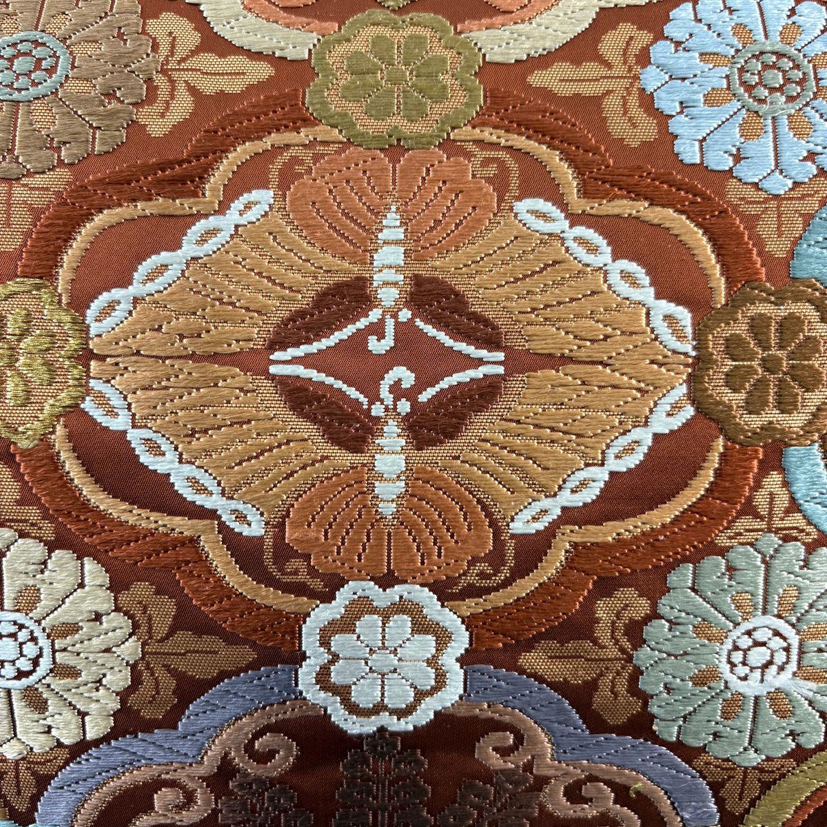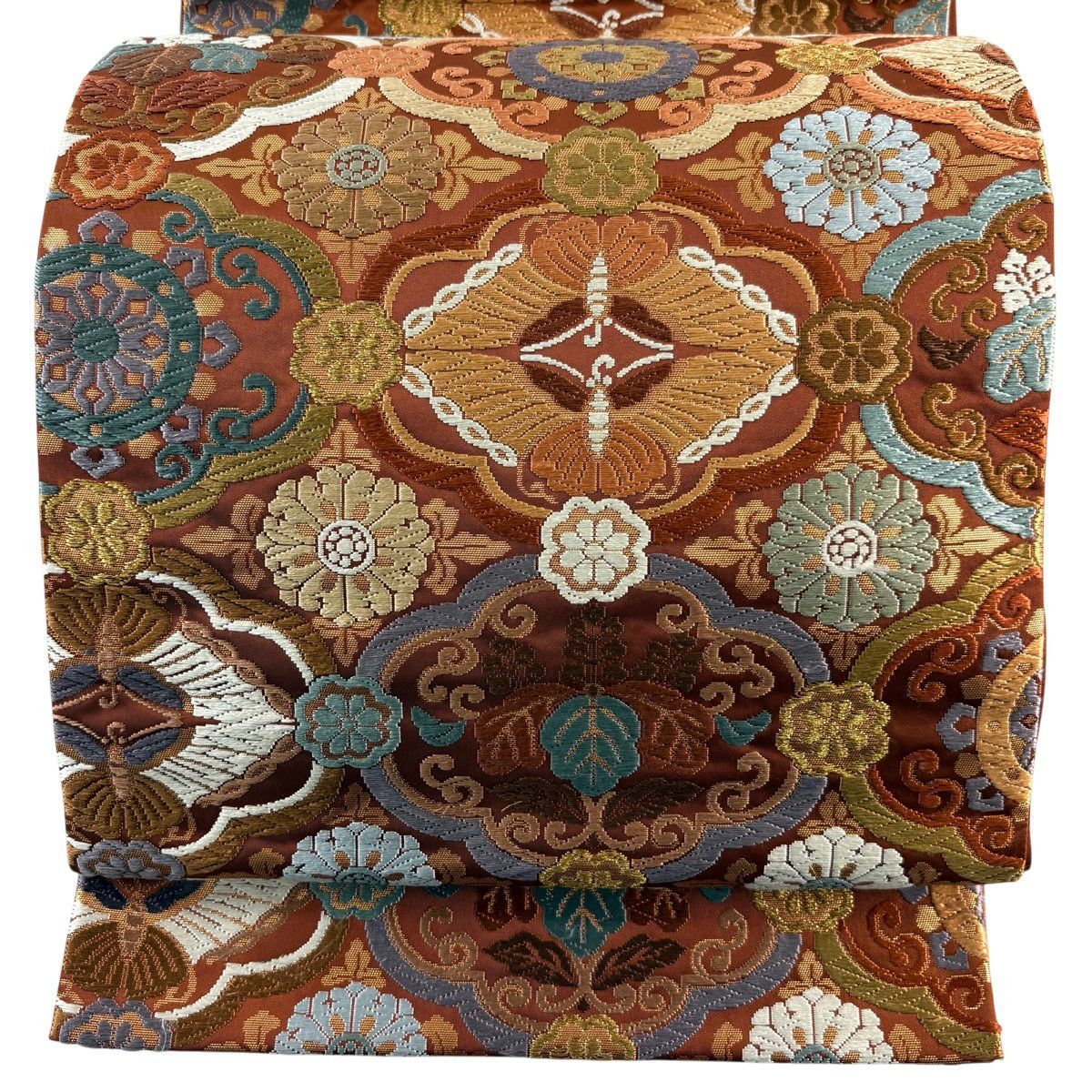袋帯 秀品 落款あり 北尾織物 華文 有職文様 箔 赤茶 全通 正絹
