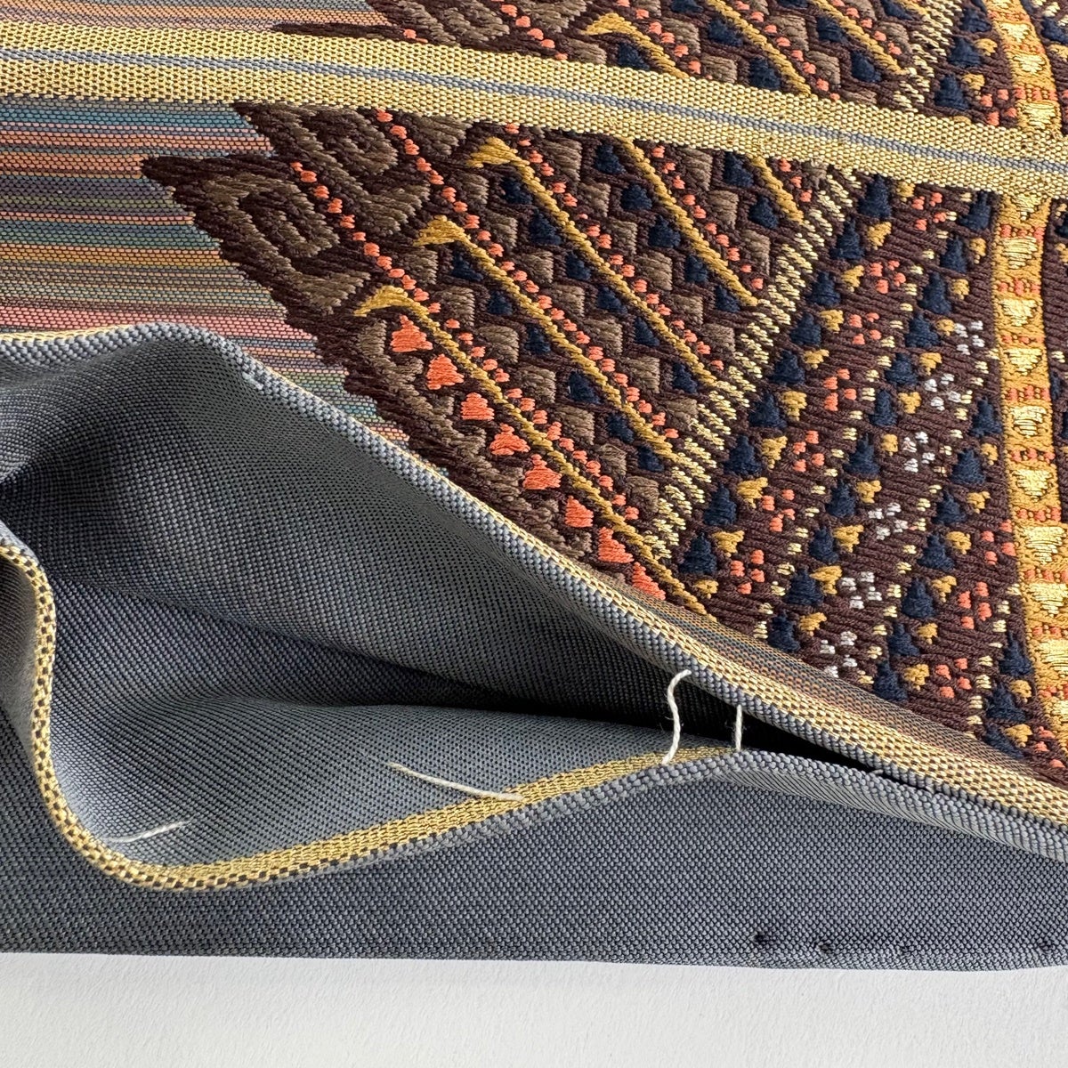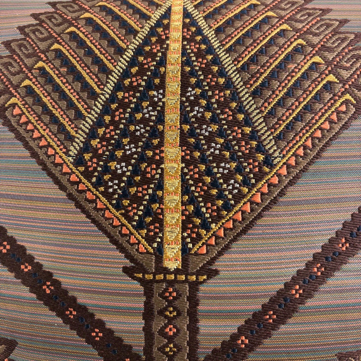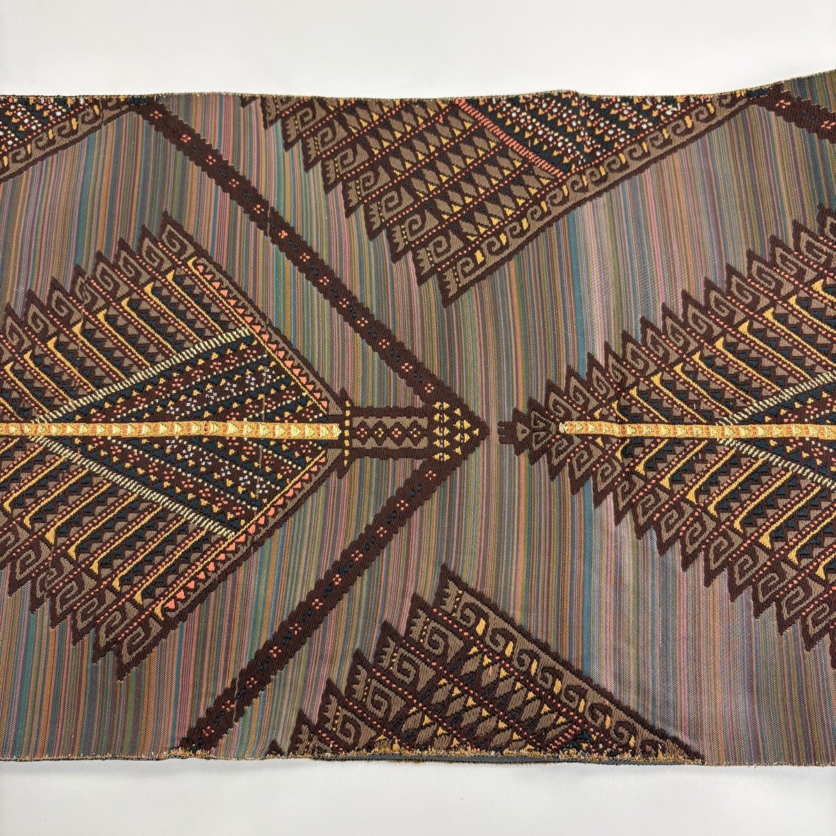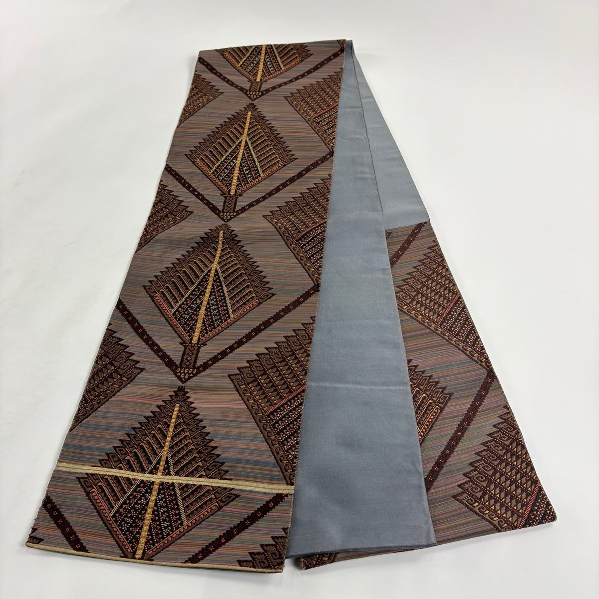 袋帯 秀品 幾何学模様 金糸 ラメ糸 赤茶 お太鼓柄 正絹