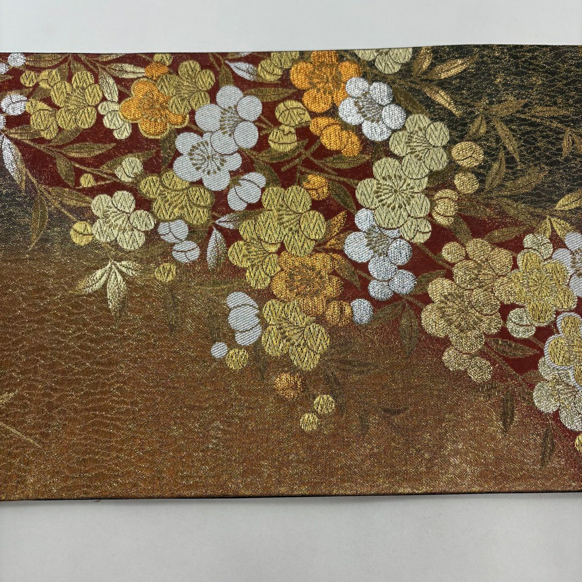 【美品】 袋帯 秀品 枝垂れ桜 金糸 箔 赤茶 六通 正絹