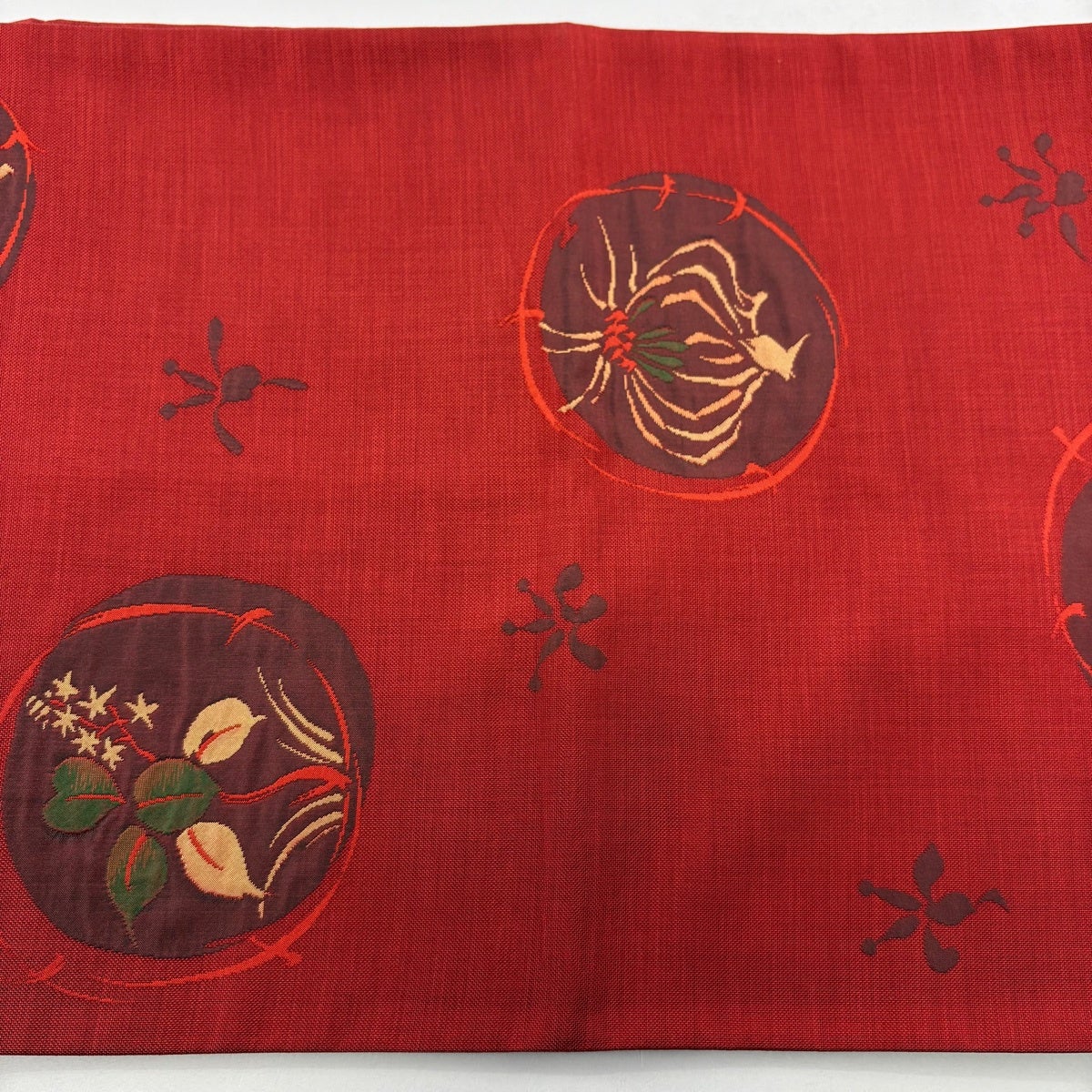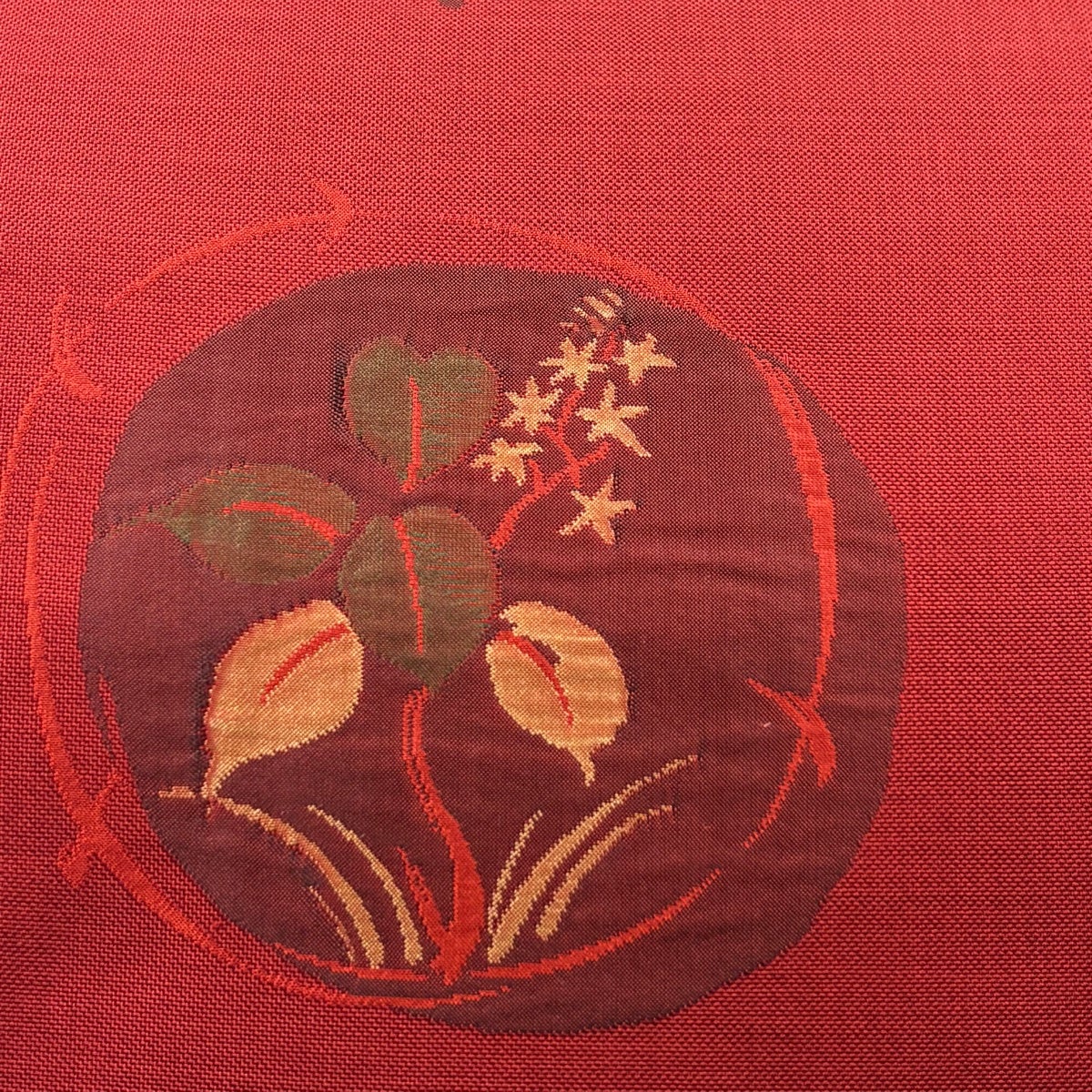 70%OFF 【美品】 名古屋帯 秀品 草花 赤 正絹 K70