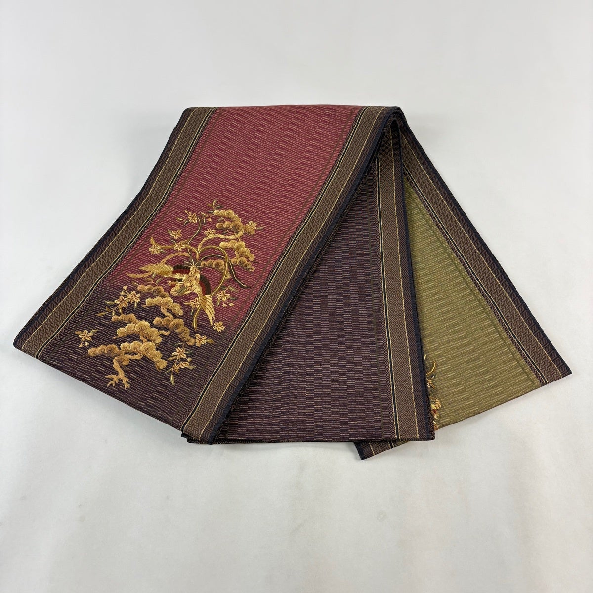 【美品】 袋帯 逸品 松 鳳凰 箔 赤茶 全通 正絹