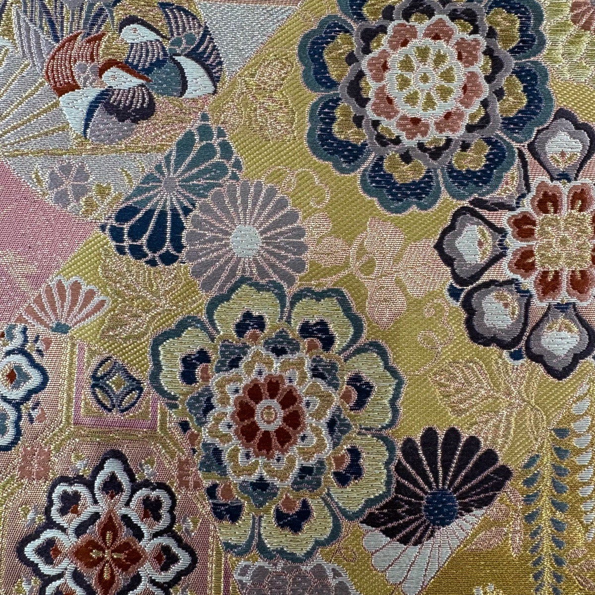 【美品】 袋帯 逸品 となみ織物 落款あり 花 赤茶 全通 正絹