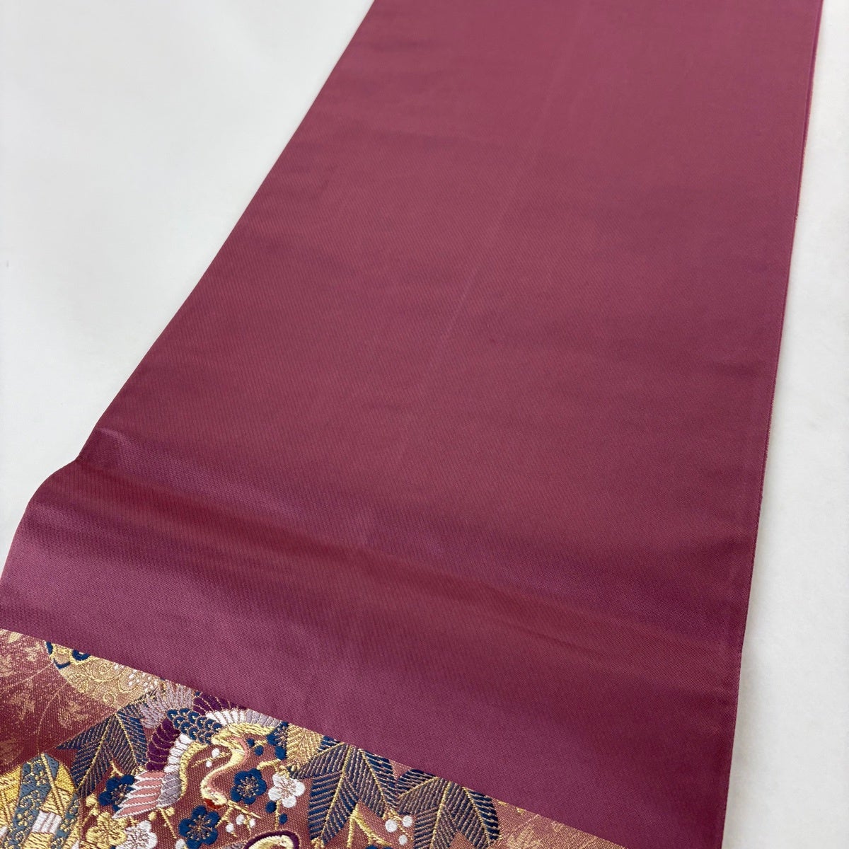 【美品】 袋帯 秀品 草木本泥染 山並み 金糸 赤紫 六通 正絹