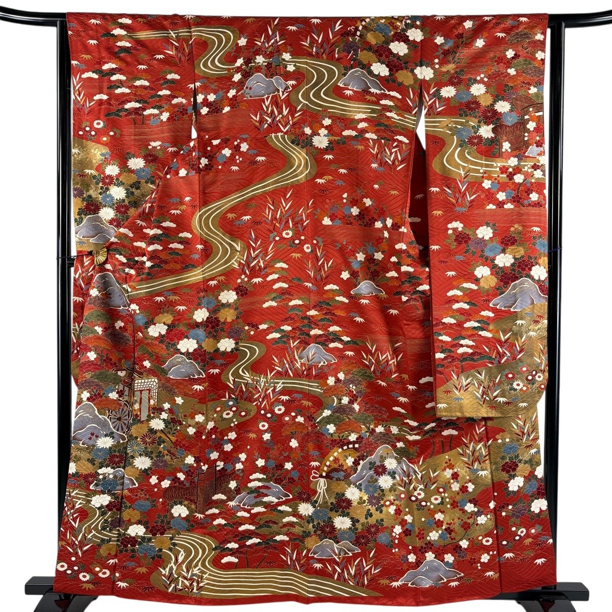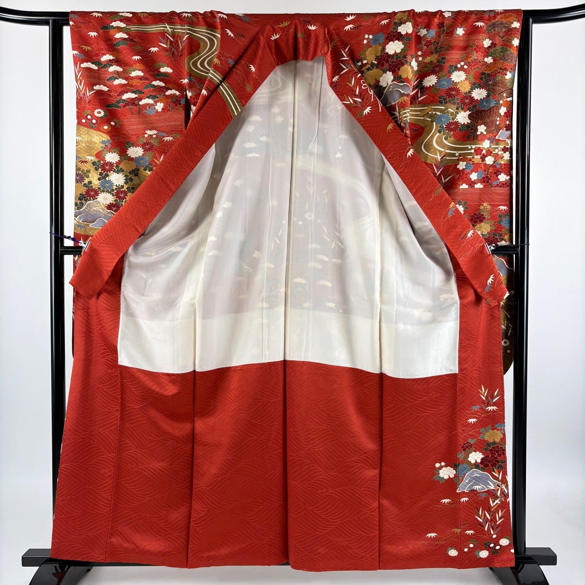 振袖 身丈161cm 裄丈63.5cm S 袷 御所車 松竹梅 金糸 金彩 赤 正絹 秀品