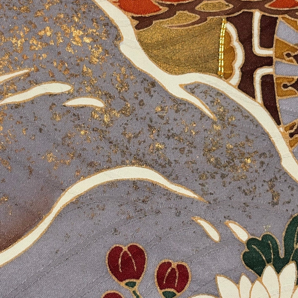 50%OFF 【美品】 袋帯 秀品 振袖向き 雪輪 花鳥 箔 赤 六通 正絹 K50