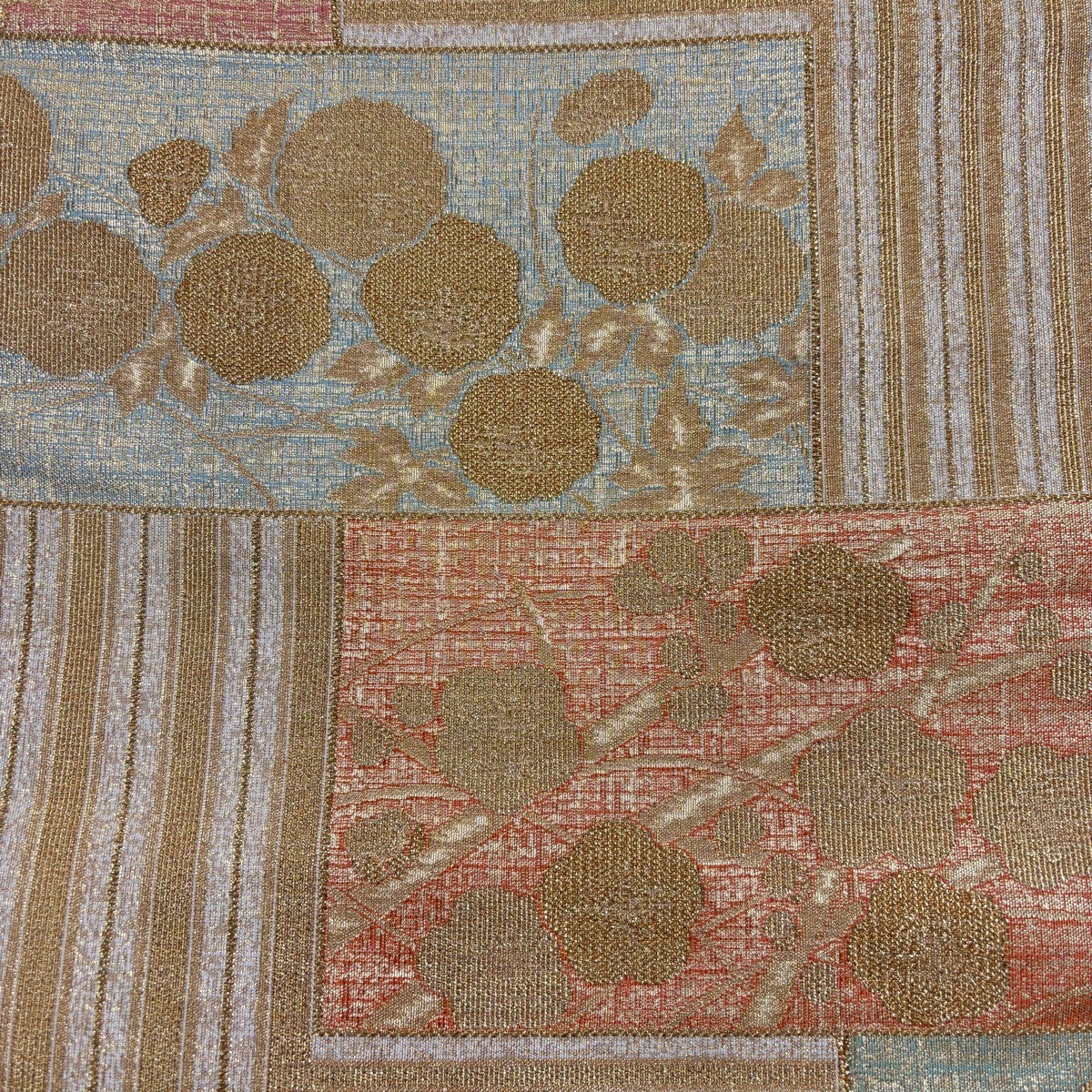 【美品】 袋帯 秀品 草木染 意匠保全 草花 箔 小豆色 六通 正絹