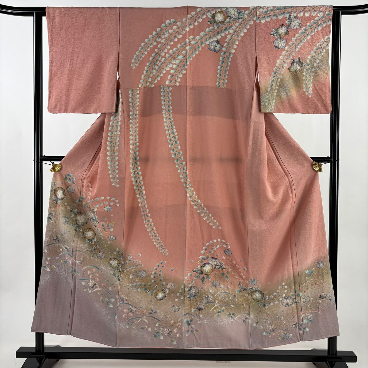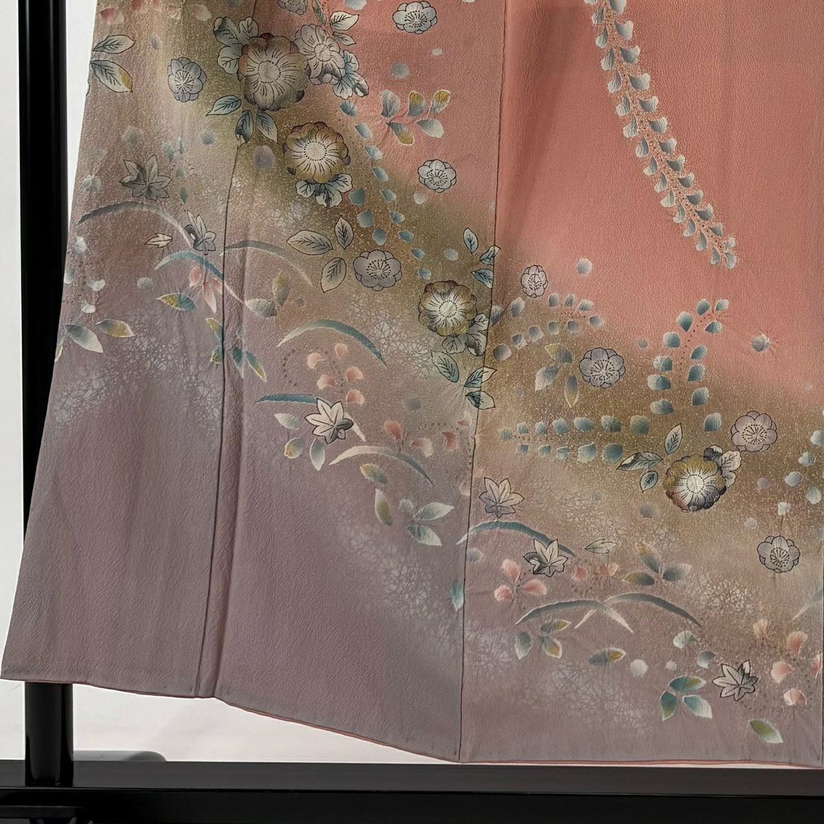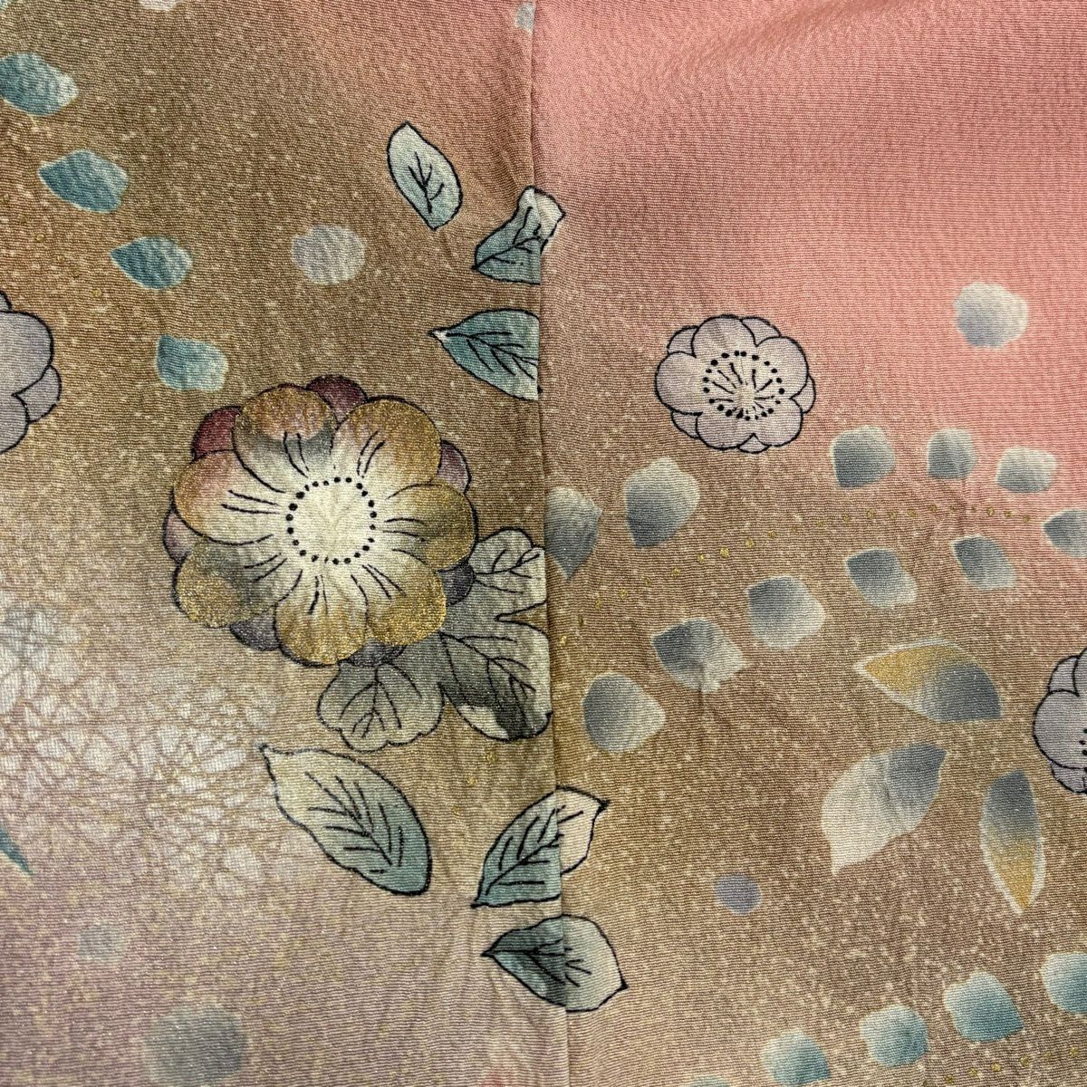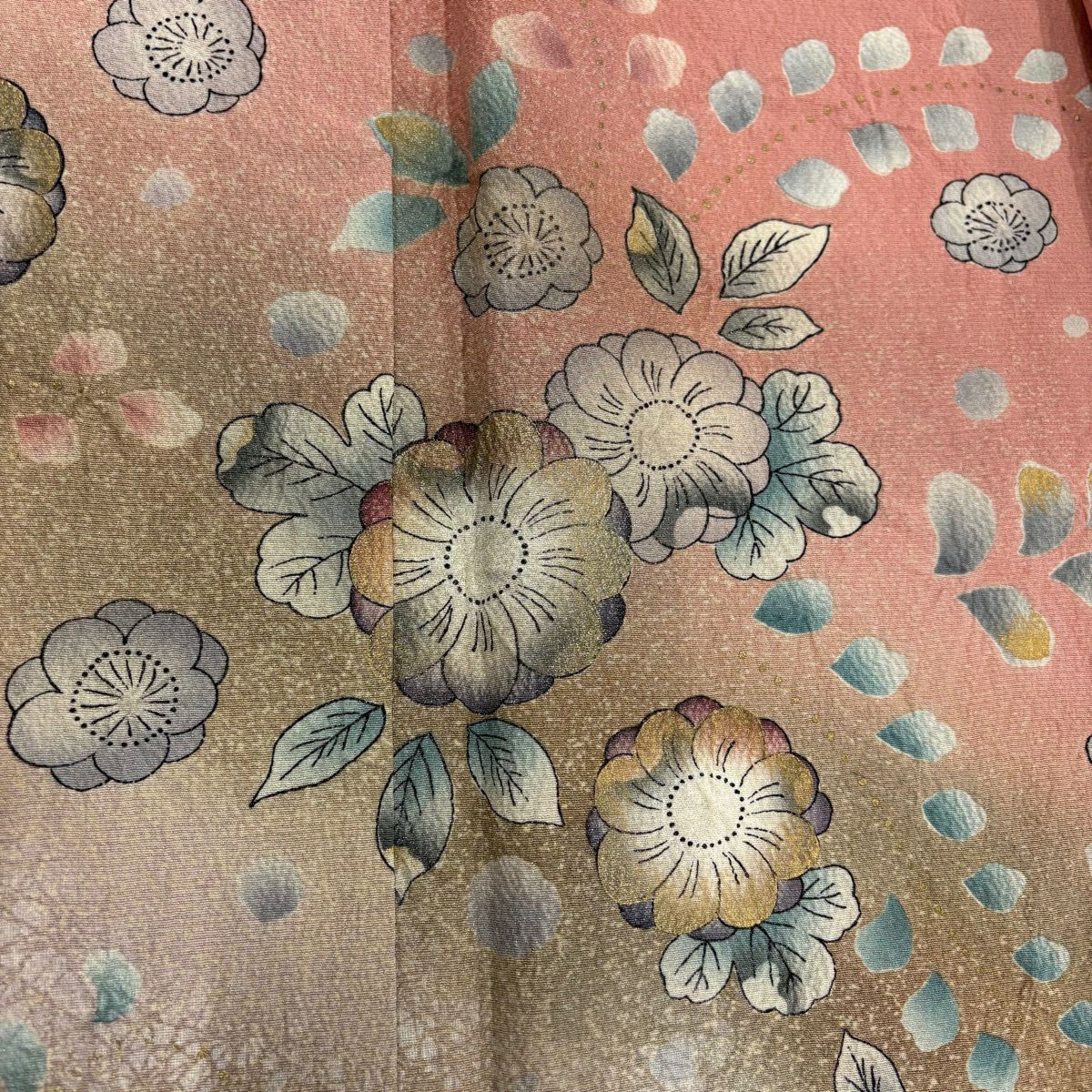 付下げ 身丈162.5cm 裄丈65.5cm M 袷 菊 辻が花柄 金彩 染め分け ピンク 正絹 秀品