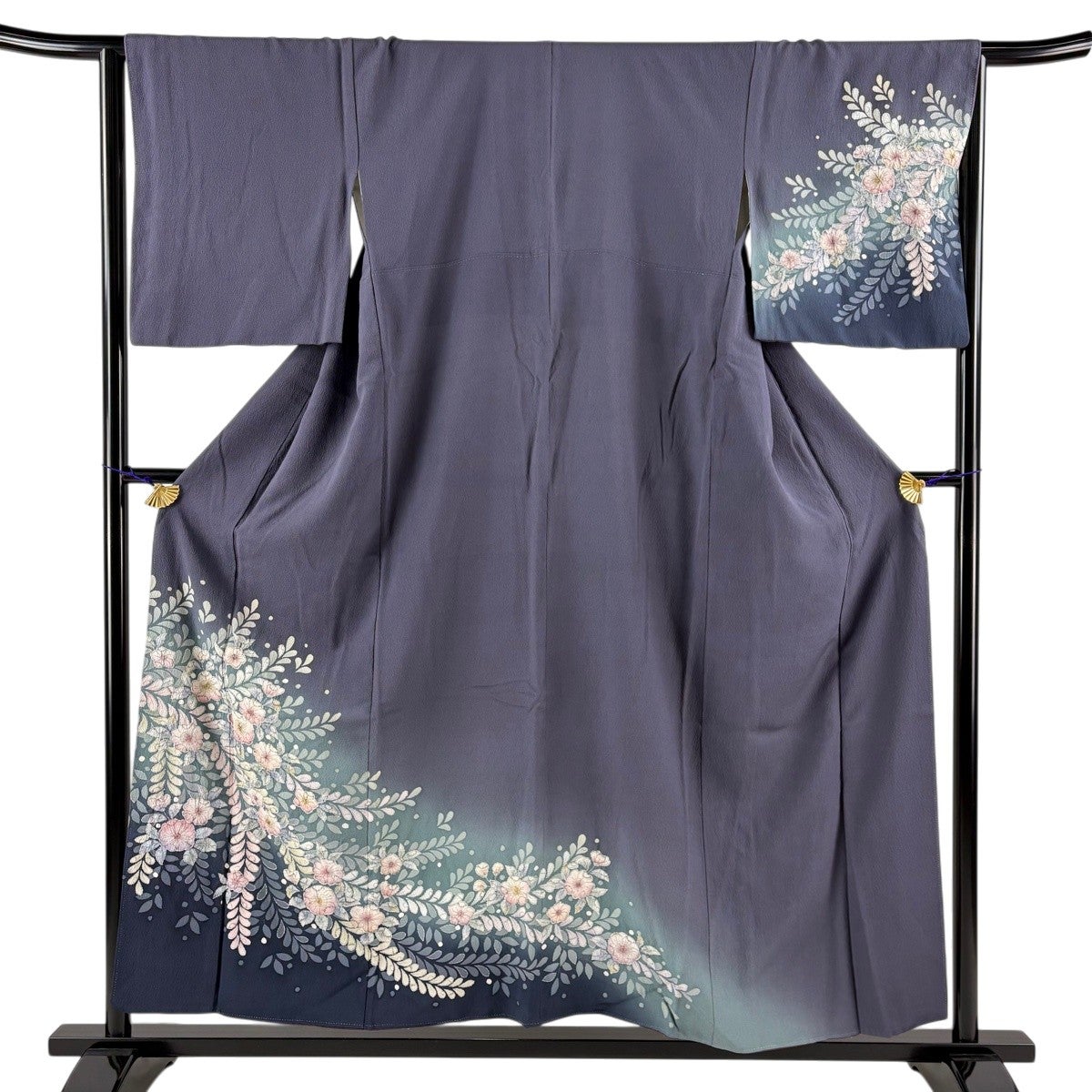 訪問着 身丈154.5cm 裄丈64cm M 袷 辻が花 ぼかし 青紫 正絹 秀品