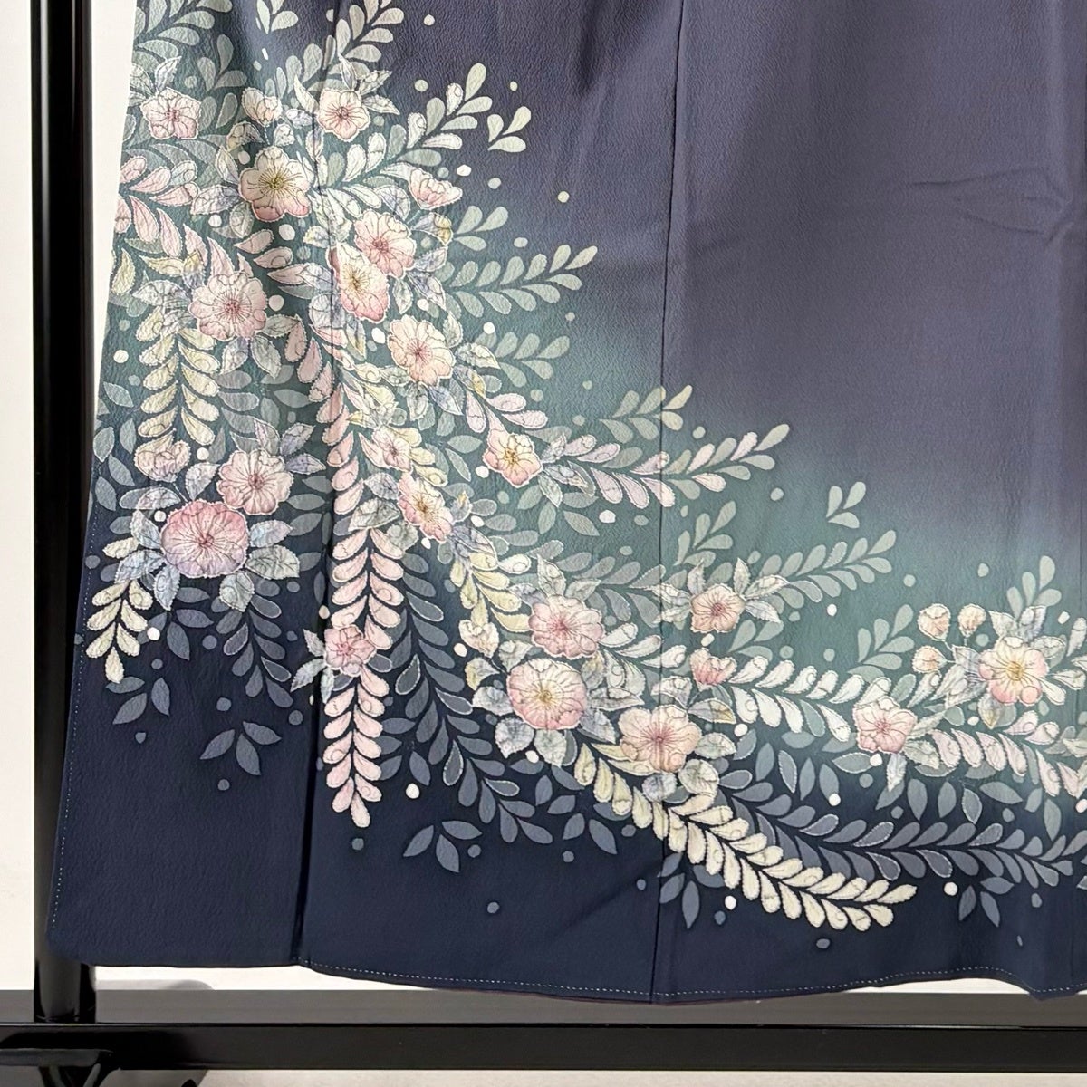 訪問着 身丈159.5cm 裄丈65.5cm M 袷 辻が花 ぼかし 青緑 正絹 秀品