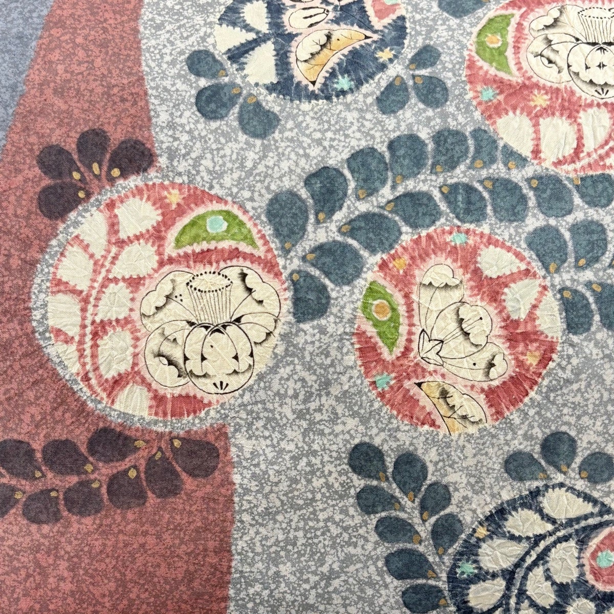 振袖 身丈165cm 裄丈68cm L 袷 牡丹 辻が花 金彩 赤紫 正絹 名品