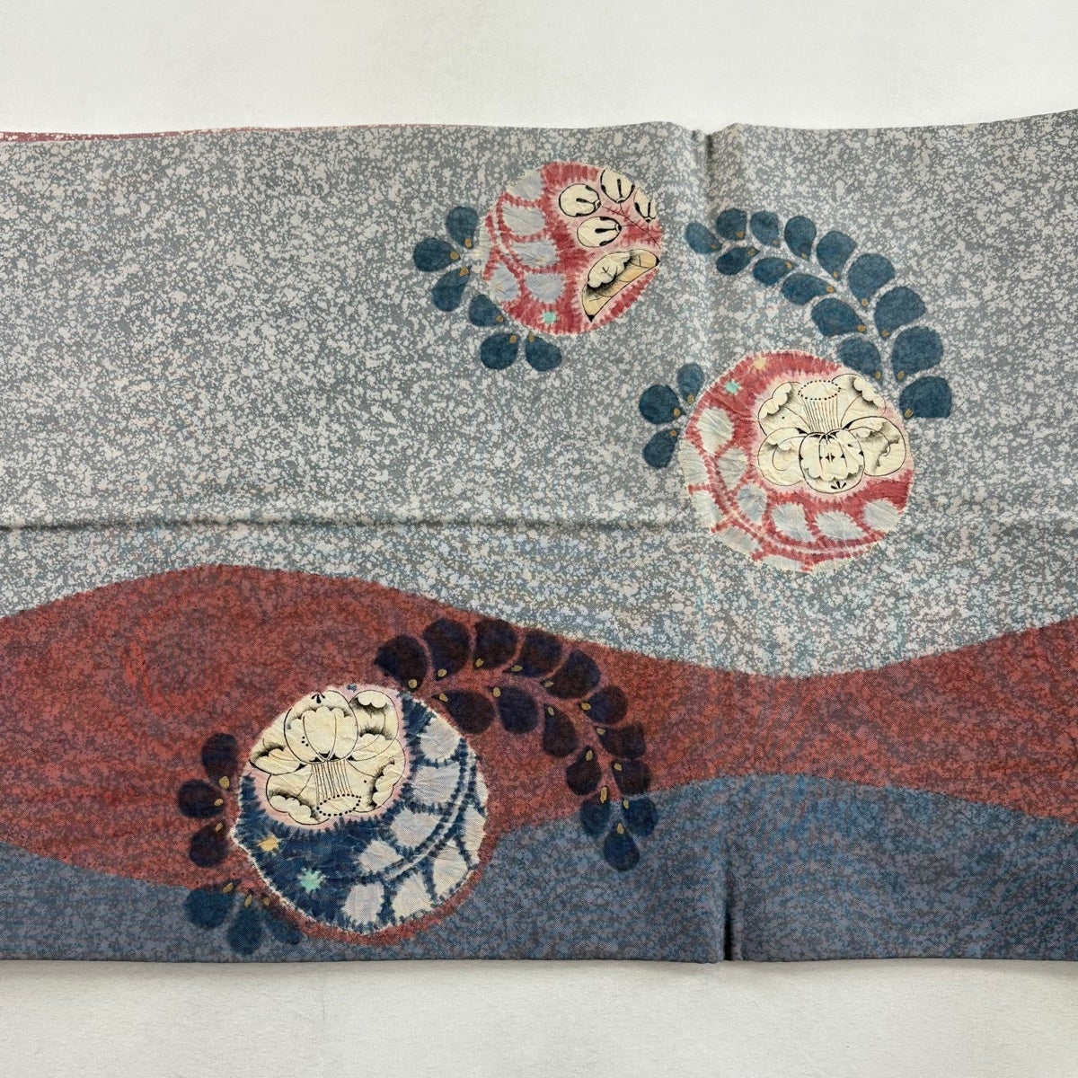 袋帯 秀品 辻が花柄 銀通し 箔 青灰色 お太鼓柄 正絹