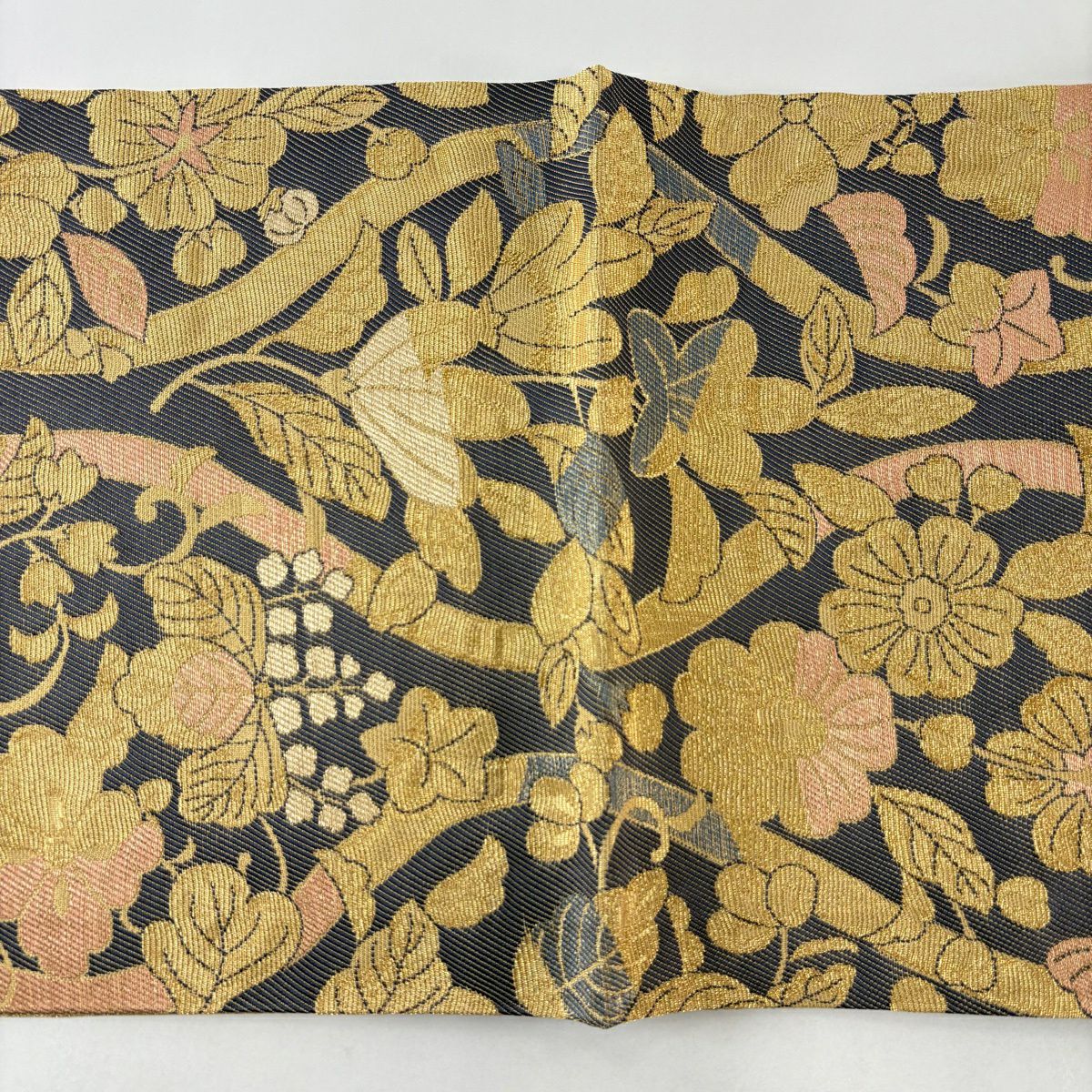 【美品】 袋帯 秀品 草花 辻が花柄 箔 金糸 黒 六通 正絹