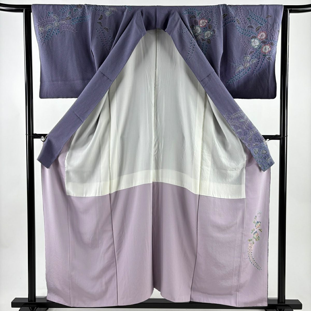 訪問着 身丈156cm 裄丈60cm S 袷 落款あり 辻が花 ぼかし 灰紫 正絹 名品