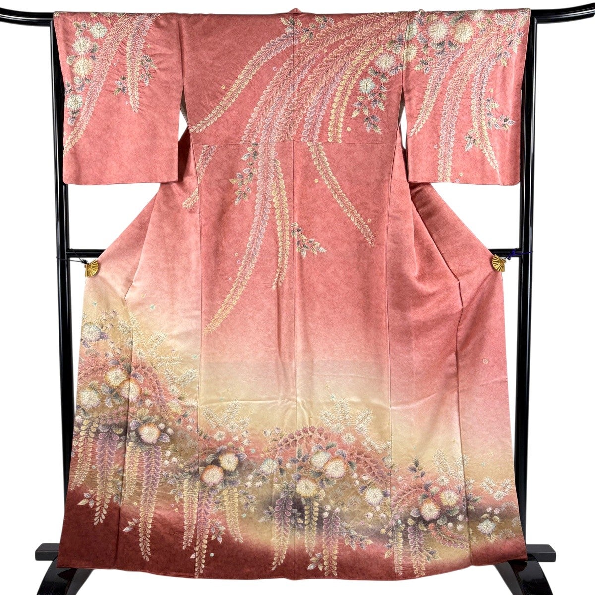 【美品】 訪問着 身丈158.5cm 裄丈64.5cm M 袷 扇面 辻が花 金銀彩 ぼかし ピンク 正絹 名品