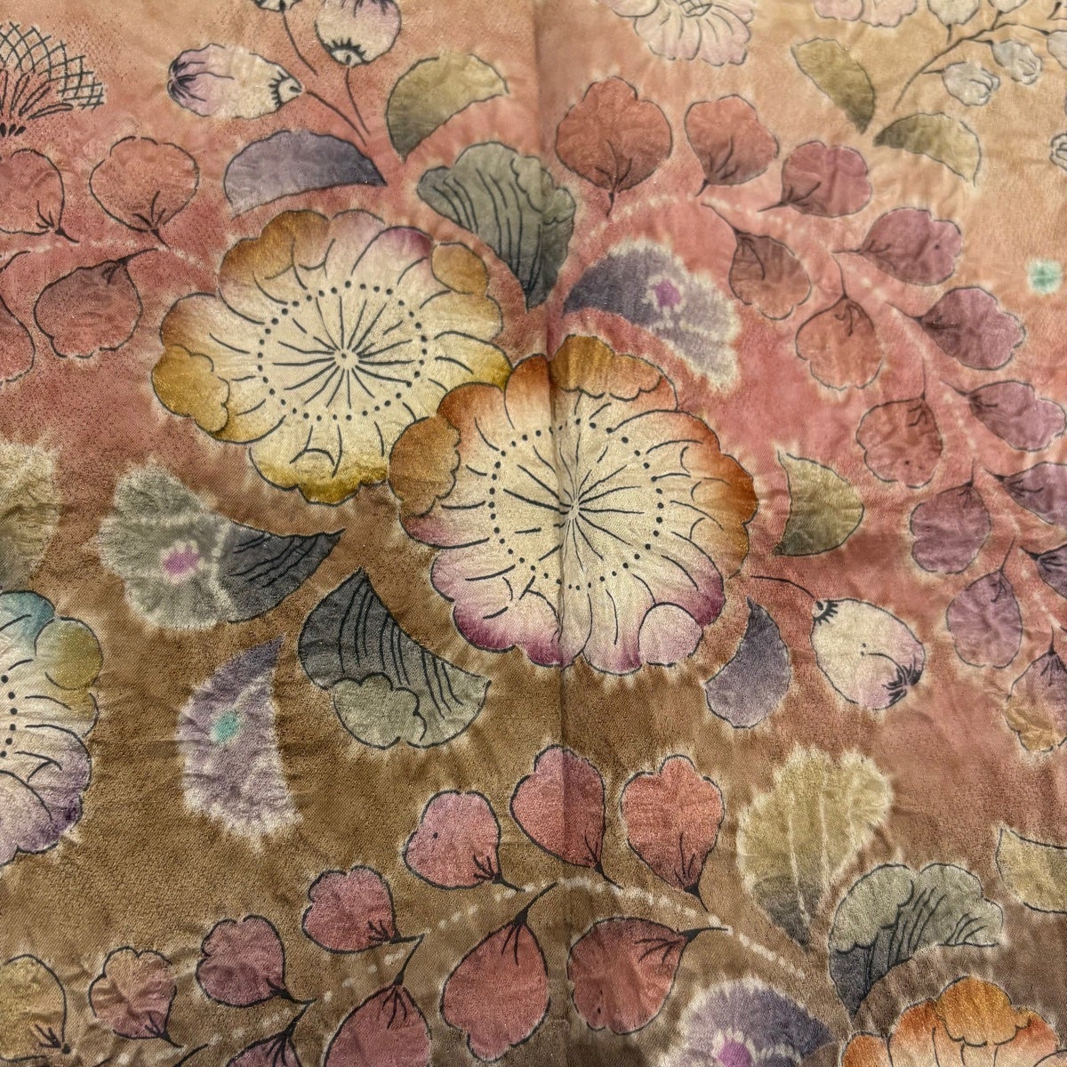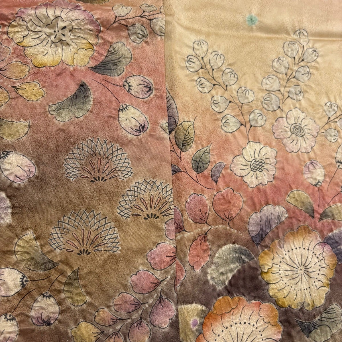 訪問着 身丈164cm 裄丈66cm M 袷 袋帯セット 落款あり 辻が花 金彩 ぼかし 山吹茶色 正絹 名品