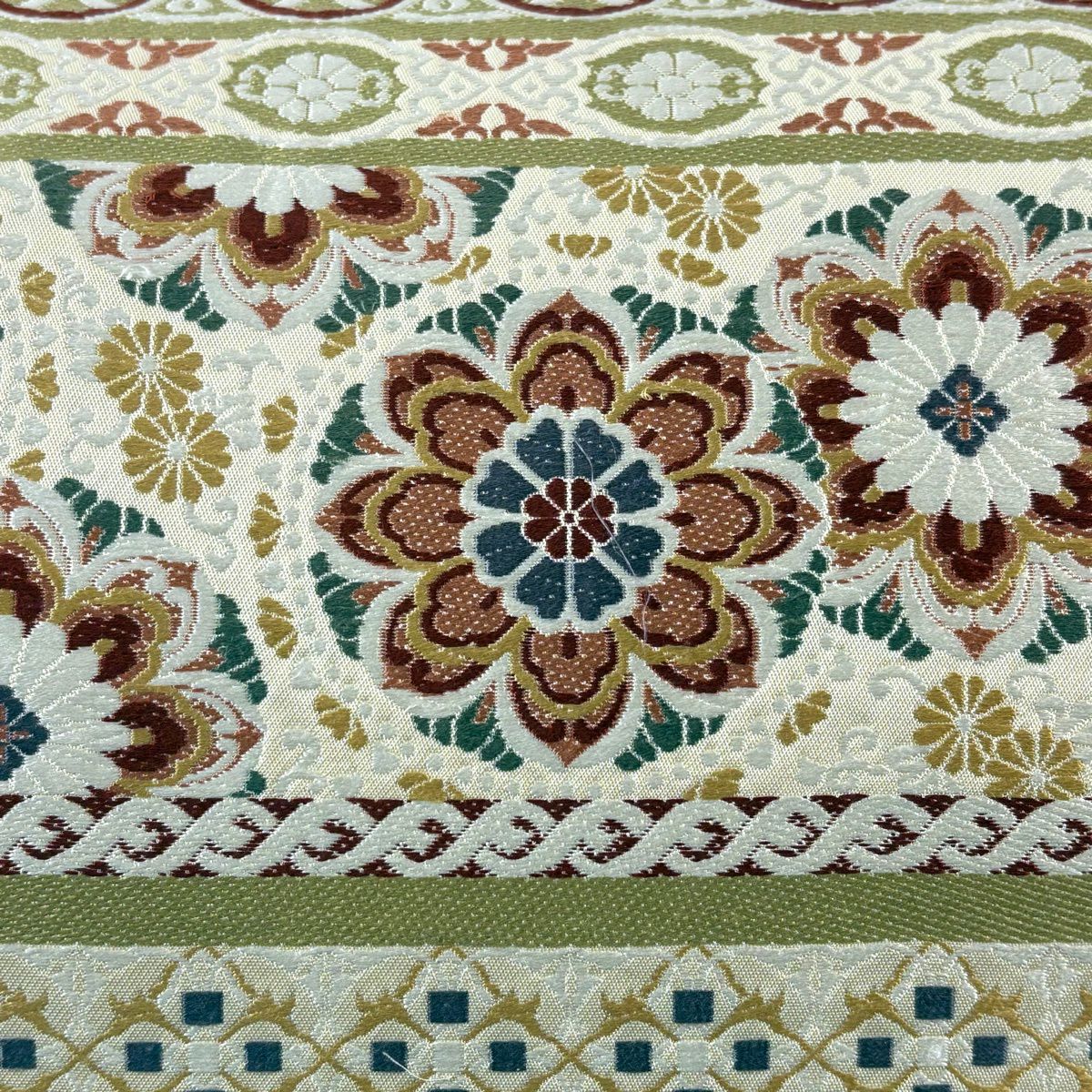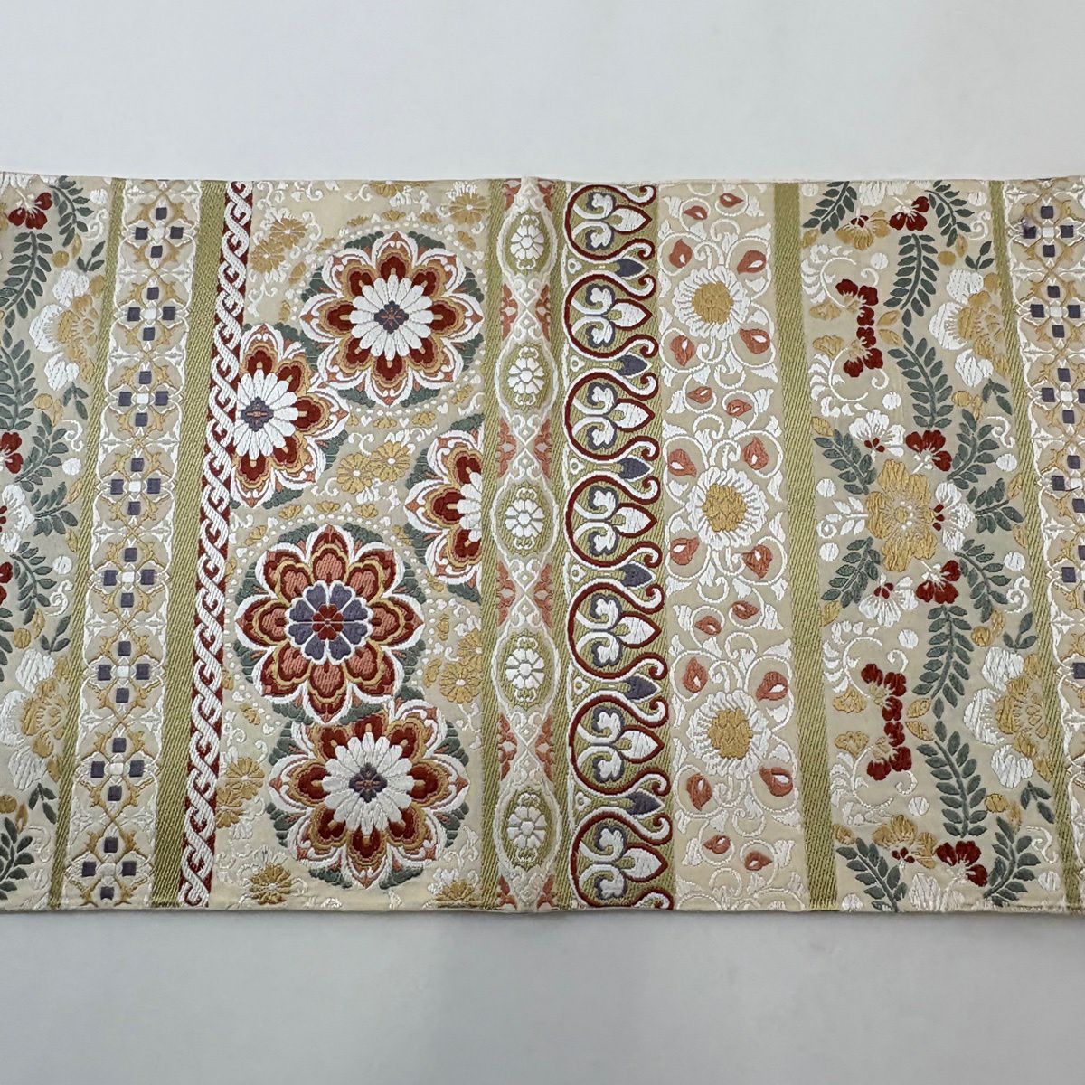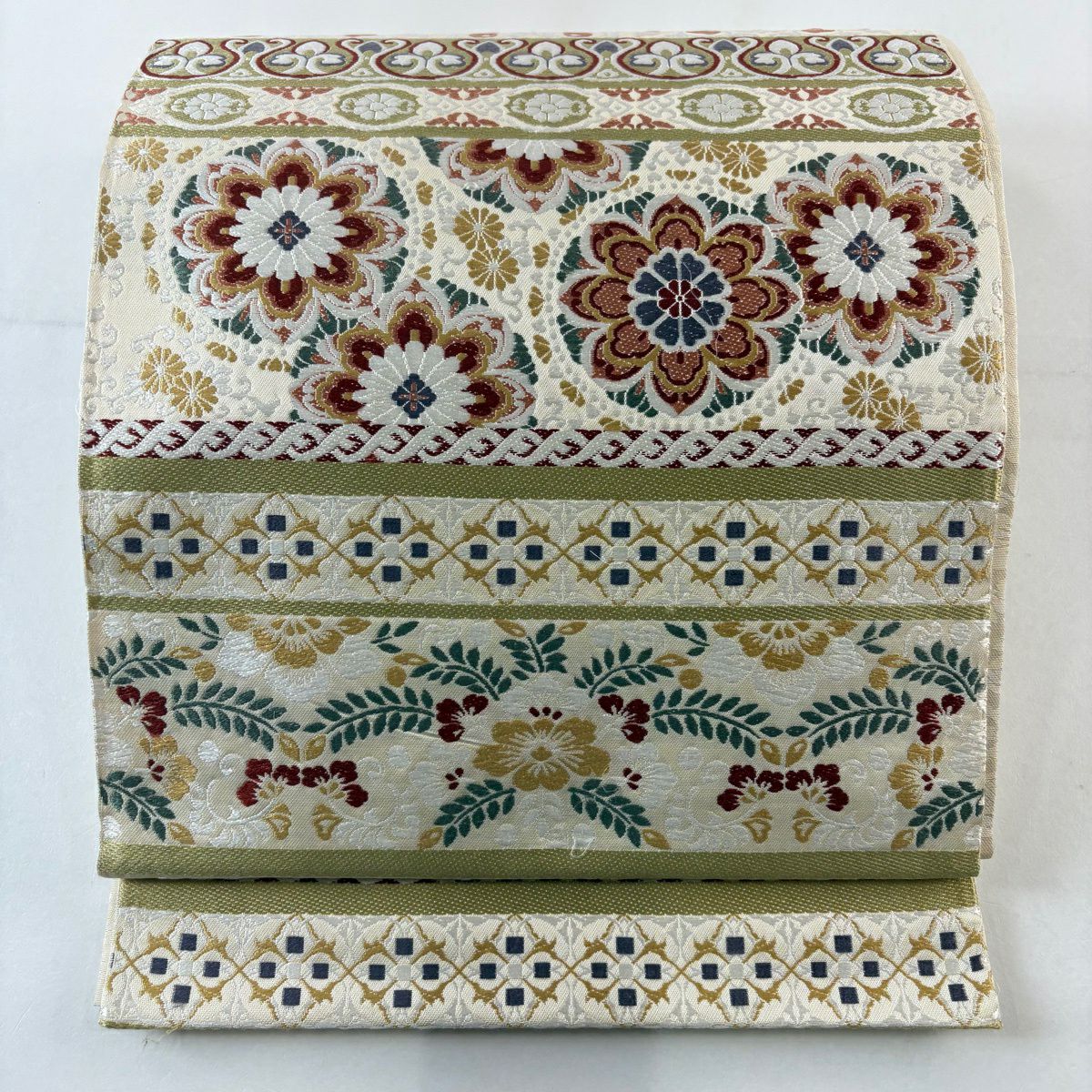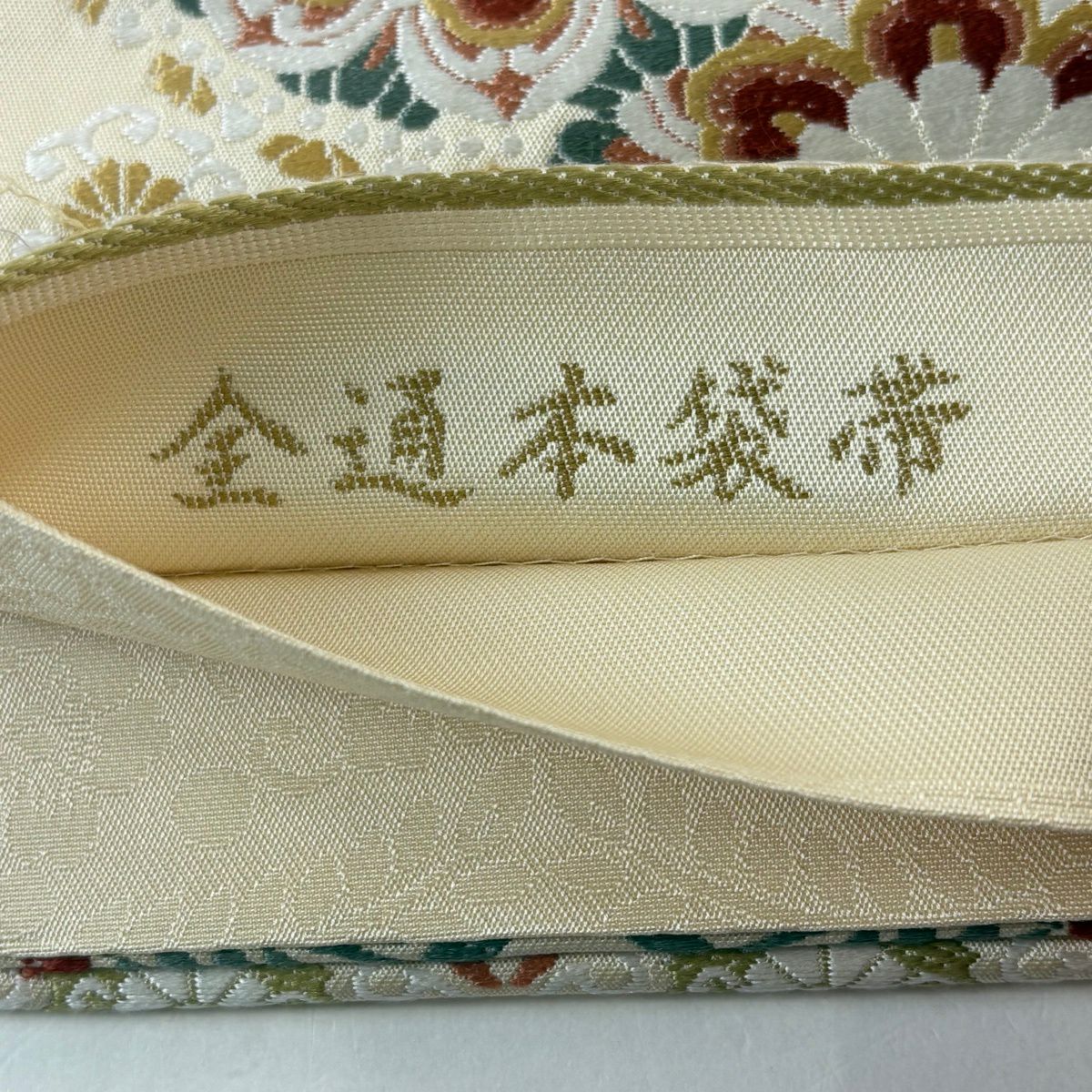 袋帯 逸品 華文 草花 クリーム 全通 正絹