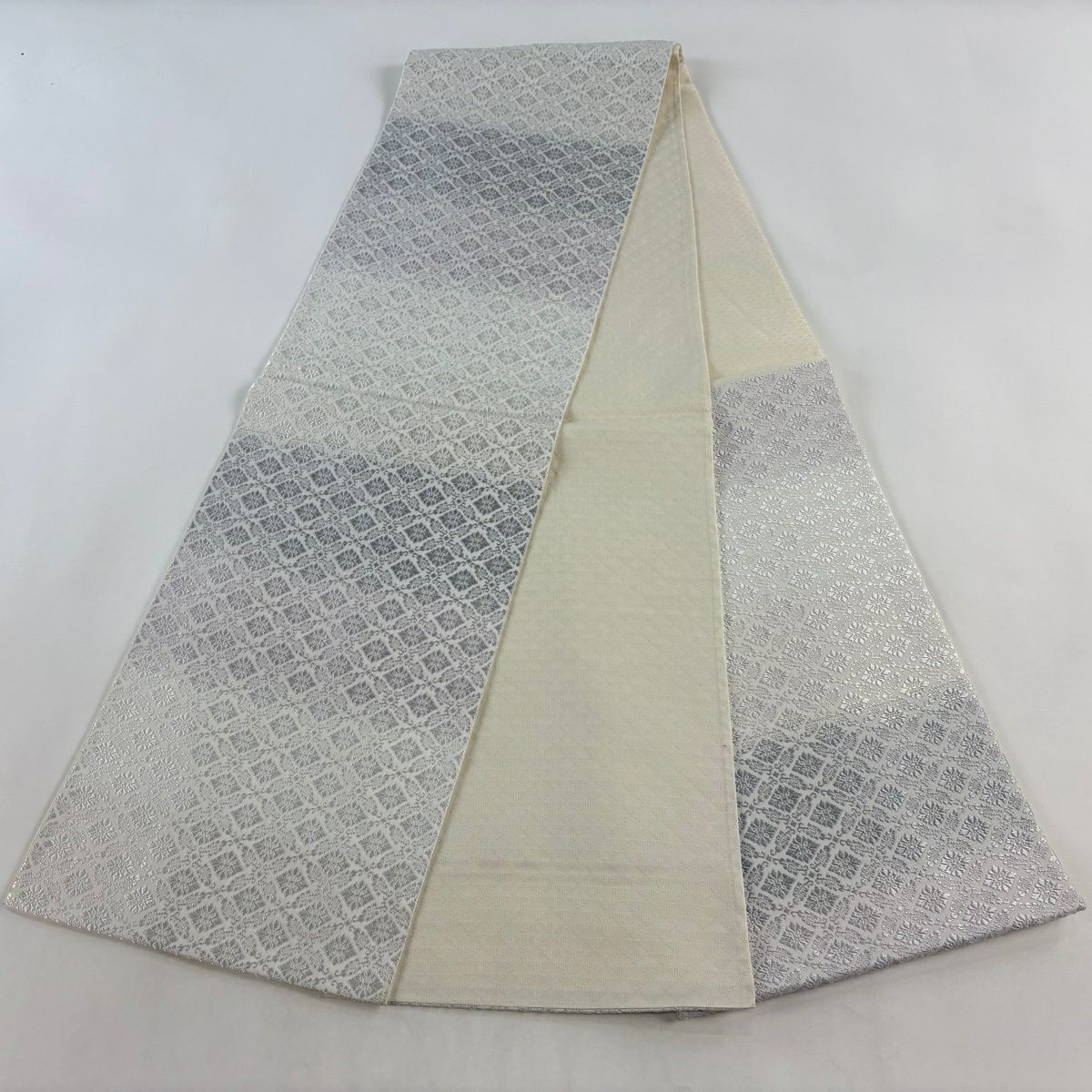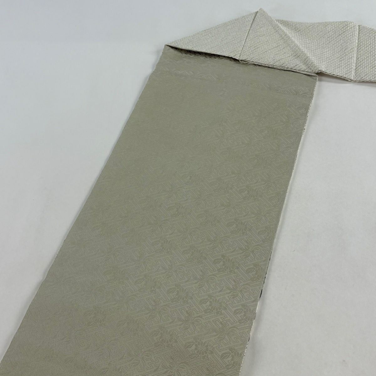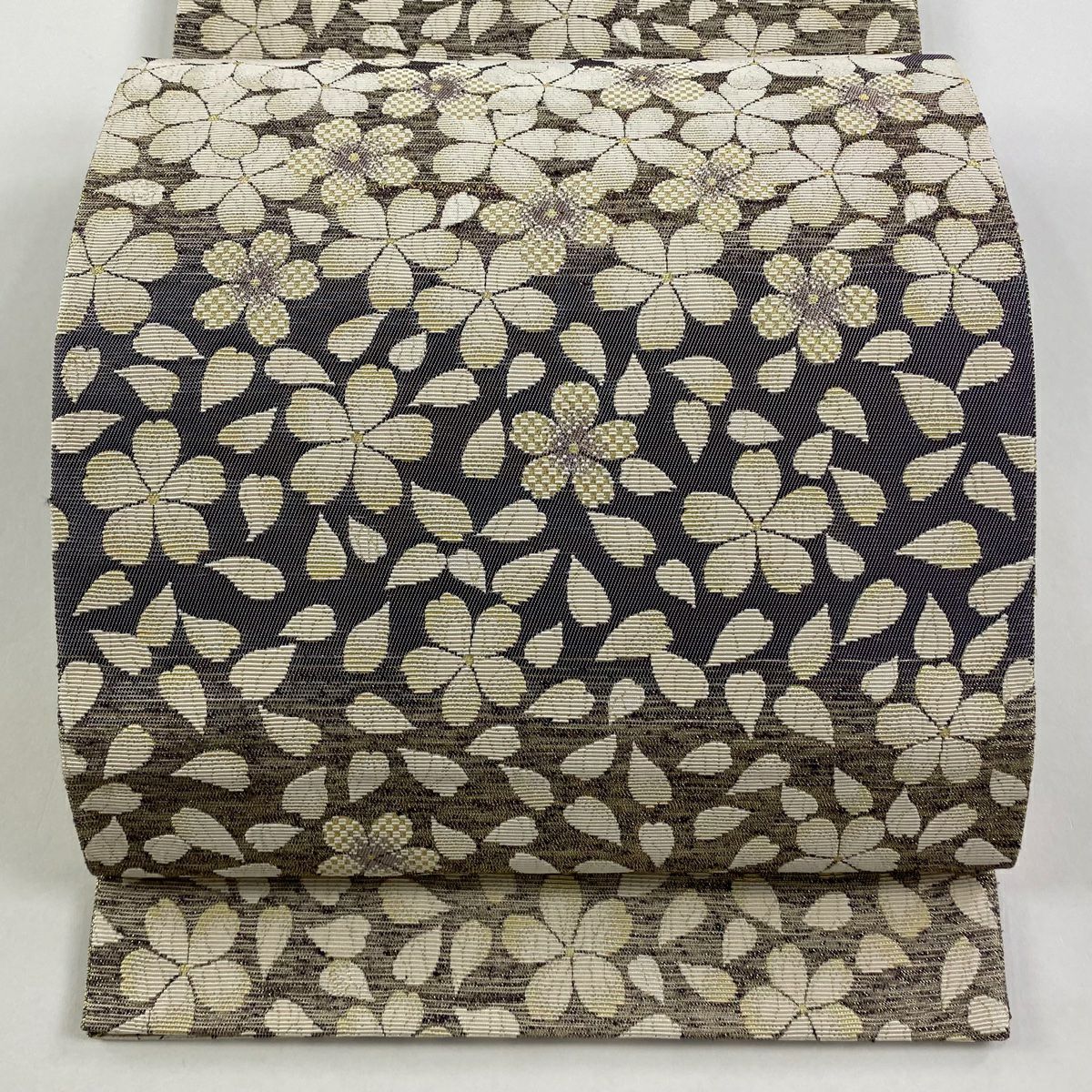 袋帯 逸品 華文 草花 クリーム 全通 正絹
