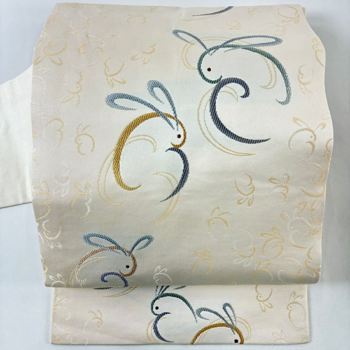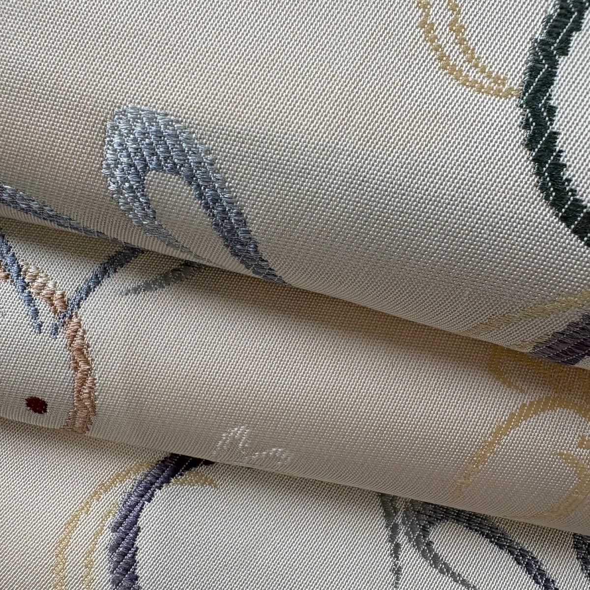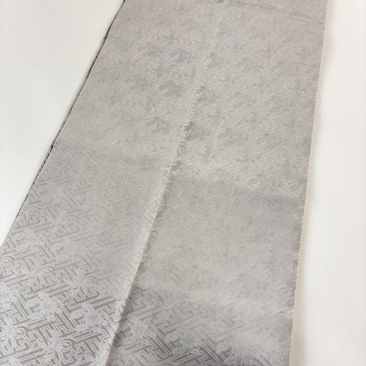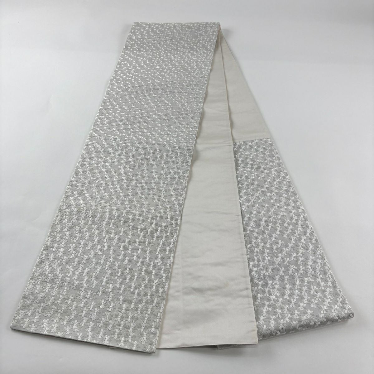 袋帯 逸品 華文 草花 クリーム 全通 正絹