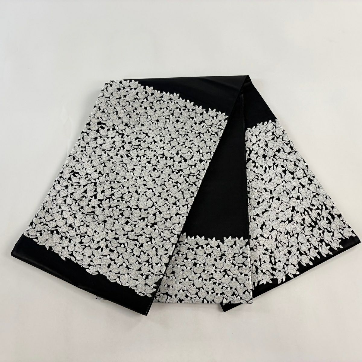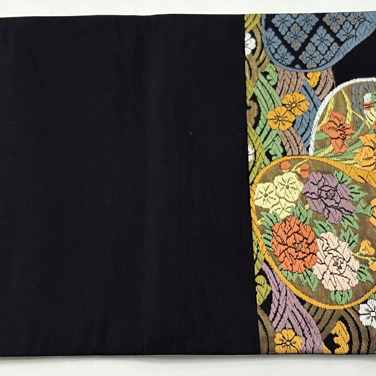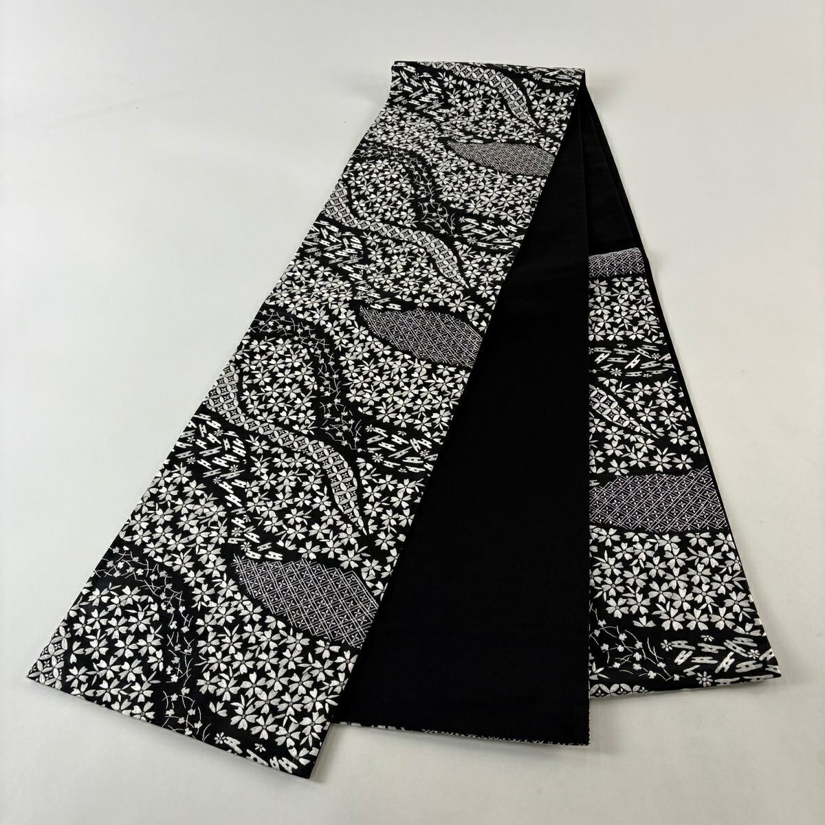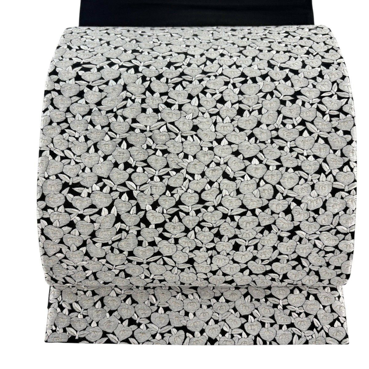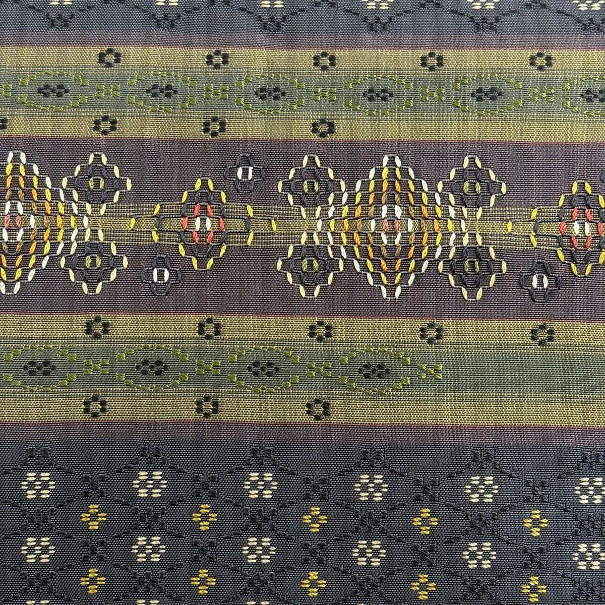 袋帯 逸品 桜 菱 刺繍 銀糸 黒 六通 正絹