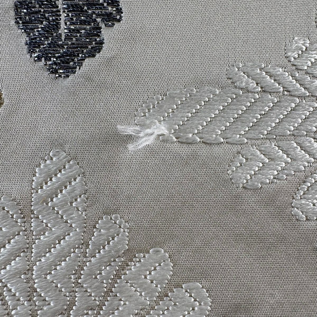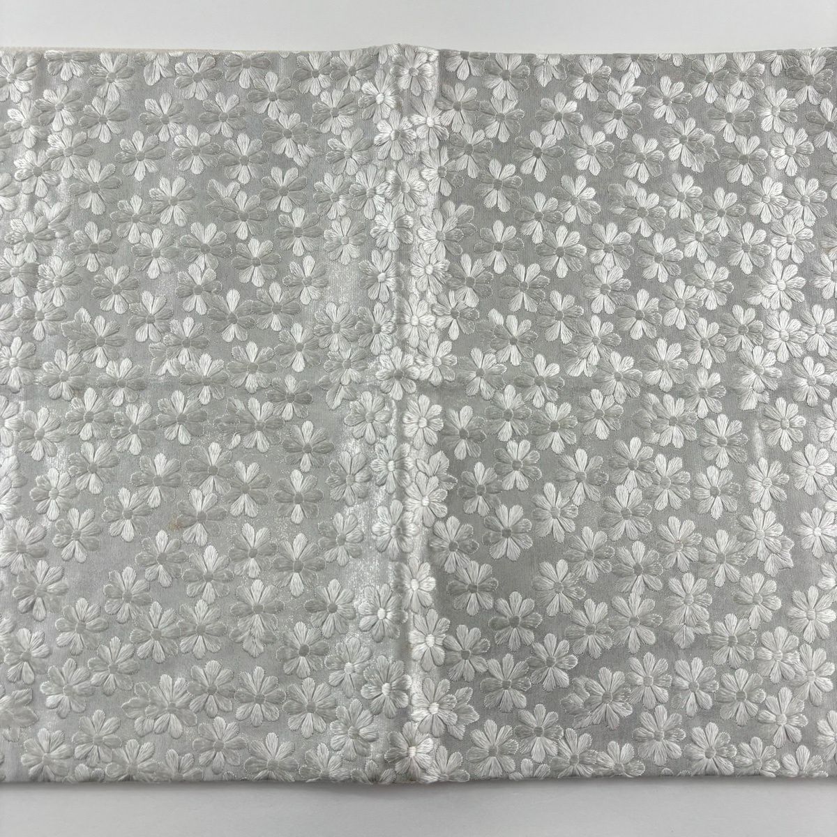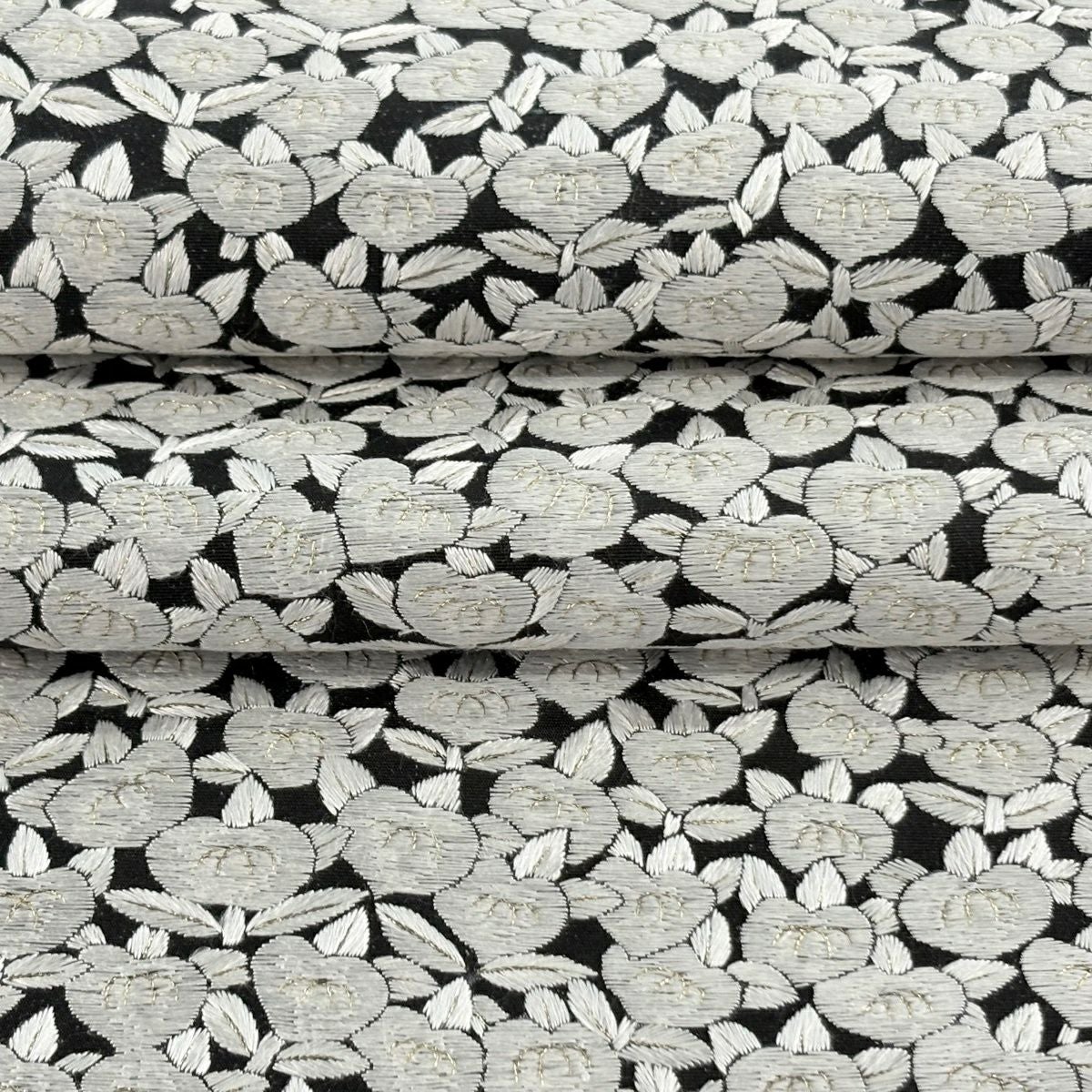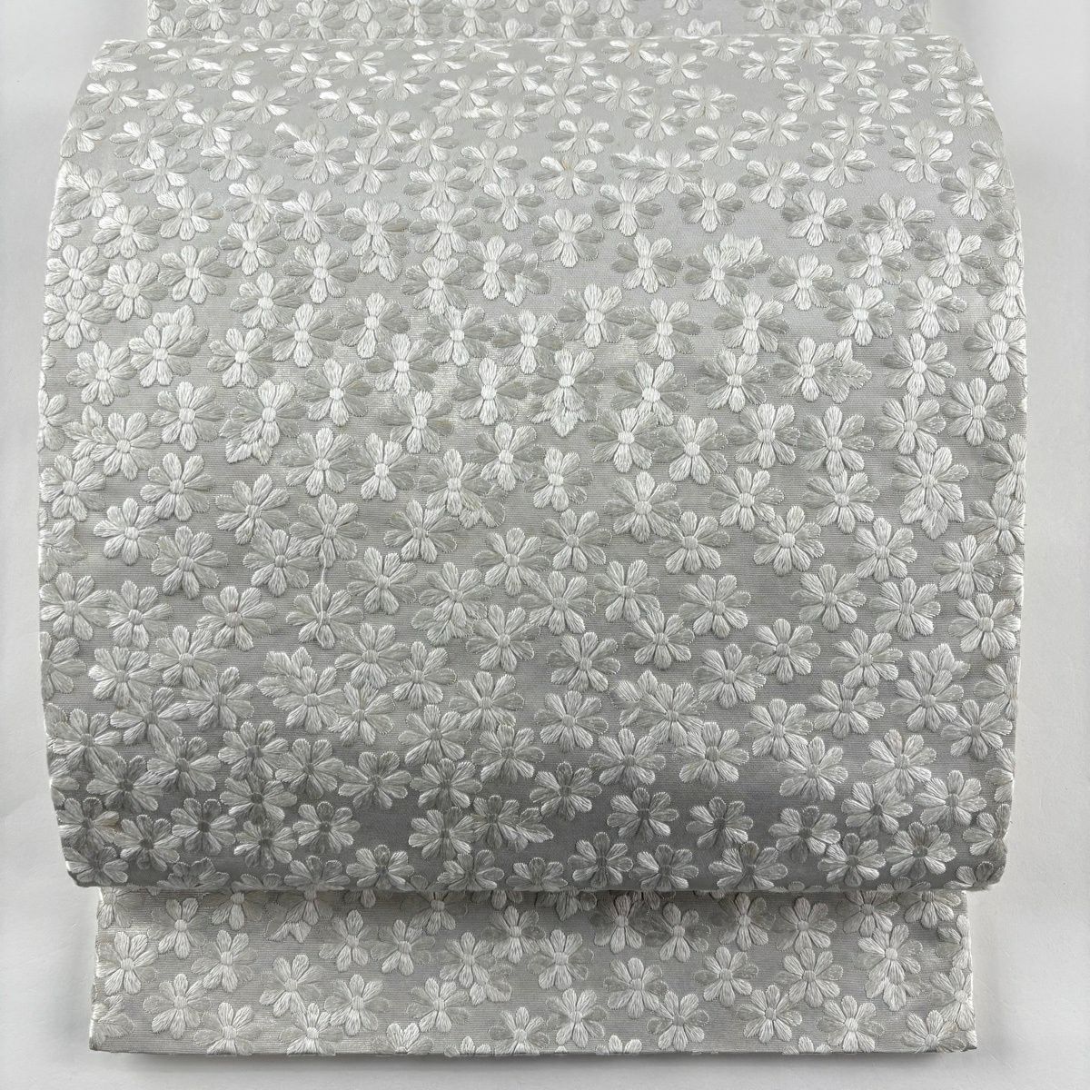 袋帯 逸品 桜 菱 刺繍 銀糸 黒 六通 正絹