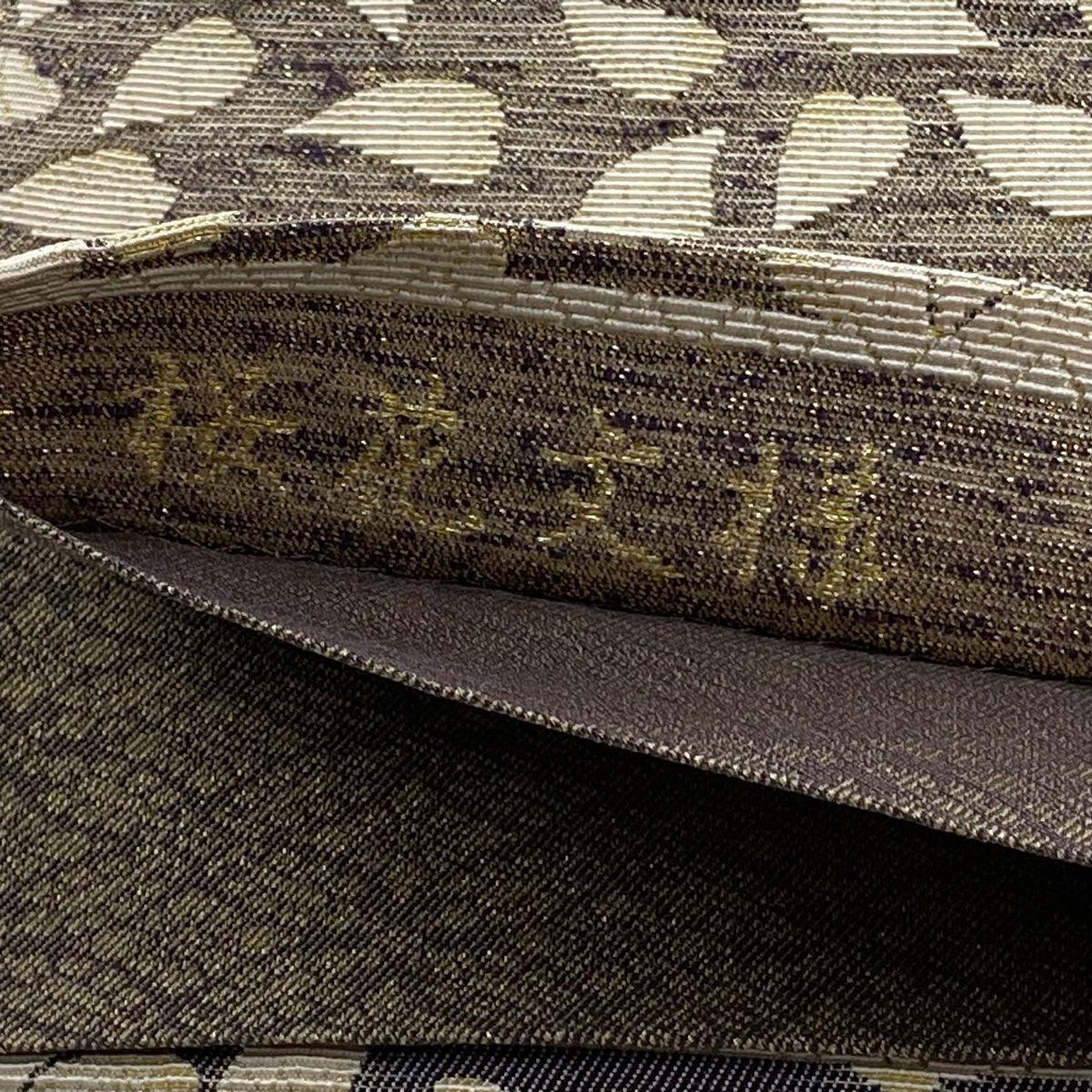 袋帯 逸品 菊花菱 金糸 箔 灰茶 六通 正絹