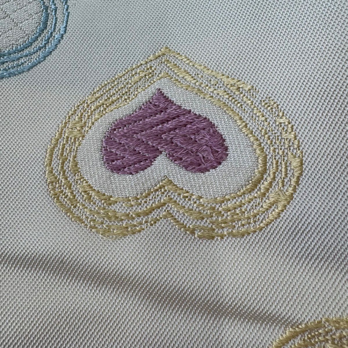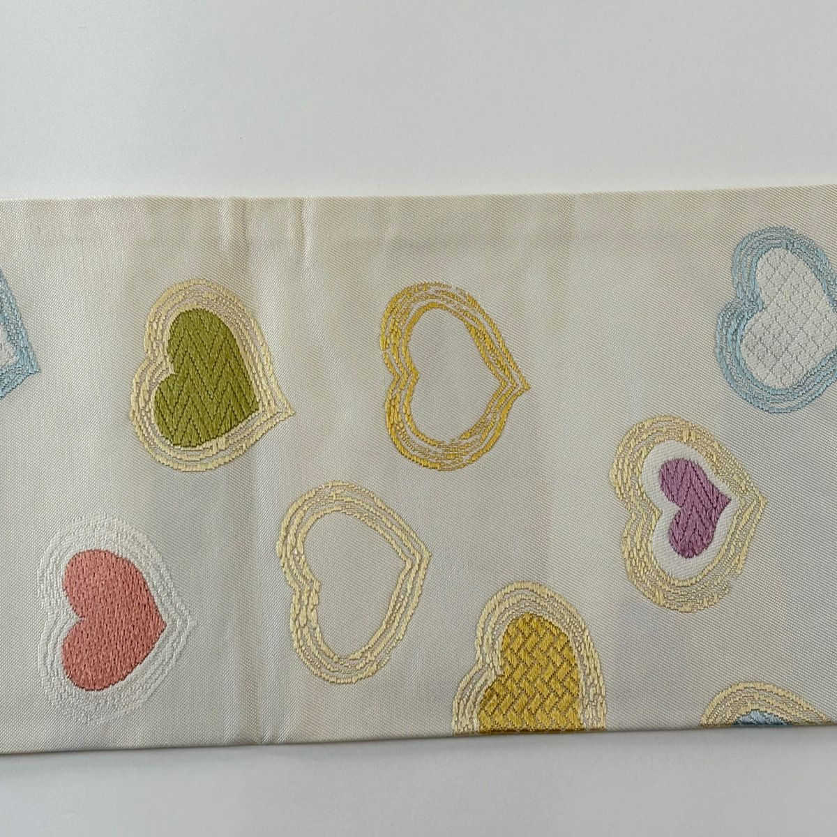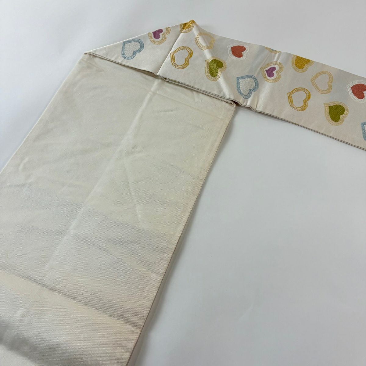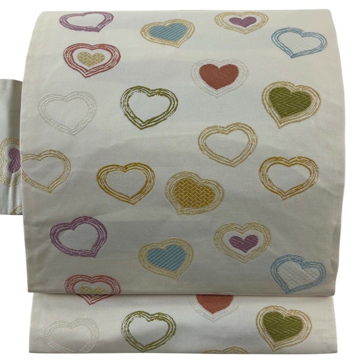 名古屋帯 逸品 ハート 刺繍 クリーム 正絹