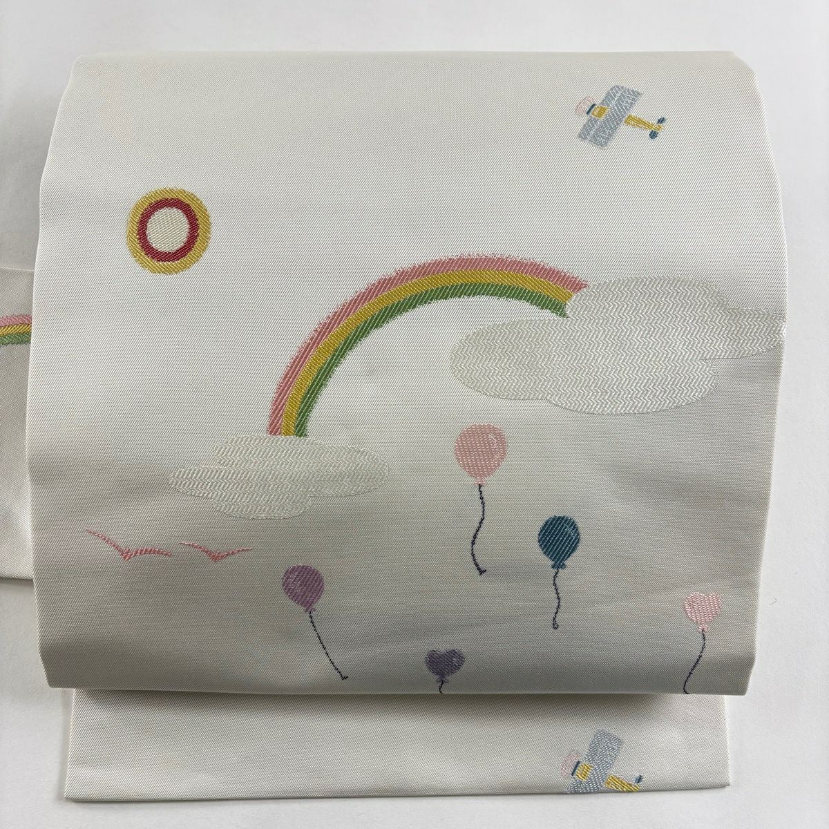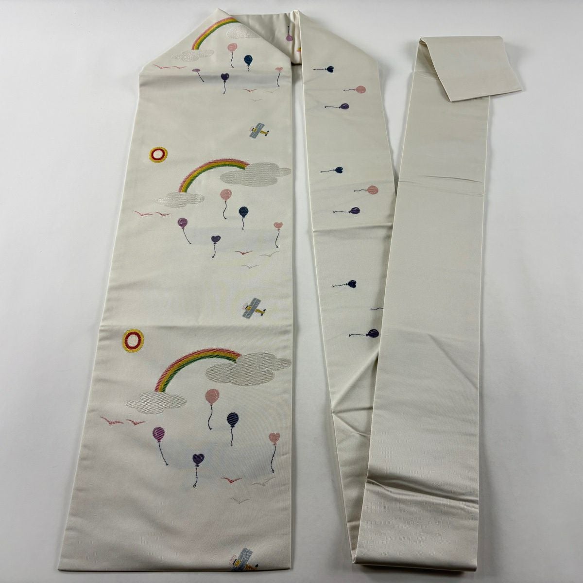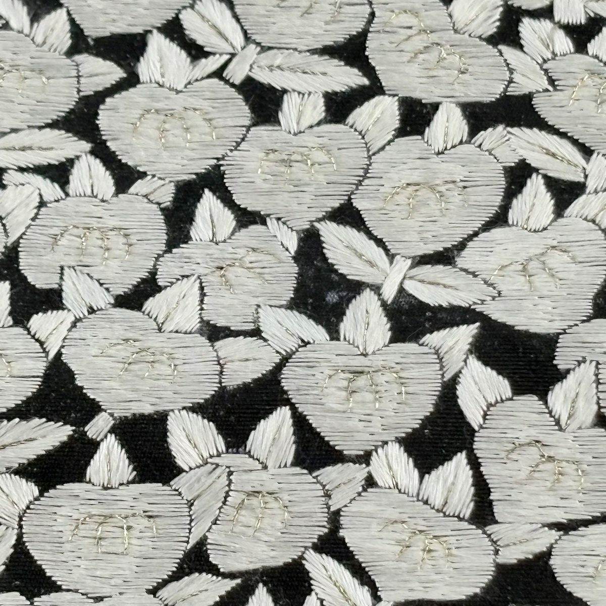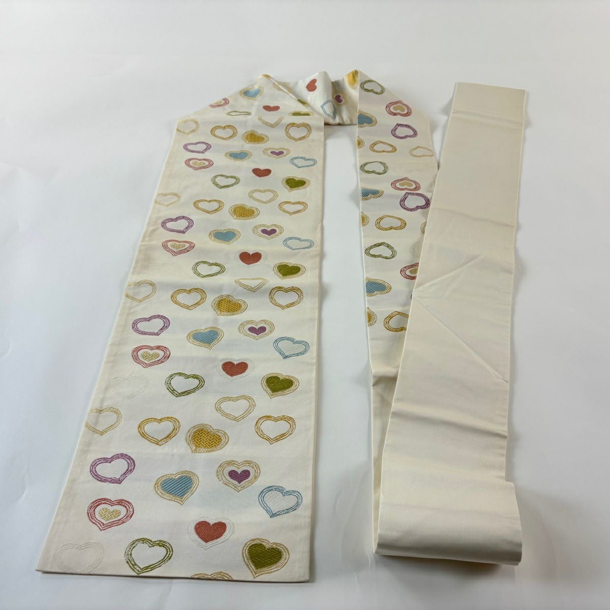 名古屋帯 逸品 ハート 刺繍 クリーム 正絹