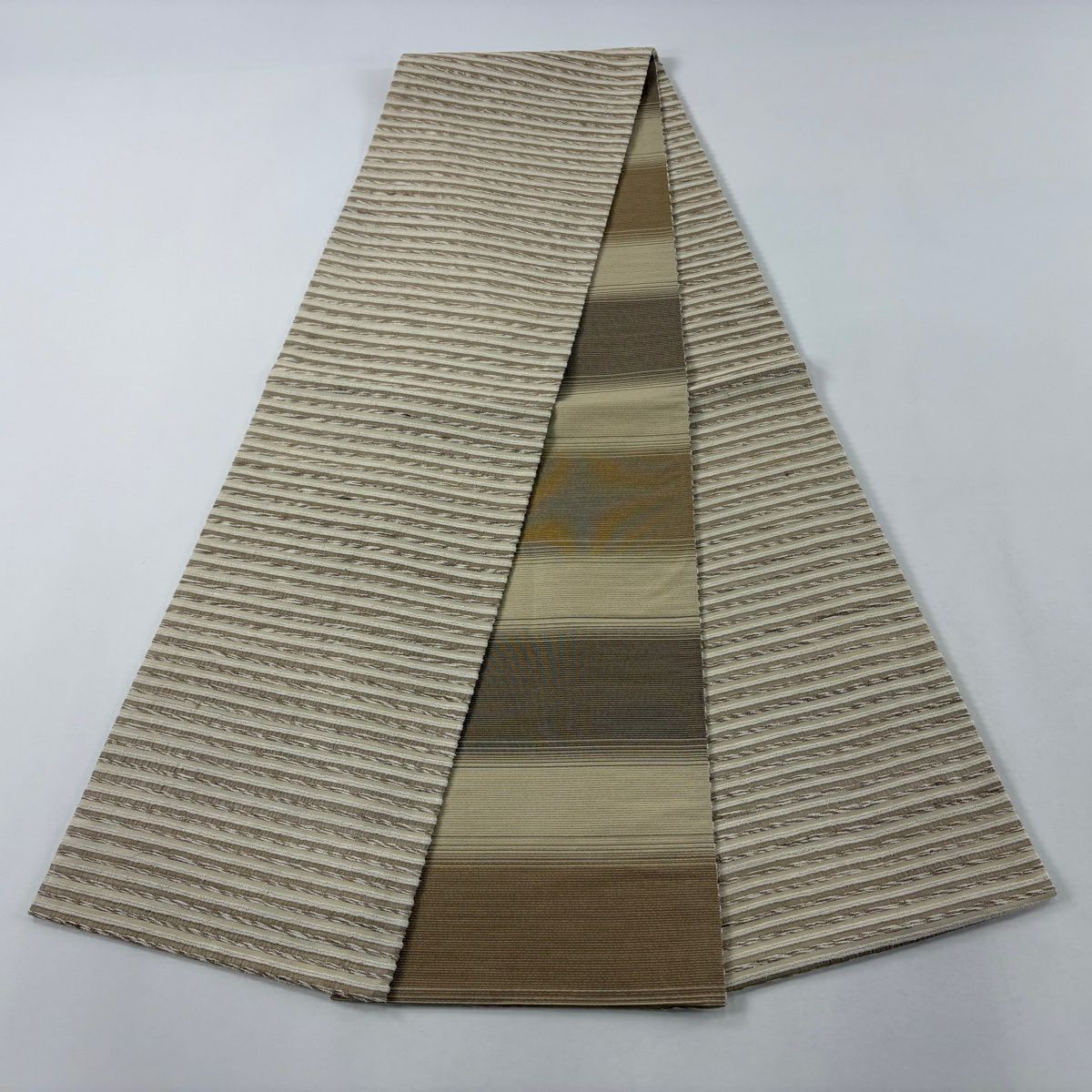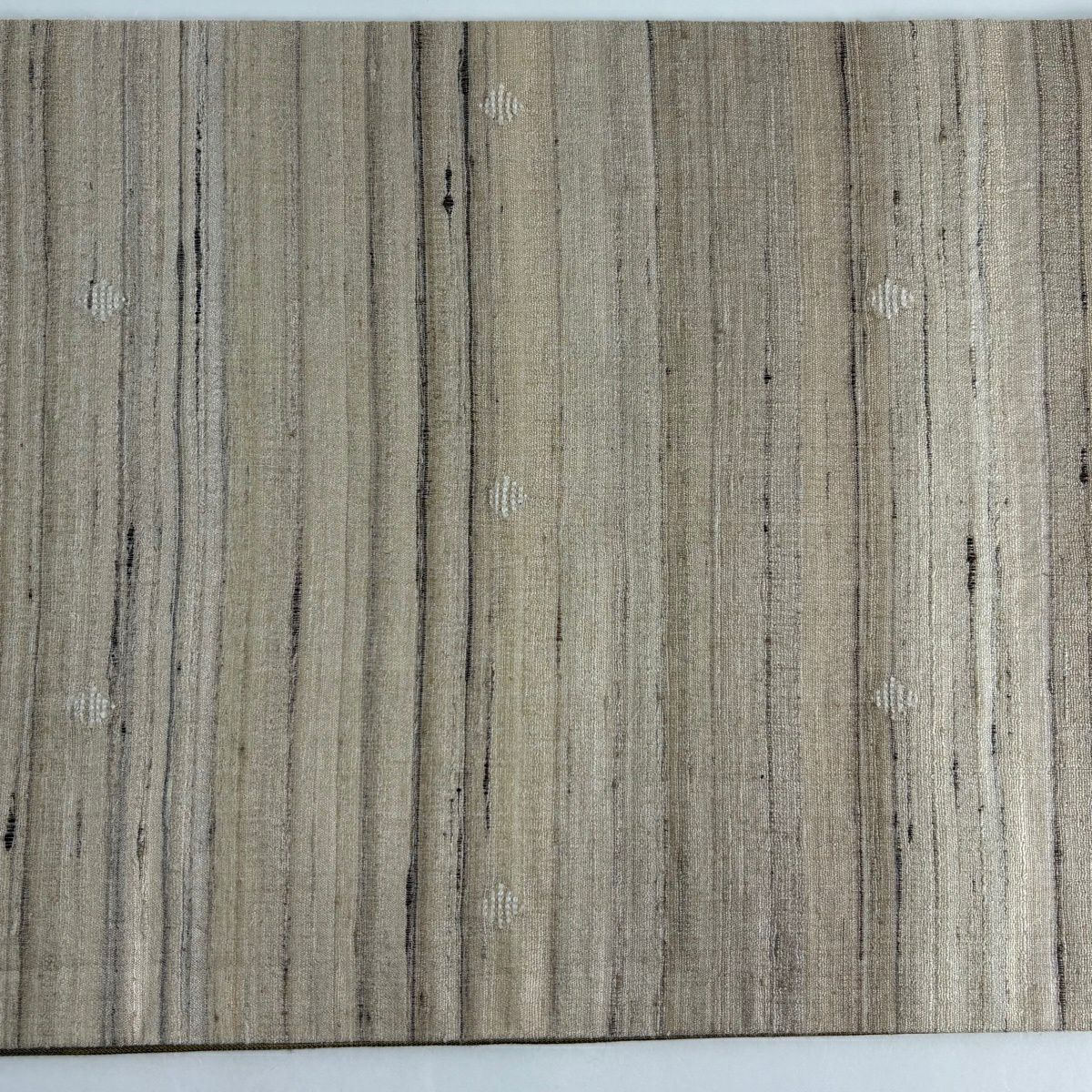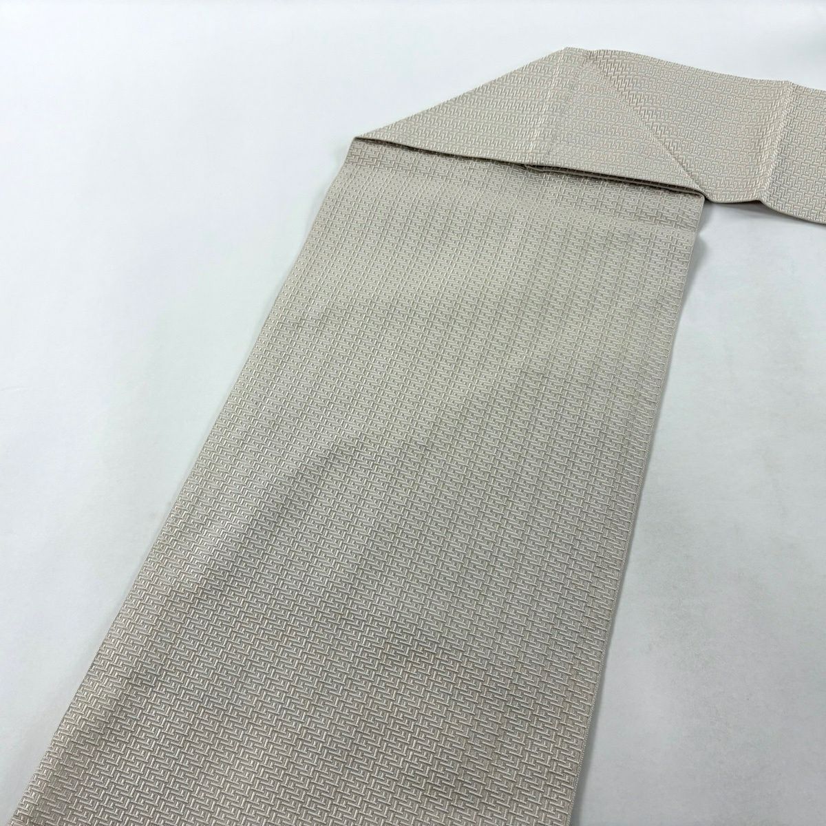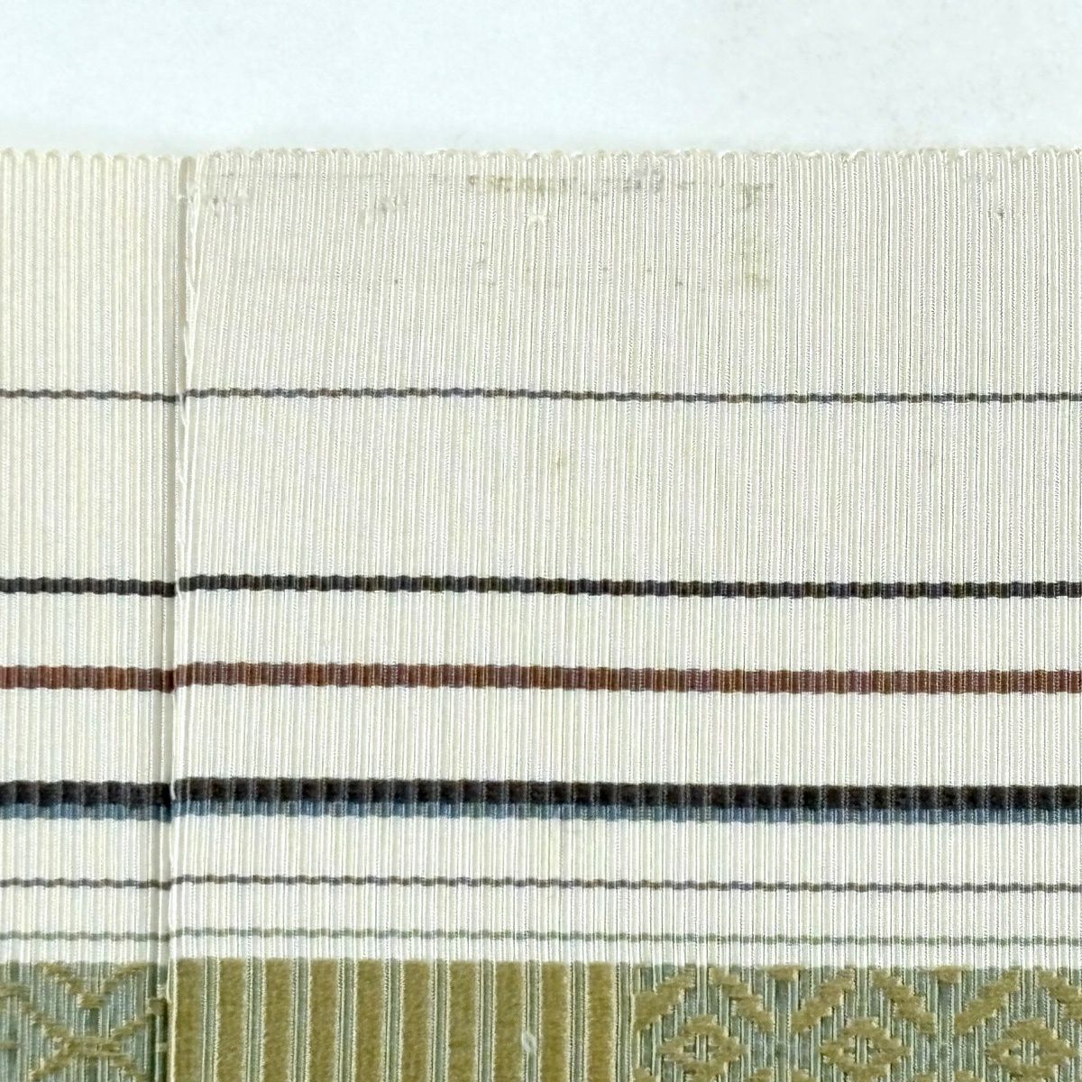 袋帯 逸品 縞 幾何学模様 薄茶色 全通 正絹